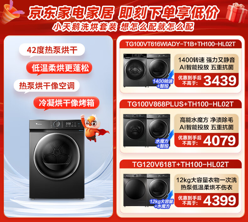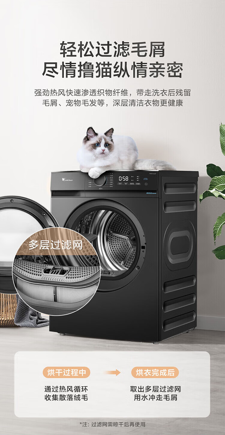小天鹅(LittleSwan)10KG热泵烘干机家用大容量干衣机 AI正反转超薄节能省电祛味除潮家电以旧换新TH100-HL02T