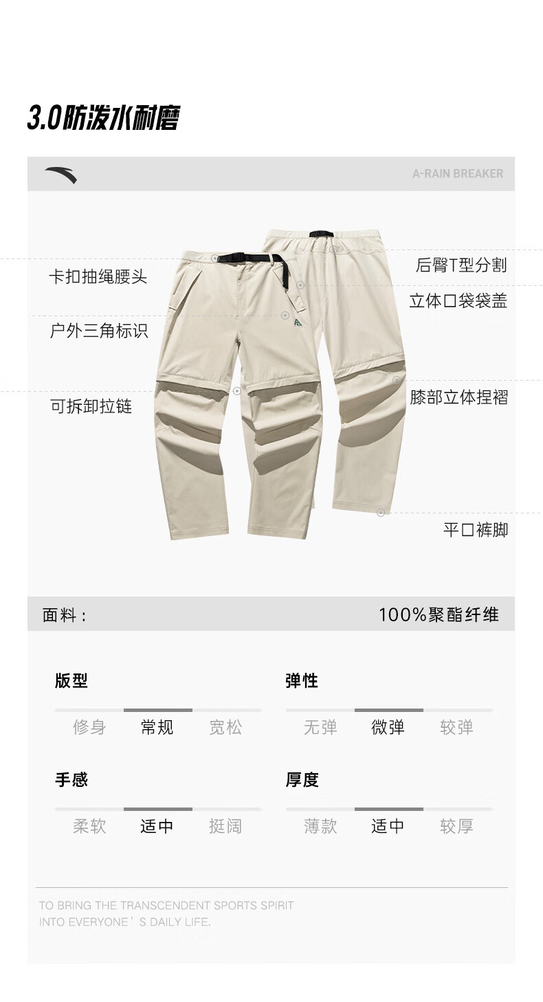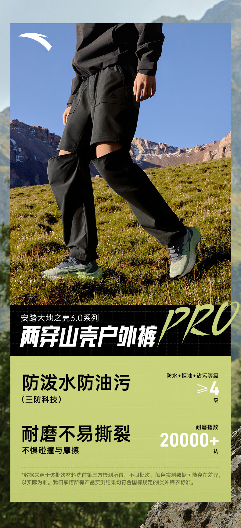 安踏【樊振东同款】加绒山壳裤丨大地之壳3.0防泼水运动长裤男工装裤