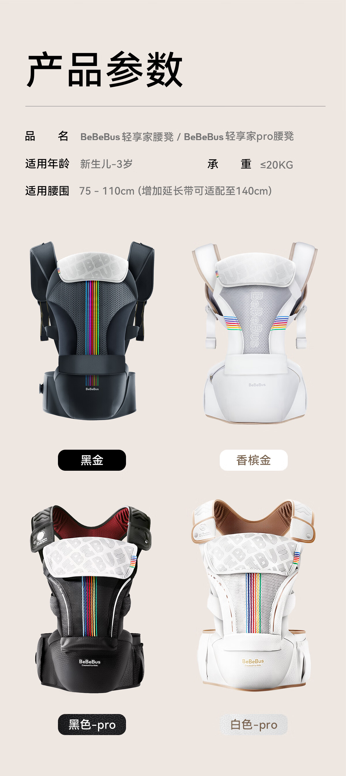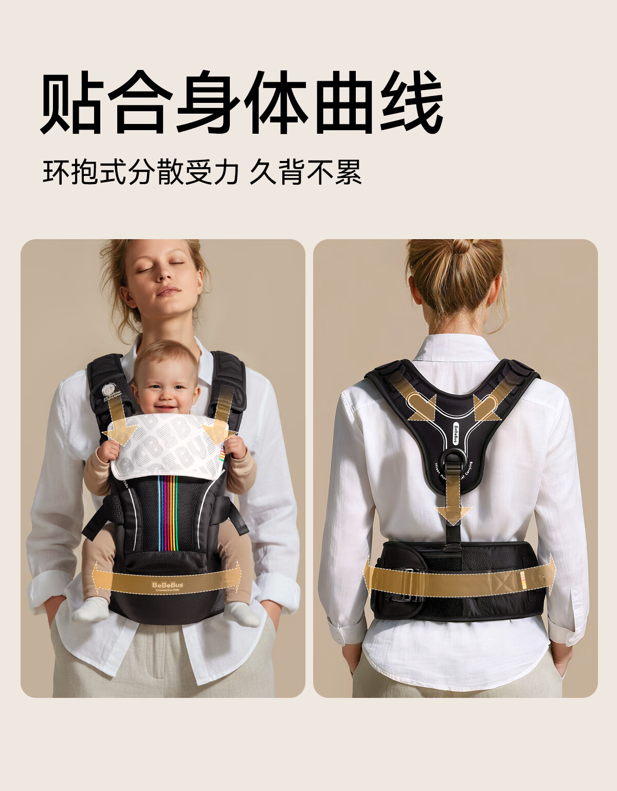 bebebus【全新升级】婴幼儿背带腰凳婴儿0到36个月护腰抱娃神器背带0-3岁
