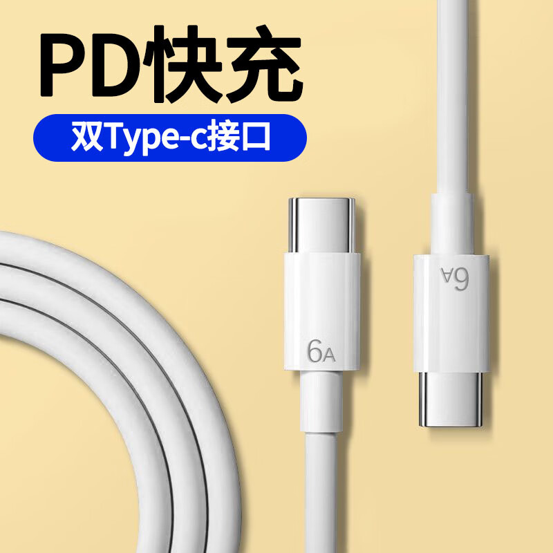 品奈优PD60W快充数据线双Type-c头手机车载充电线双向ctoc适用华为荣耀笔记本电脑双C口 1米(两边都是type-c)白色