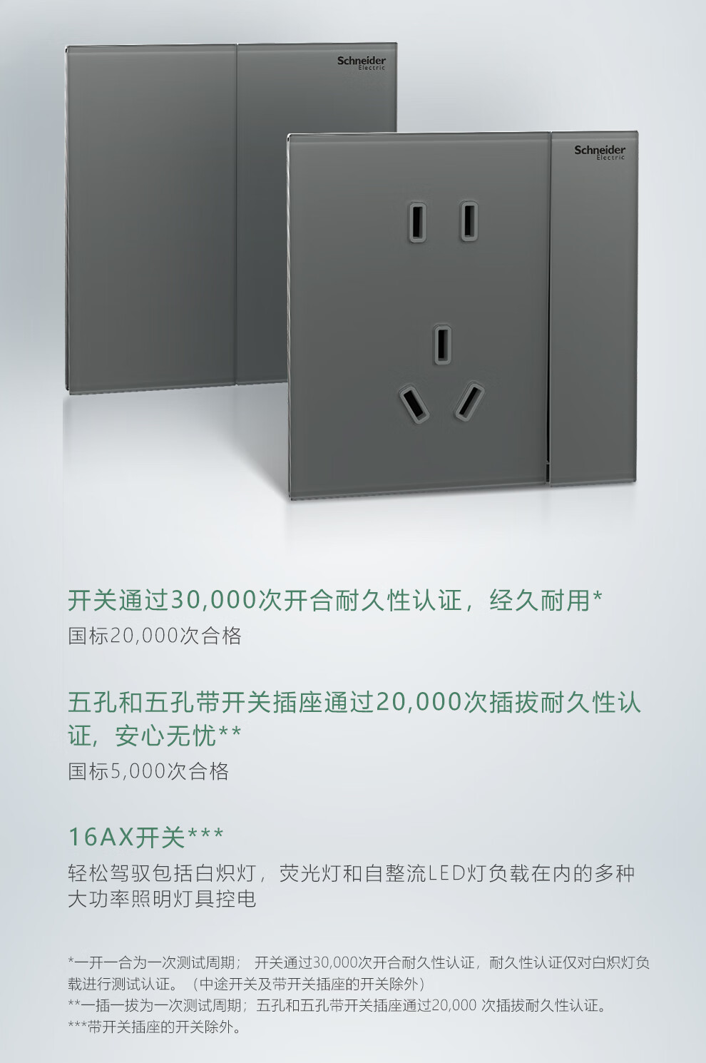 施耐德开关插座面板 家用86型 二三五孔墙壁电源插座 致铂系列璃雾白色 五孔插座