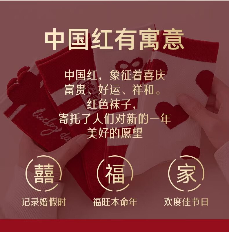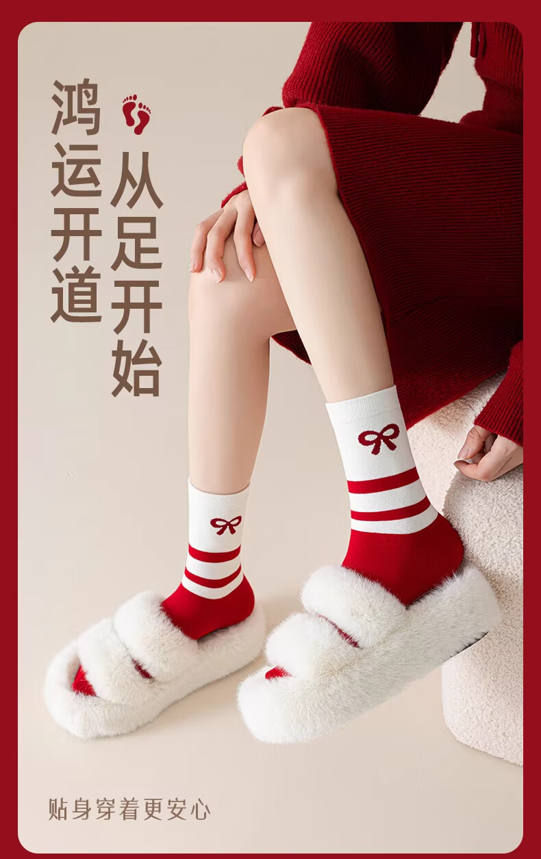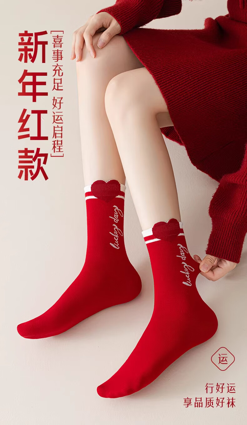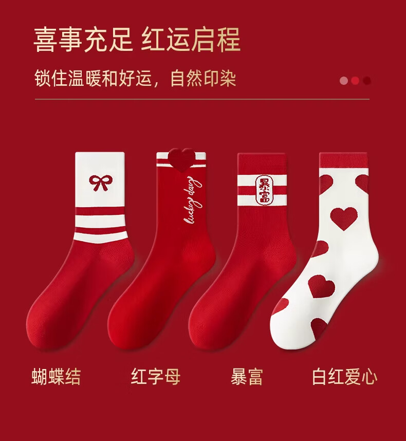 本曲本命年红色袜子女款秋冬季纯棉中筒2026新款爆款马年鸿运爱心长袜 混色4双装 均码
