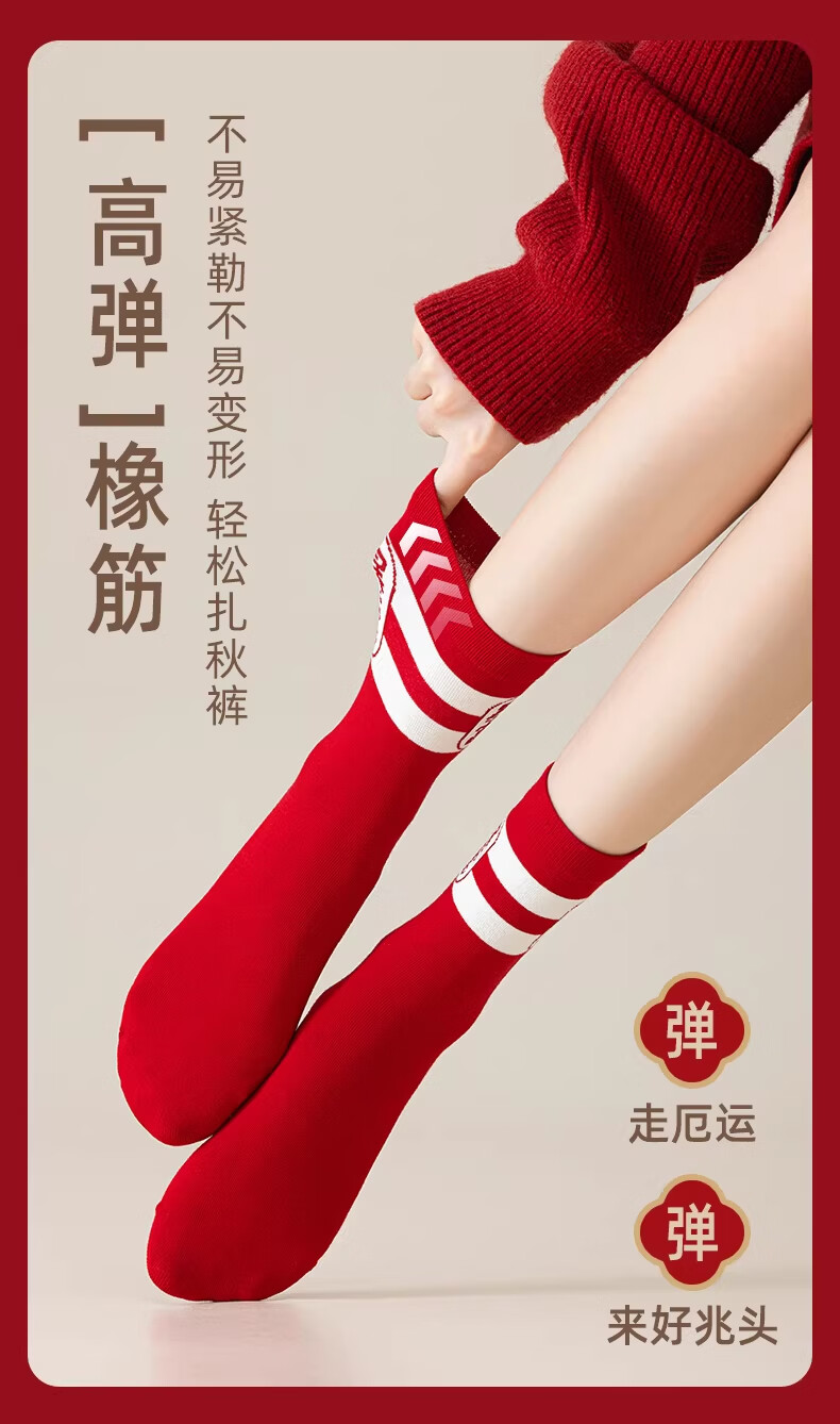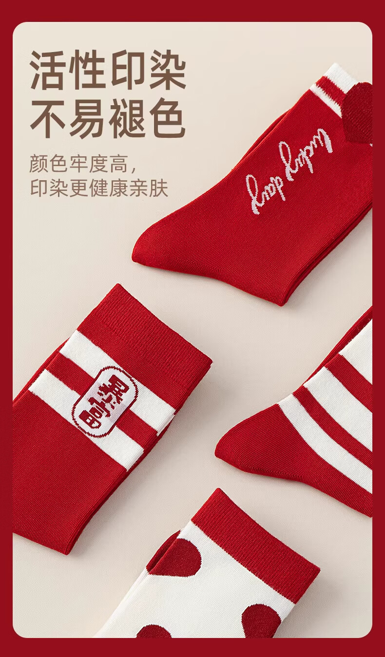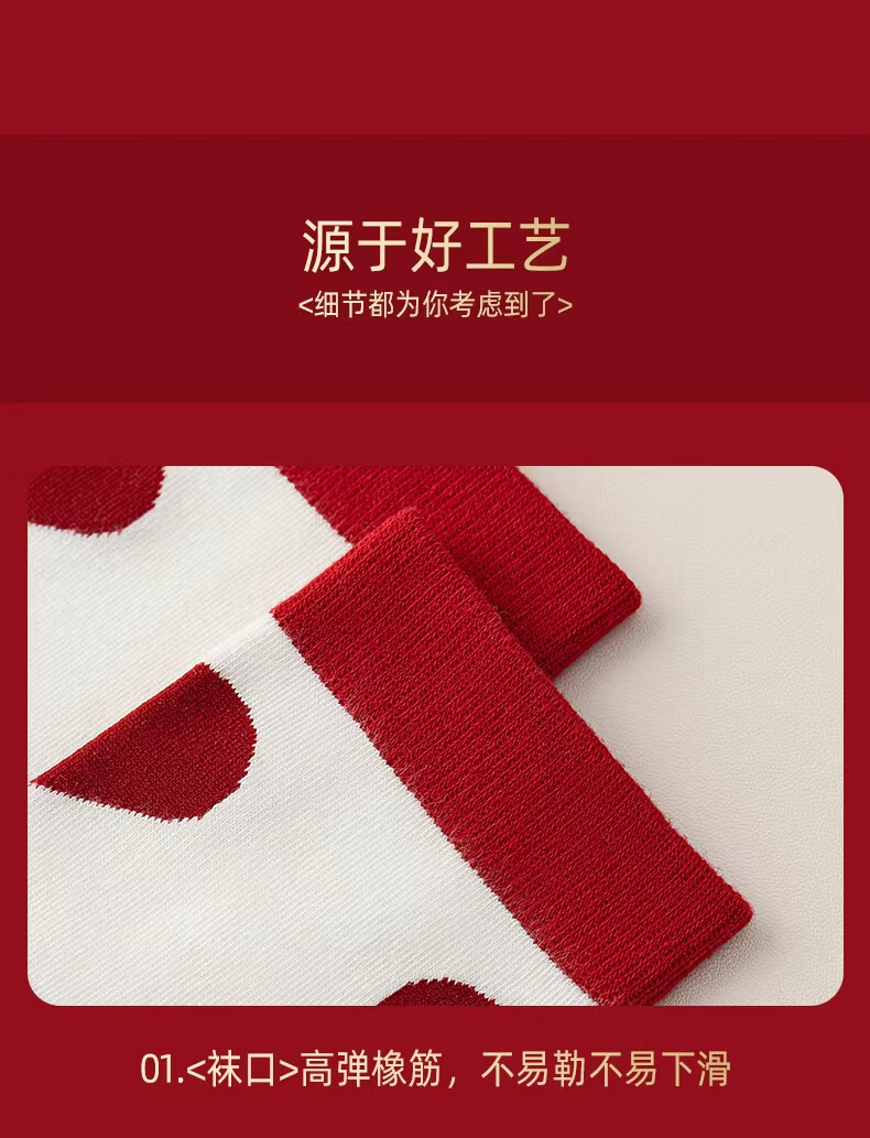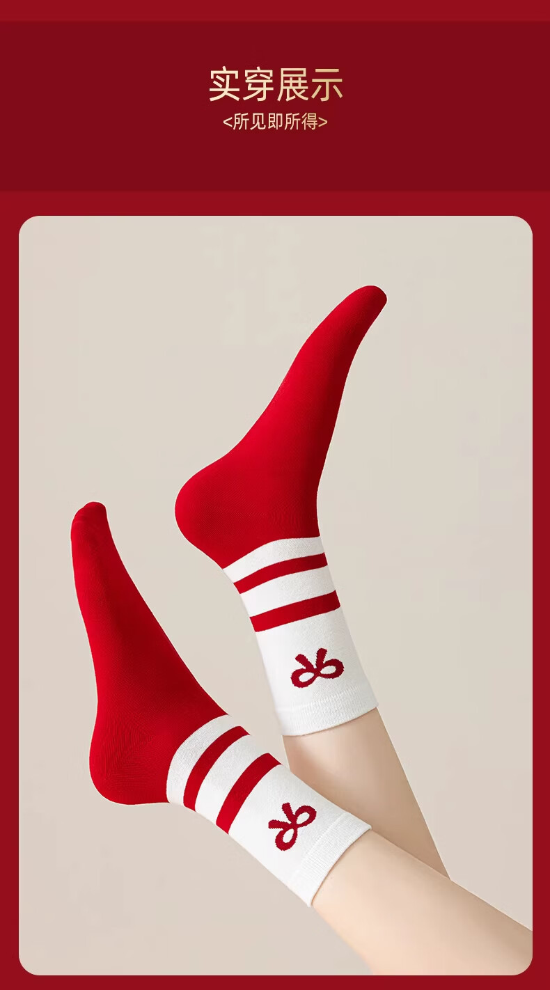 本曲本命年红色袜子女款秋冬季纯棉中筒2026新款爆款马年鸿运爱心长袜 混色4双装 均码