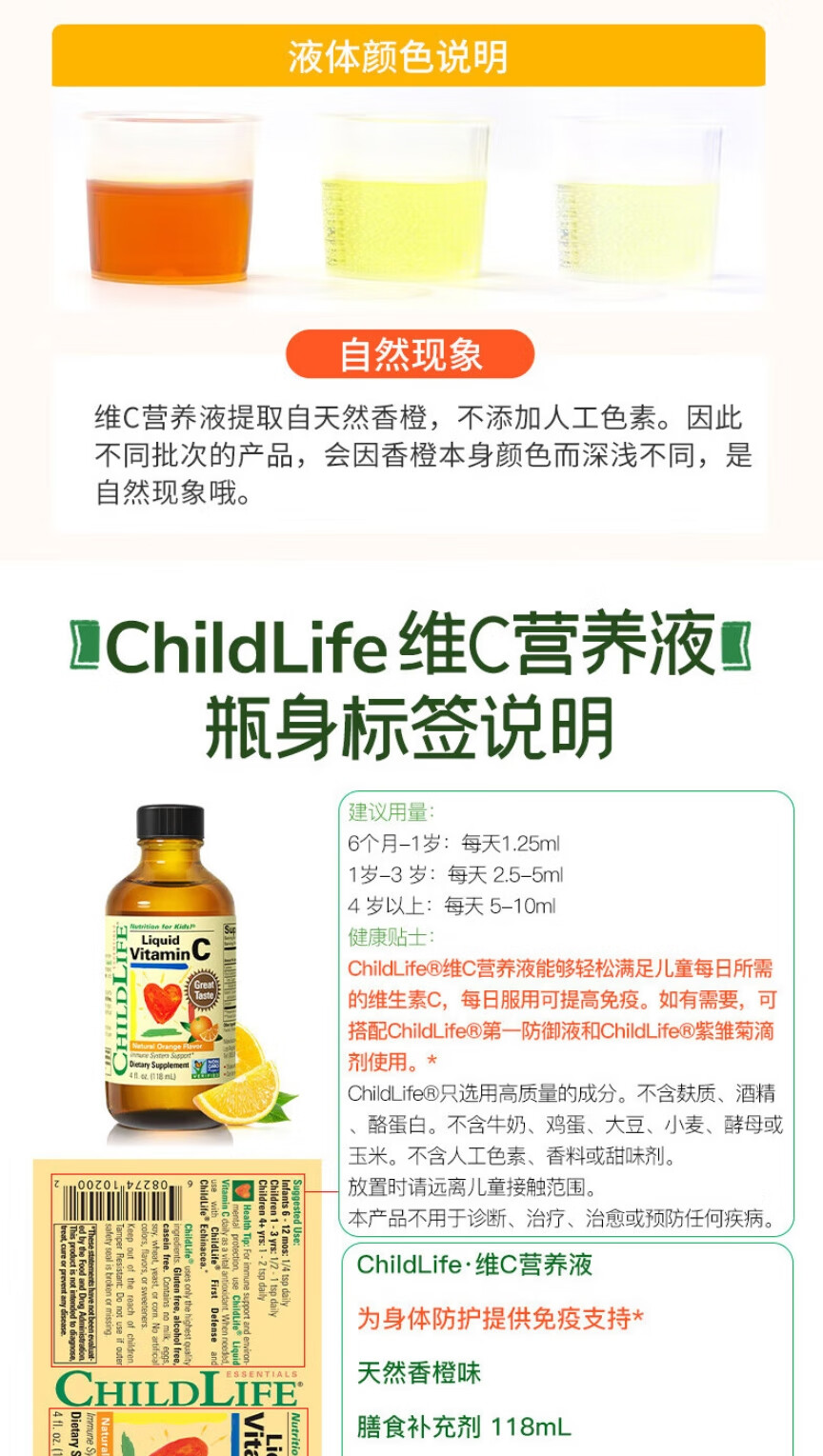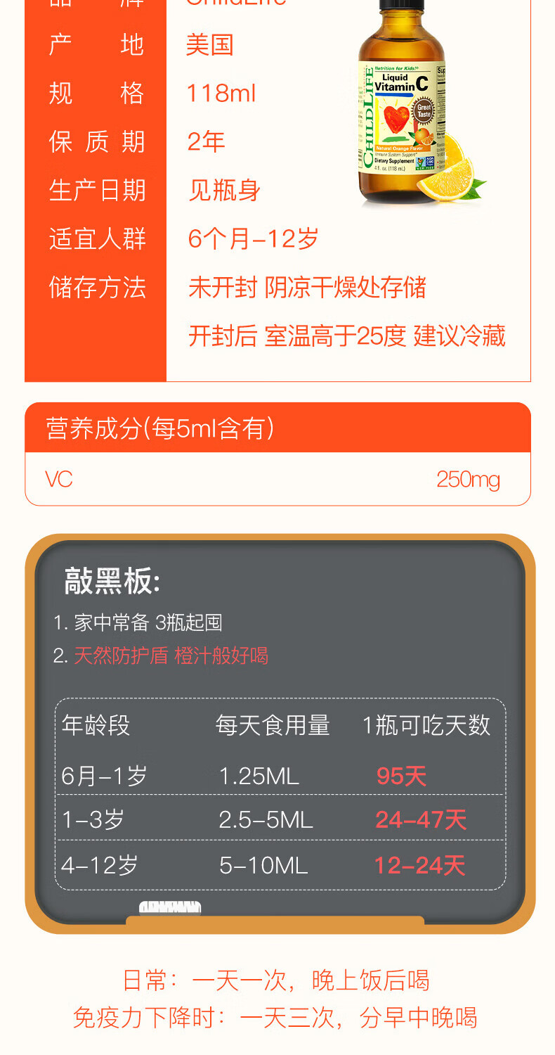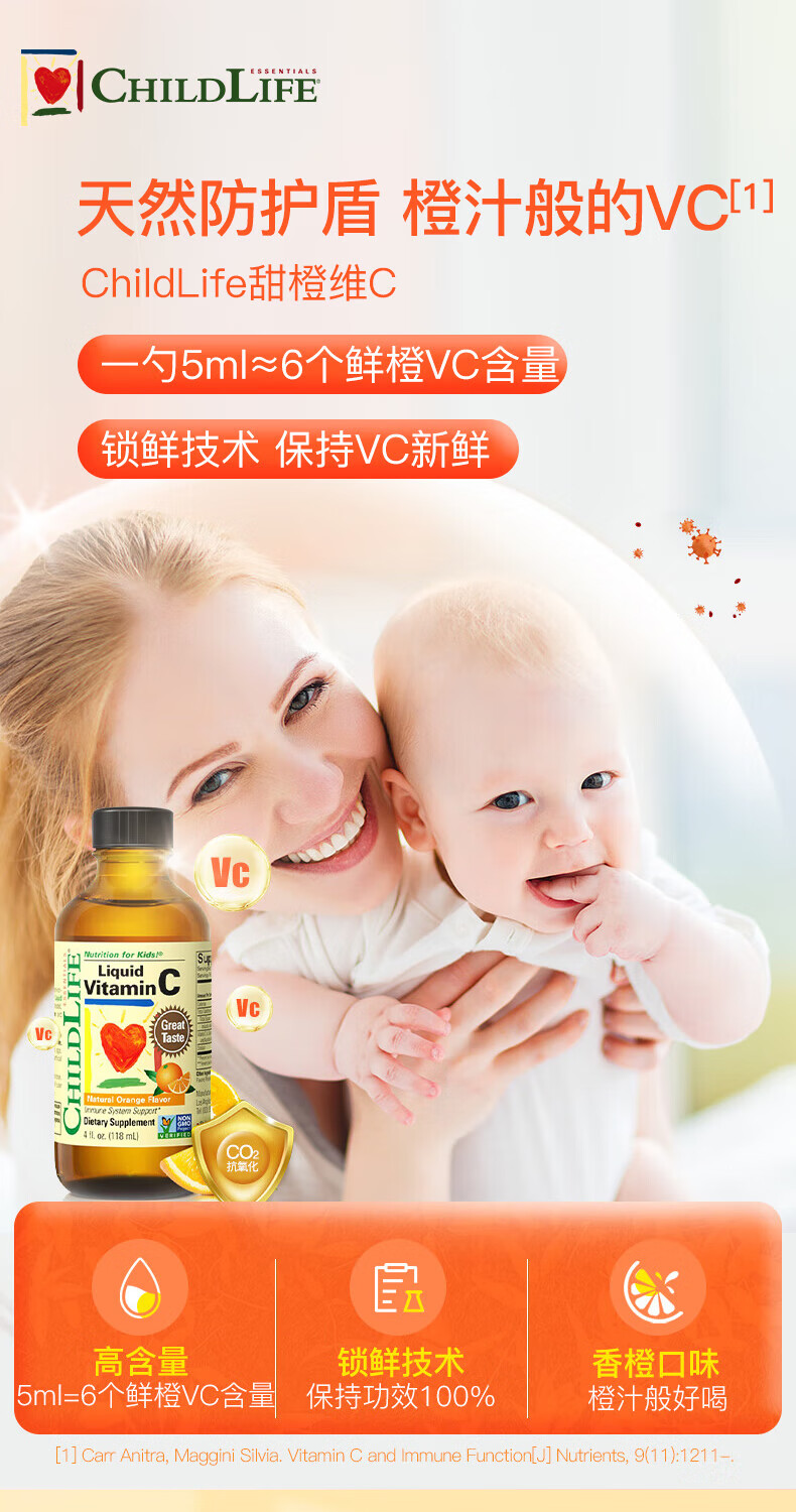 童年时光 甜橙vc 儿童维生素c 宝宝维c液体 6个月以上 118ml/瓶