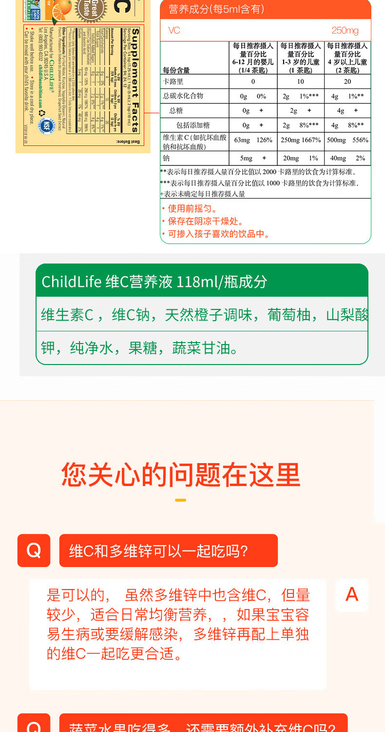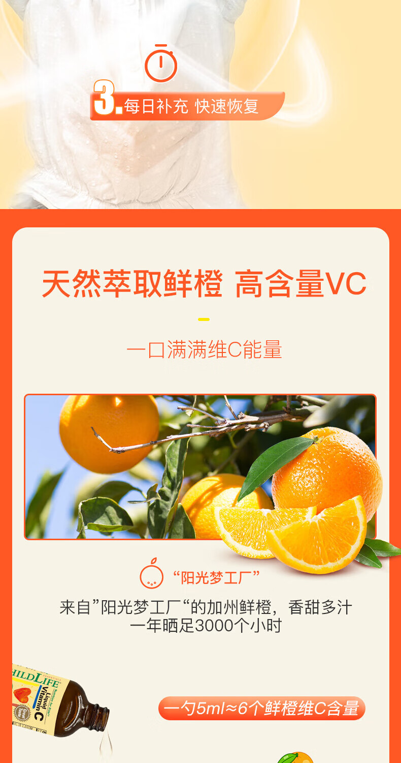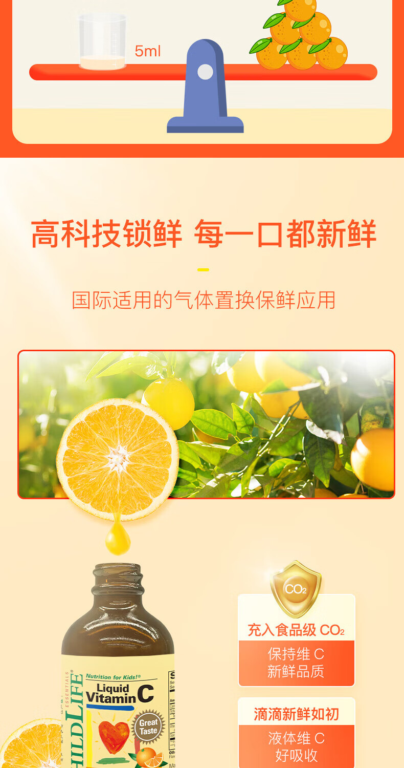 童年时光 甜橙vc 儿童维生素c 宝宝维c液体 6个月以上 118ml/瓶