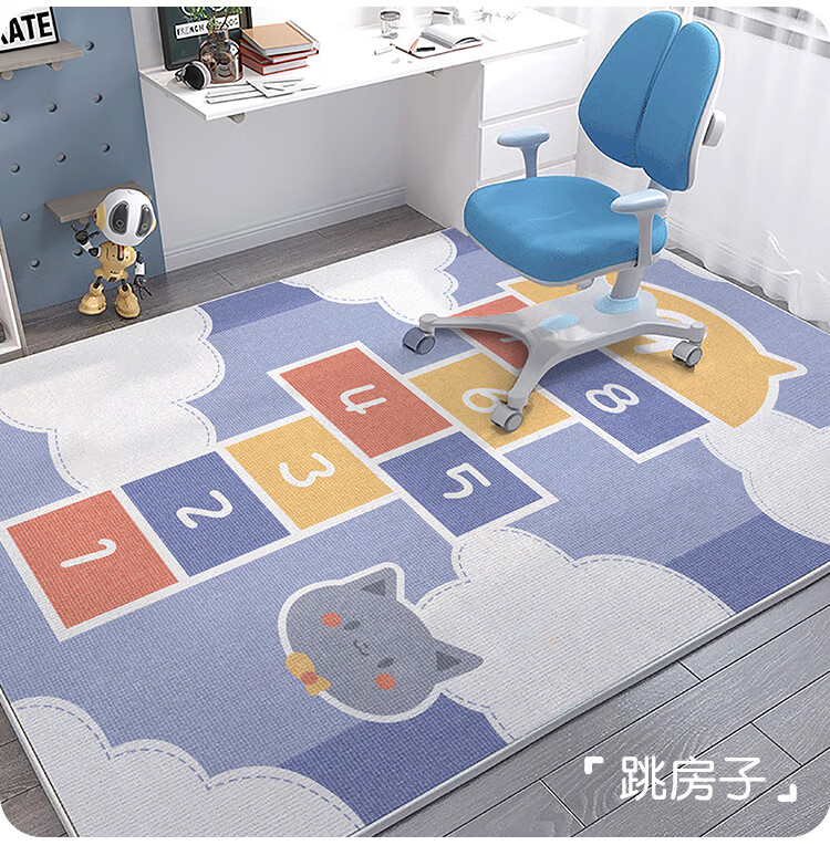 布迪思 儿童地毯阅读区电脑椅子防滑坐毯书房书桌学习桌客厅沙发卧室房 跳房子 140*200CM