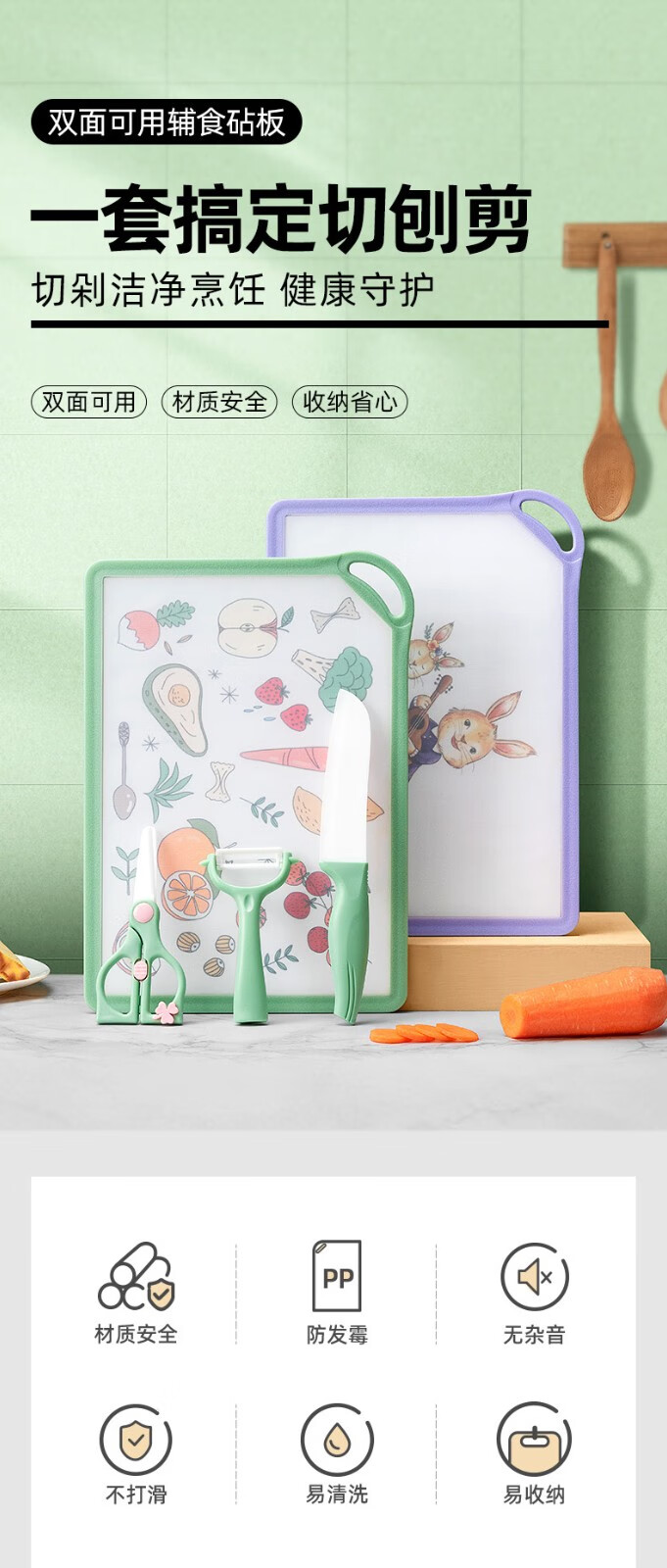 安扣切水果砧板案板家用厨房粘占板切菜板防霉双面婴儿辅食菜板 抹茶绿