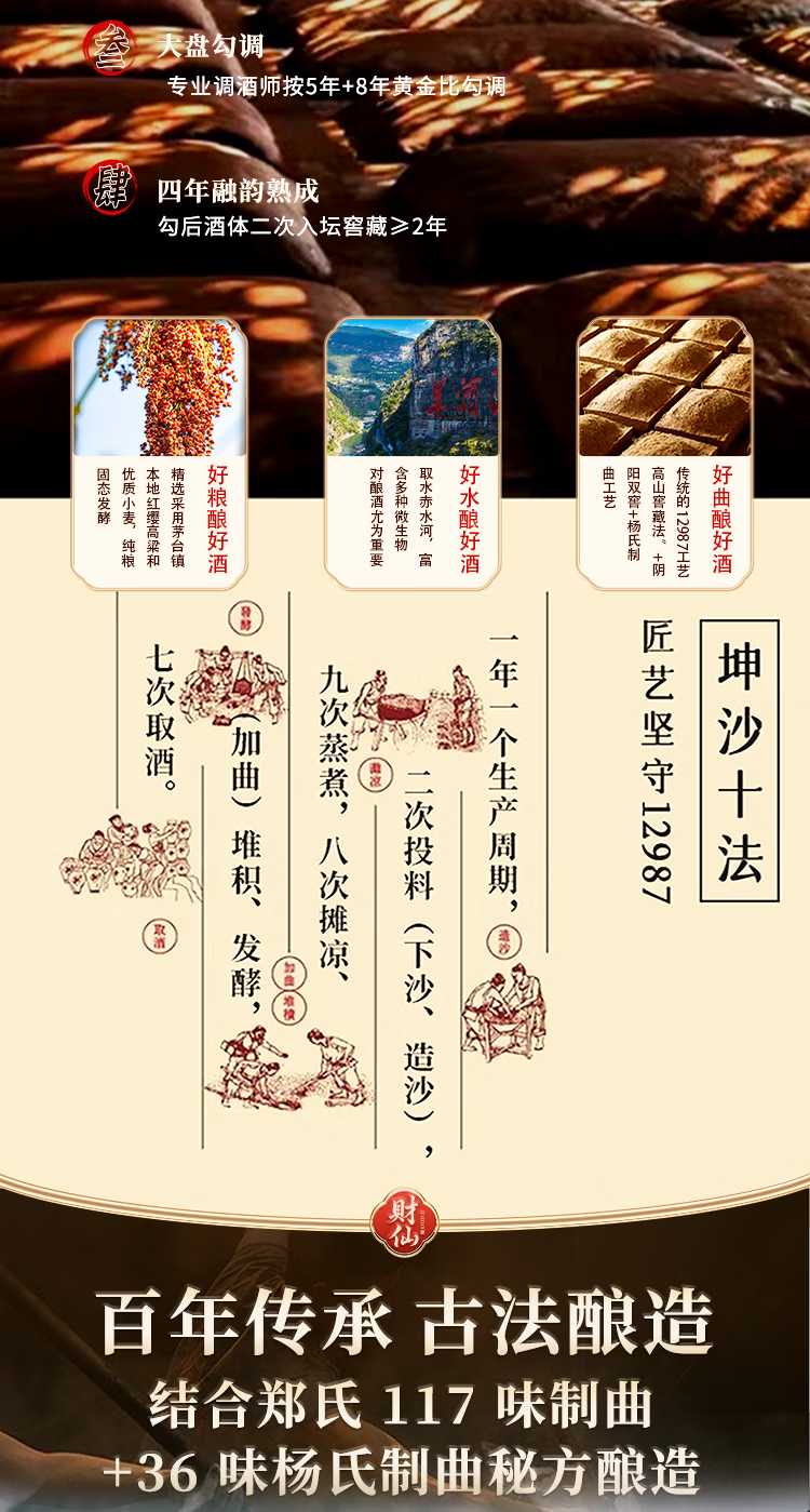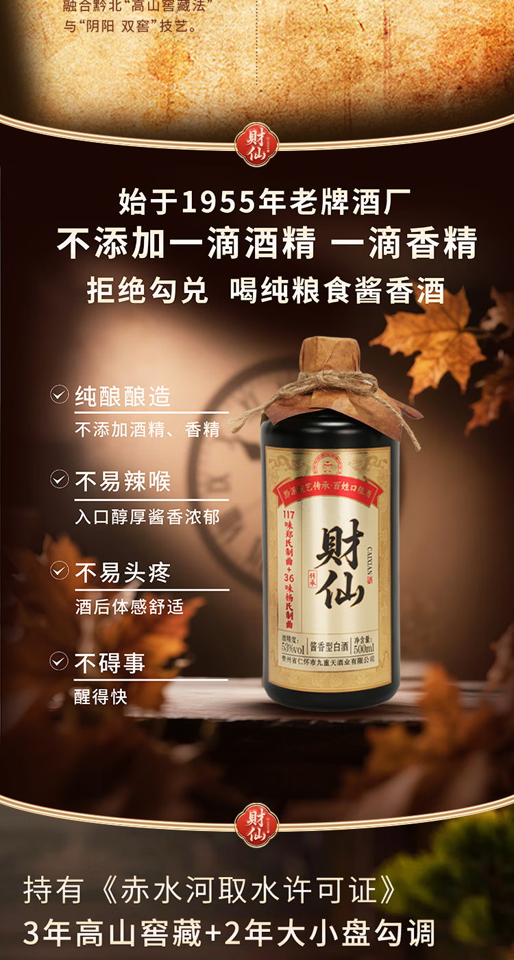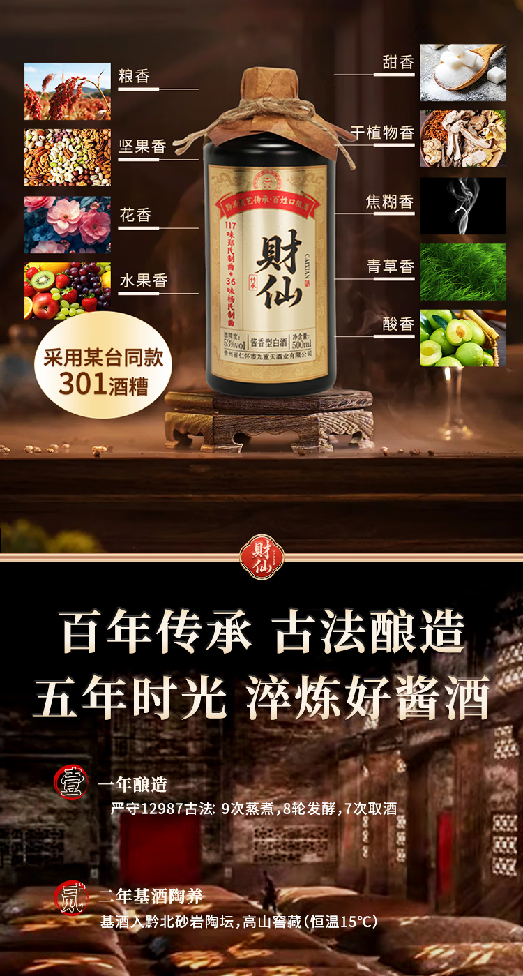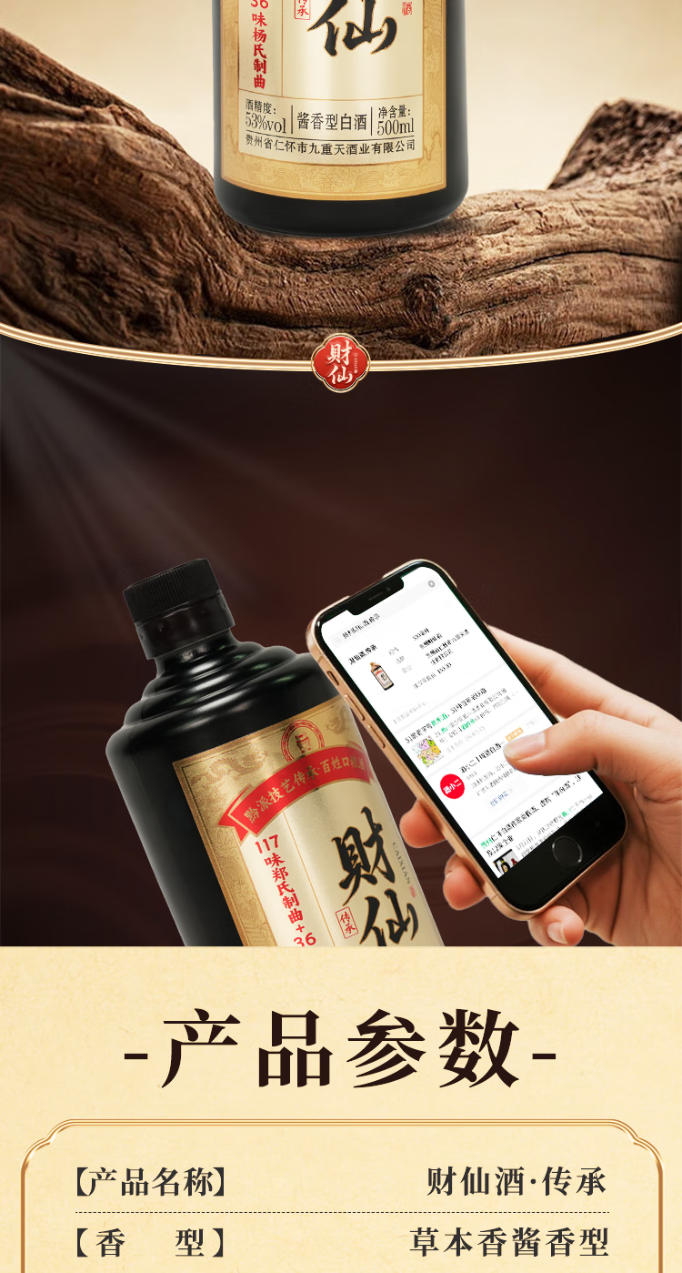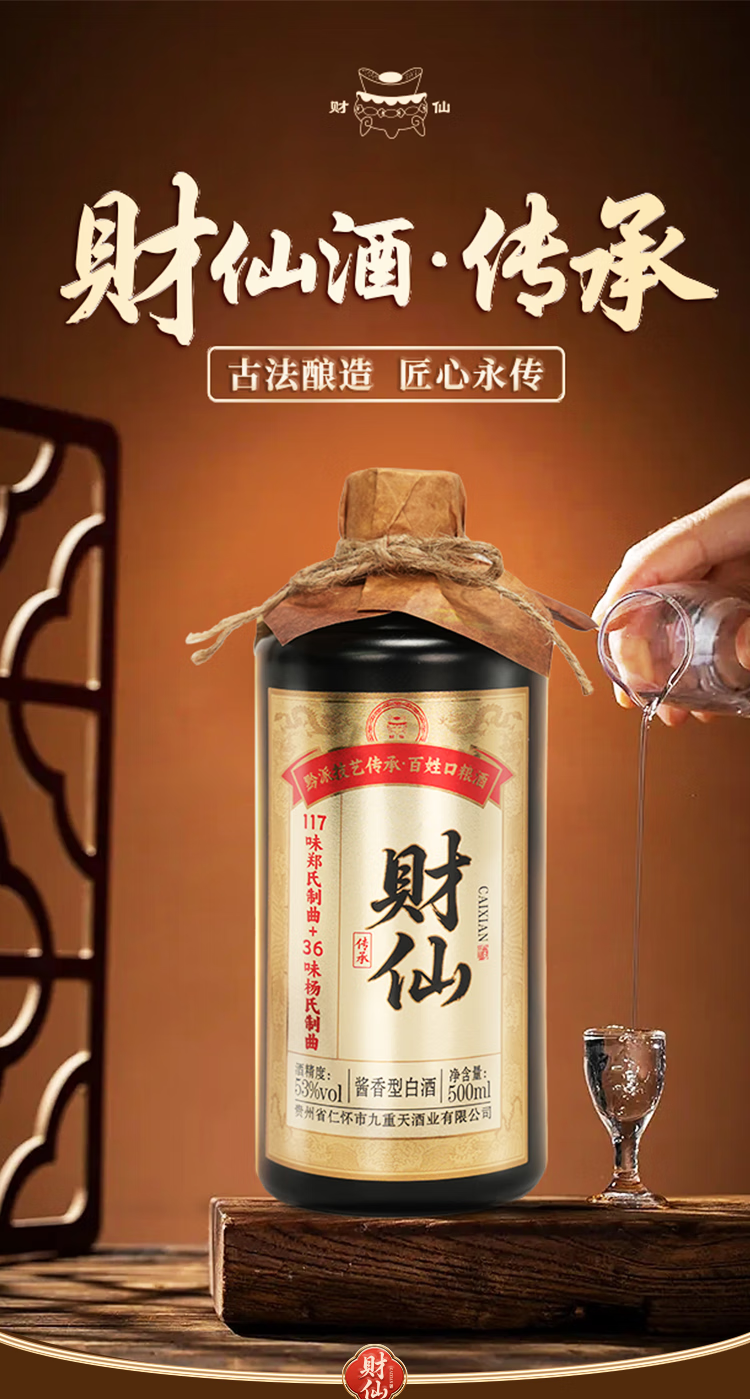 财仙传承10贵州酱酒型白酒53度茅台镇纯粮食坤沙老酒整箱 53度 500mL 6瓶 (送传承15品鉴1瓶)