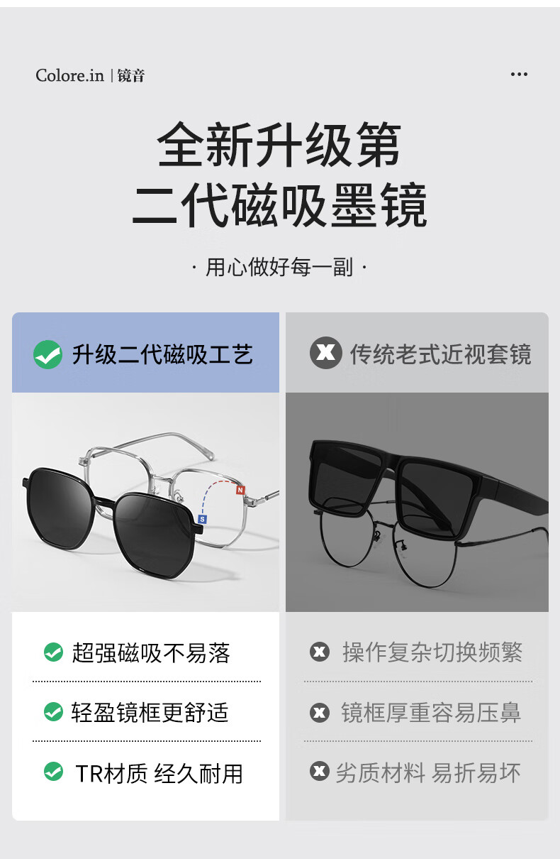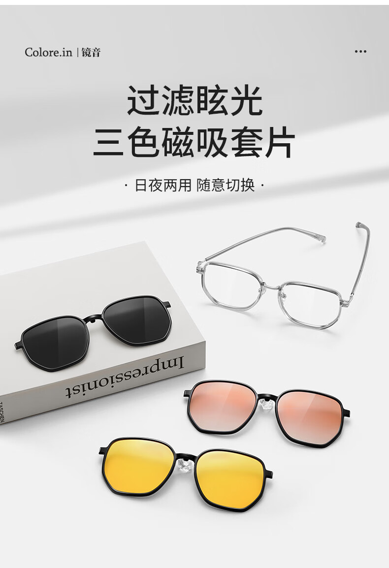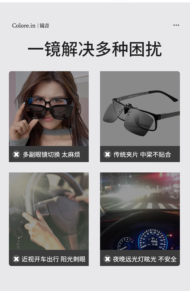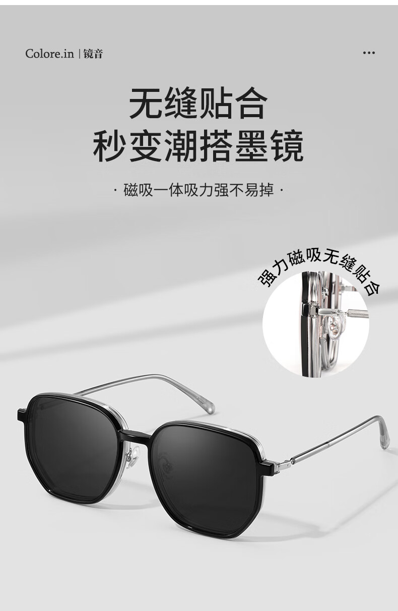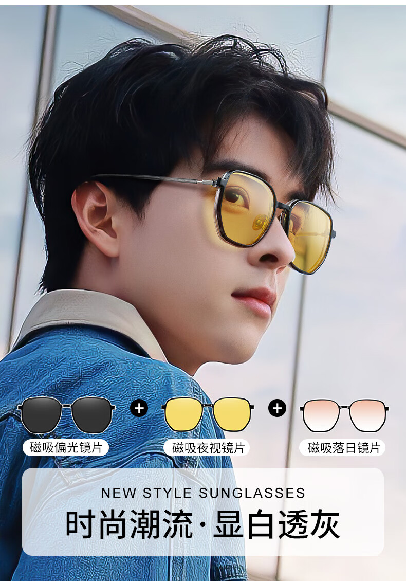 colore.in偏光太阳镜男开车专用眼镜日夜两用变色墨镜高清HUD抬显司机驾驶 P8711-枪框-偏光黑灰片