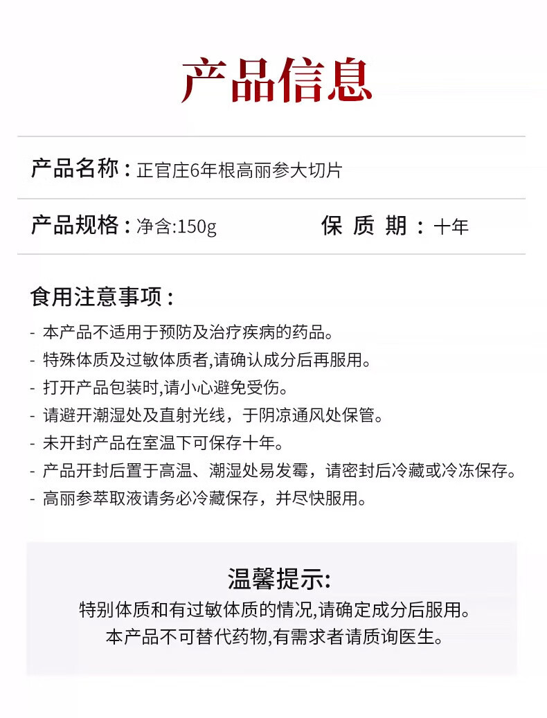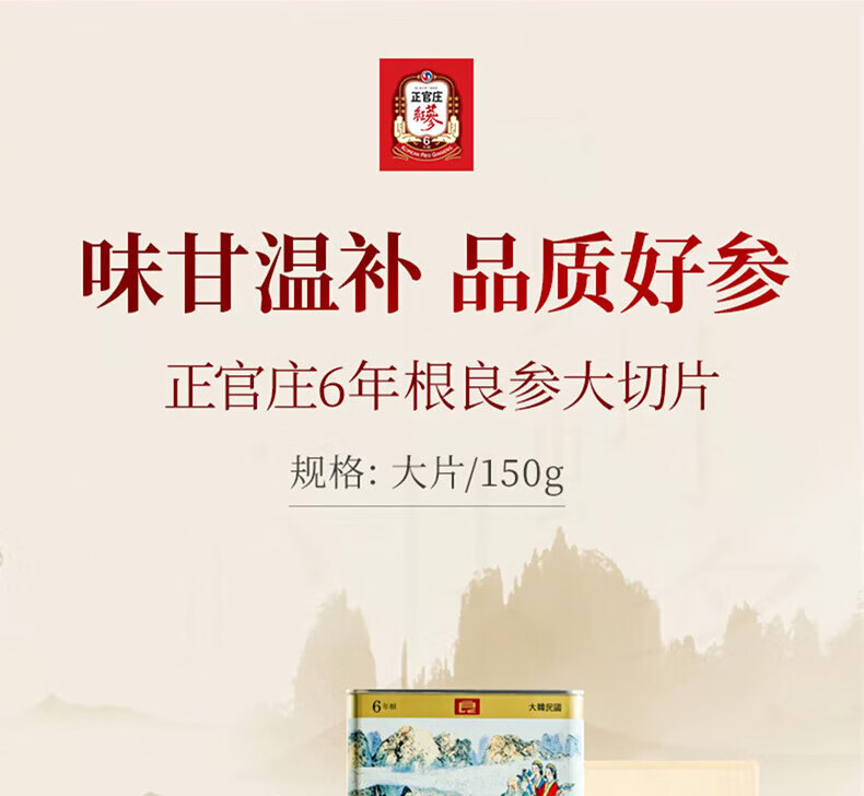正官庄高丽参[良]6年根切片大(150g) 年货节红参人参片礼盒皂苷养生送礼