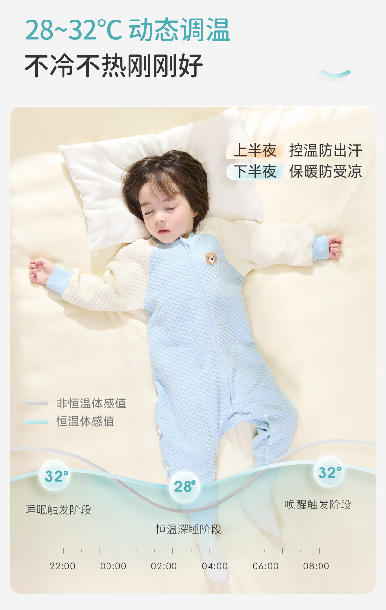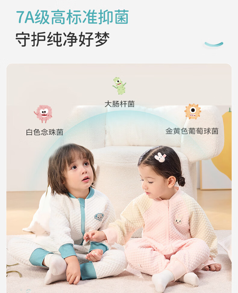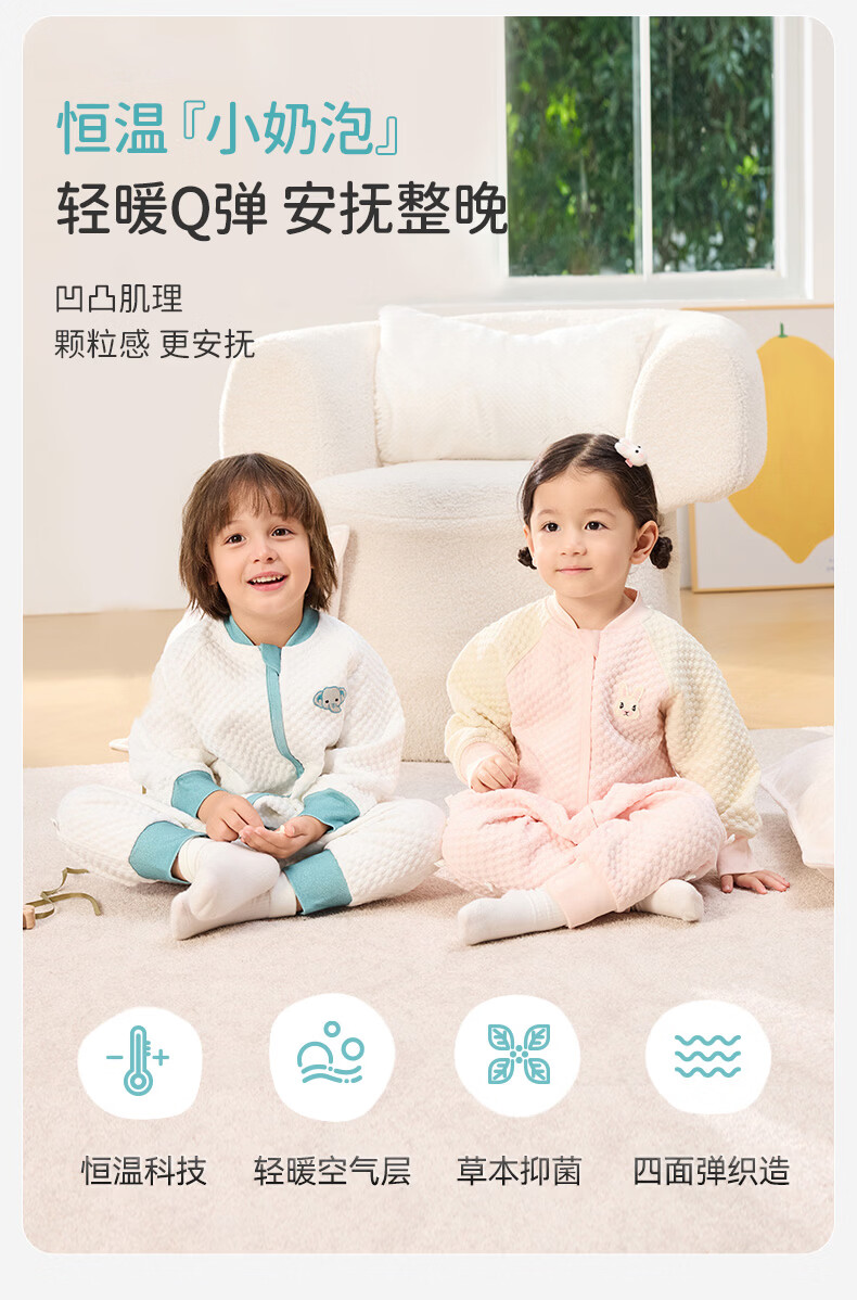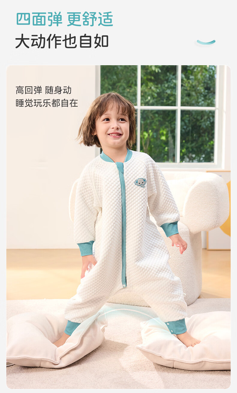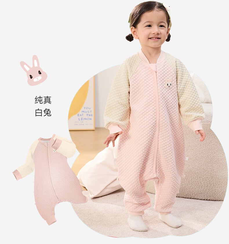 ibaby宝宝恒温睡袋春秋款婴儿分腿抱被防踢被睡衣小奶泡空气层睡袋睡衣 纯真白兔 【120码】推荐身高110-120cm