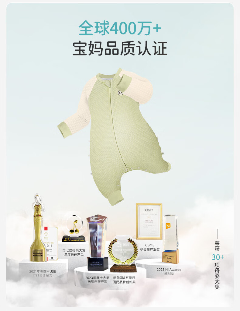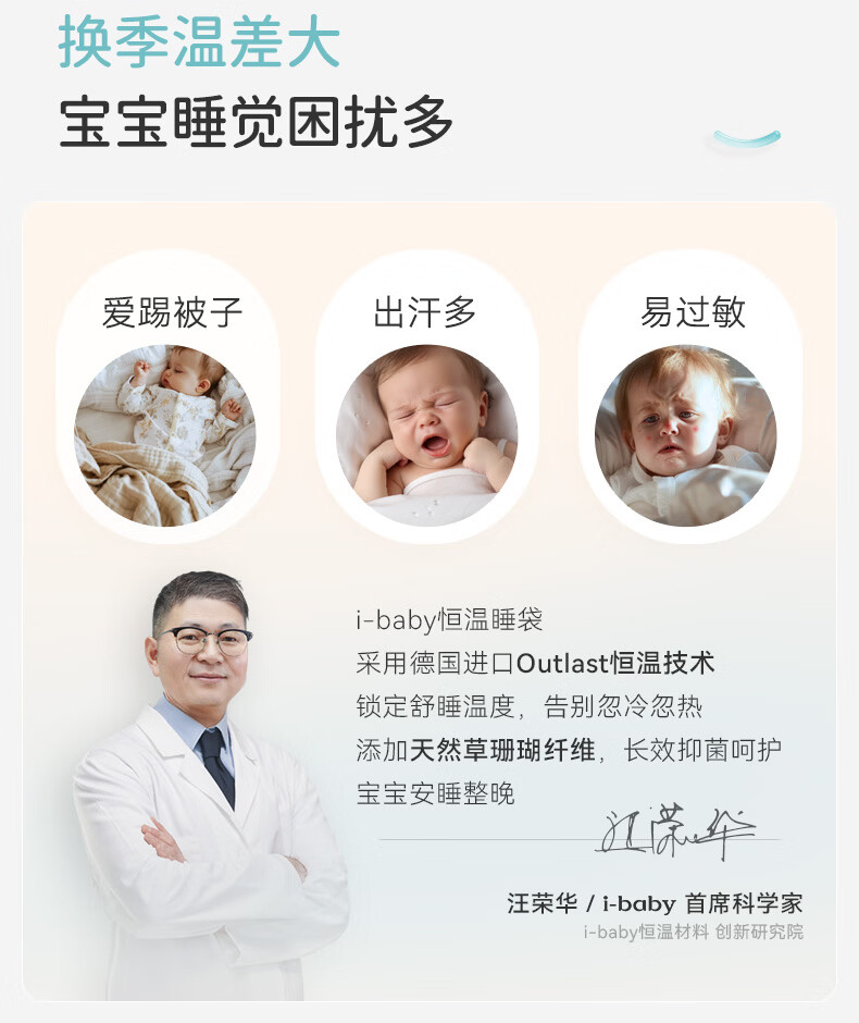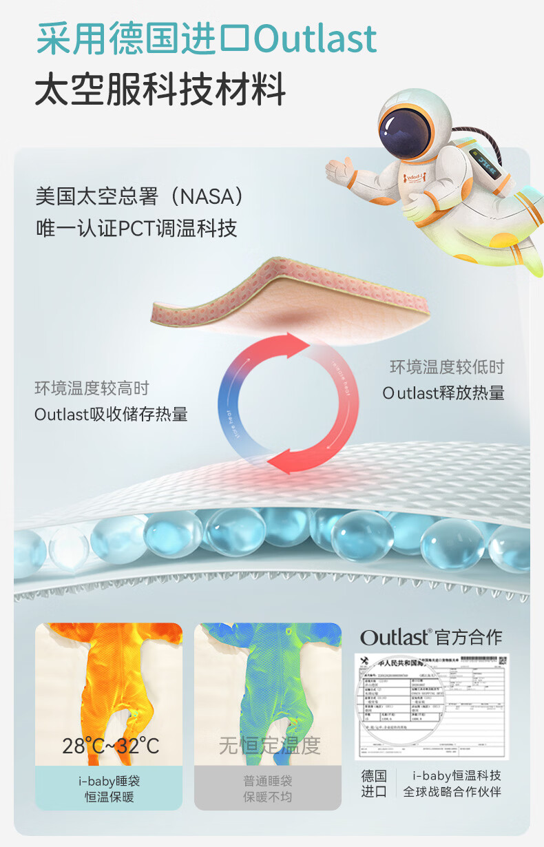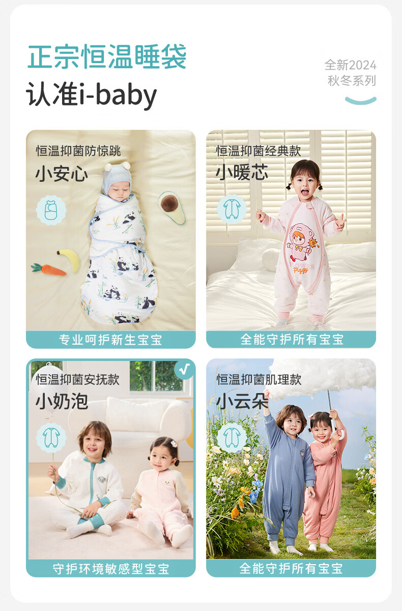 ibaby宝宝恒温睡袋春秋款婴儿分腿抱被防踢被睡衣小奶泡空气层睡袋睡衣 纯真白兔 【120码】推荐身高110-120cm