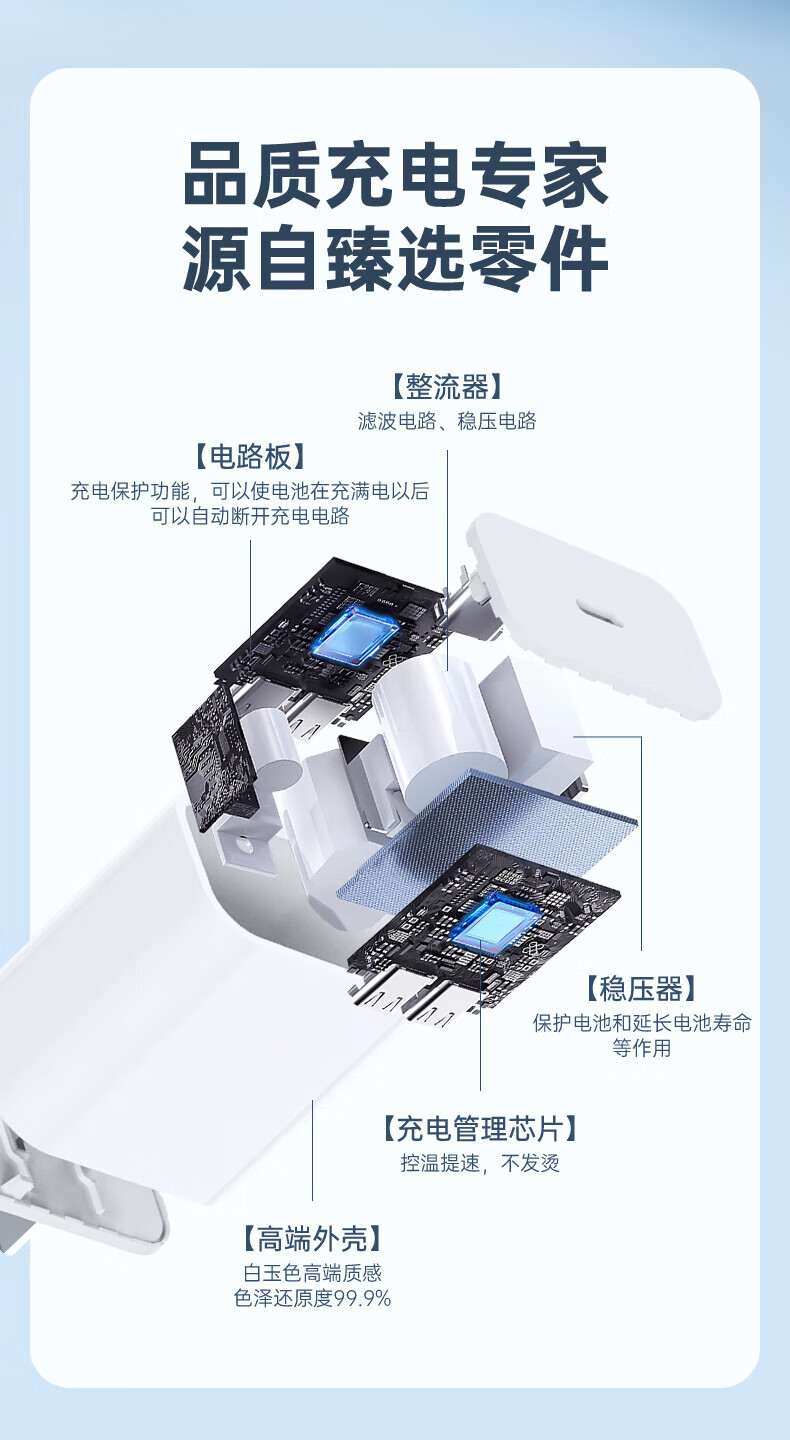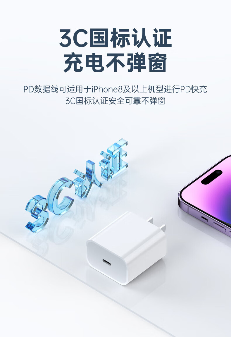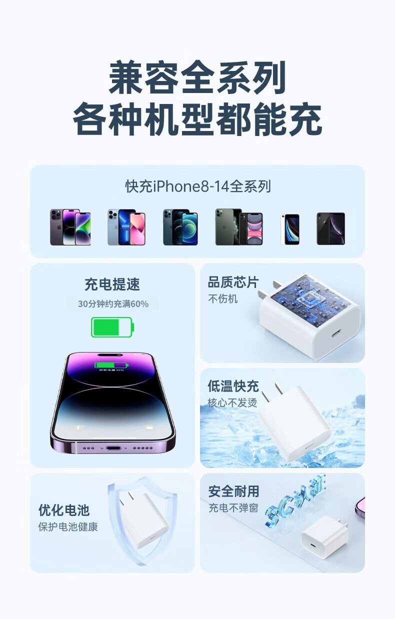 雷珞克适用30W苹果充电器套装PD快充兼容20W手机充电头数据线适用iphone14/13/12/11pro/PLUS x平板ipad 套装【适用30W充电器+2米PD线】