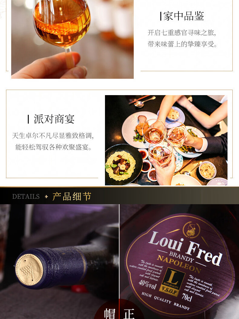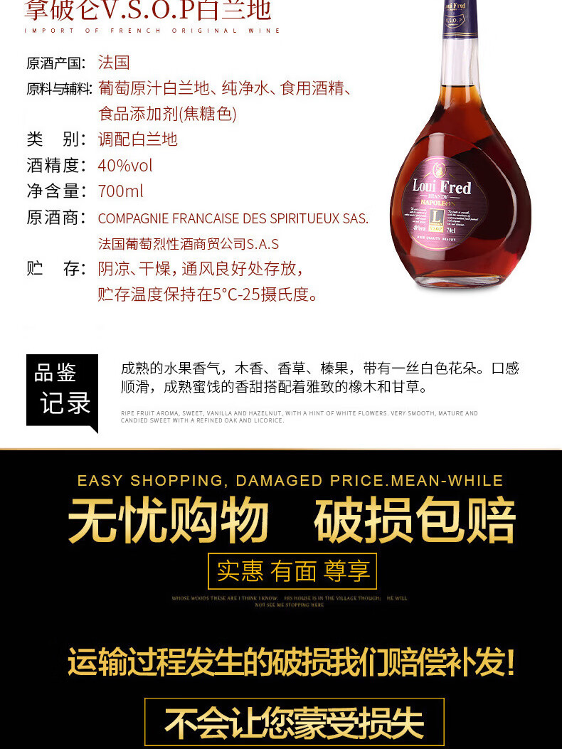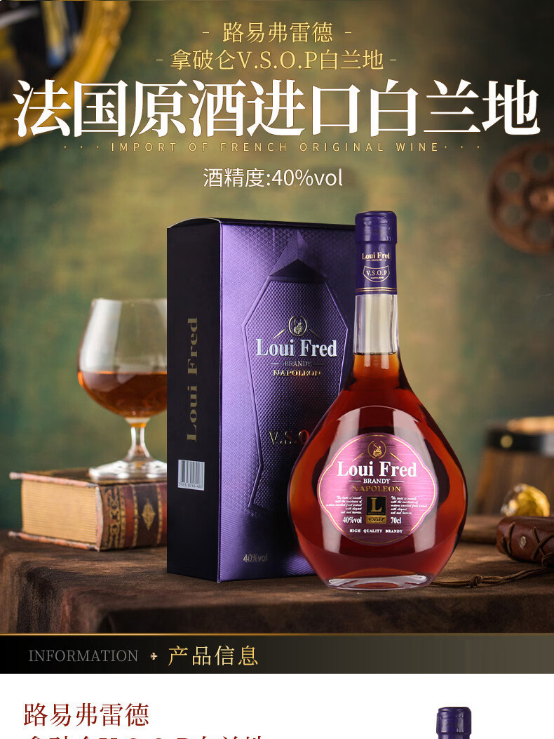 路易弗雷德拿破仑VSOP白兰地礼盒装洋酒700ml 单支礼盒