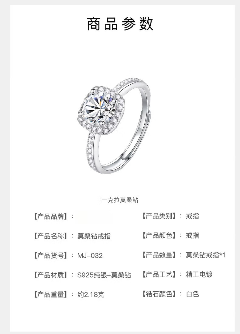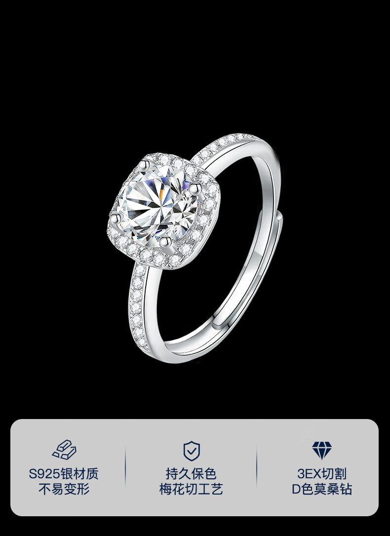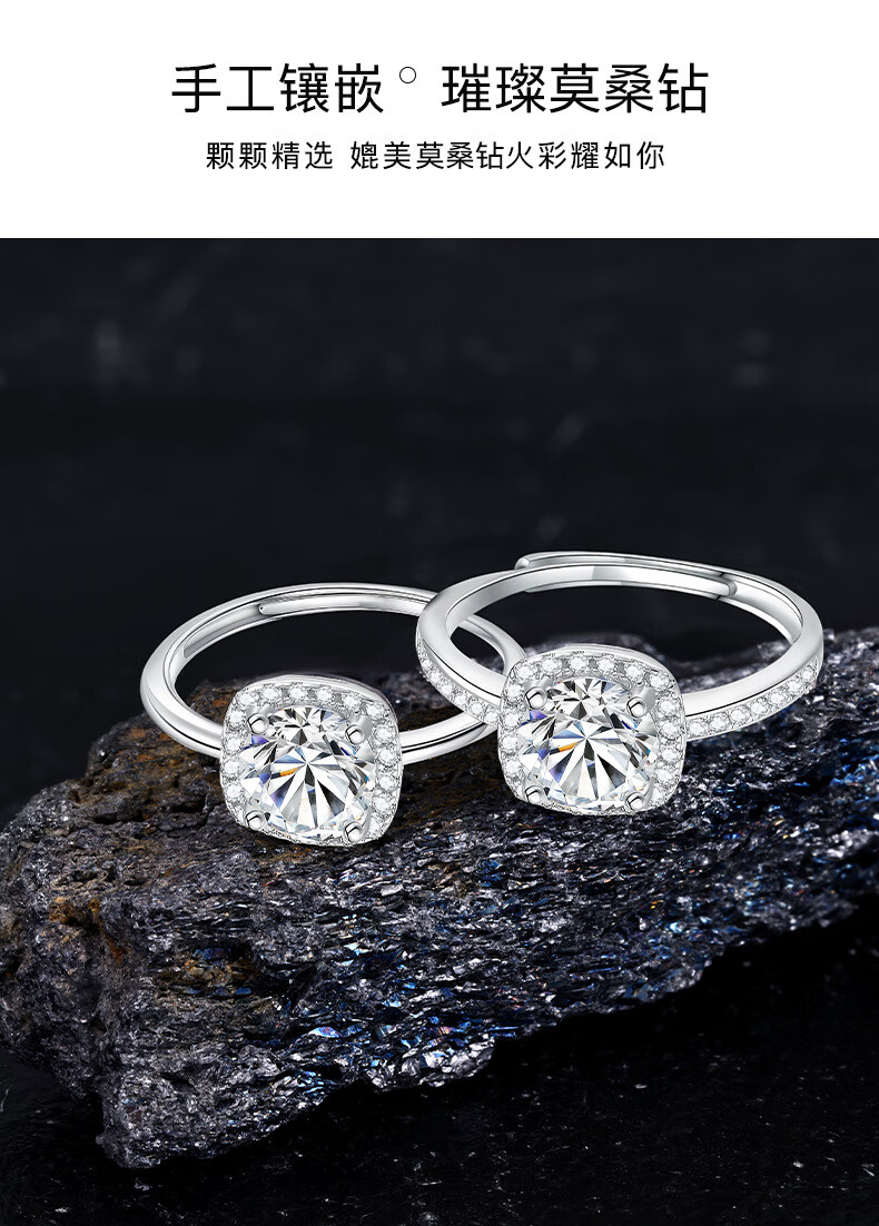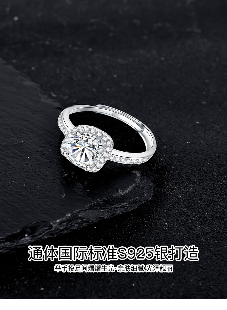 胖东来同款莫桑钻小方糖戒指原创戒银1克拉莫桑石方包 银+1克拉莫桑MJ-032 开口可调节