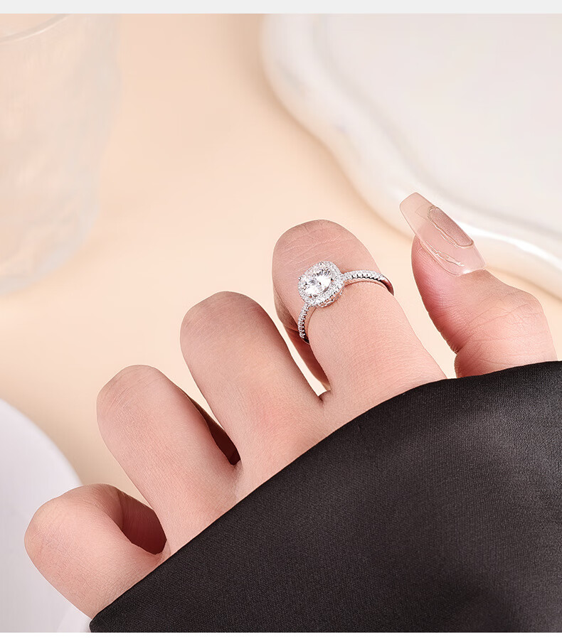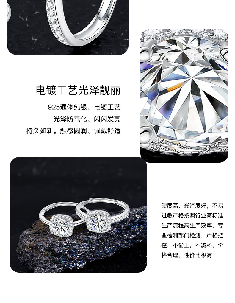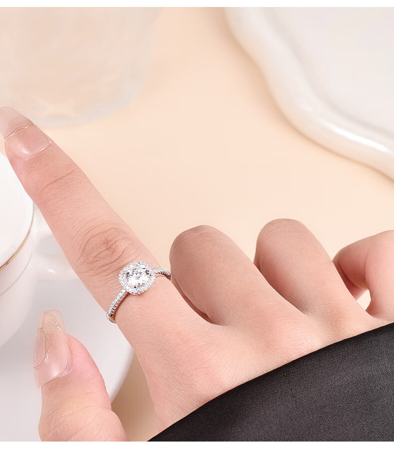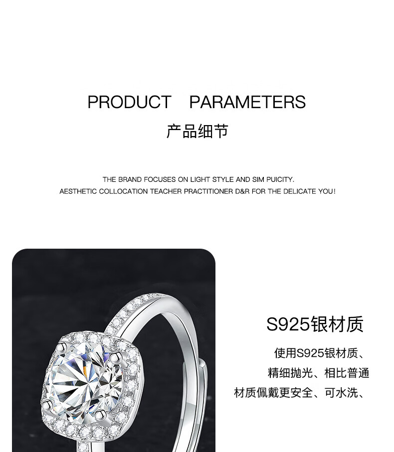 胖东来同款莫桑钻小方糖戒指原创戒银1克拉莫桑石方包 银+1克拉莫桑MJ-032 开口可调节