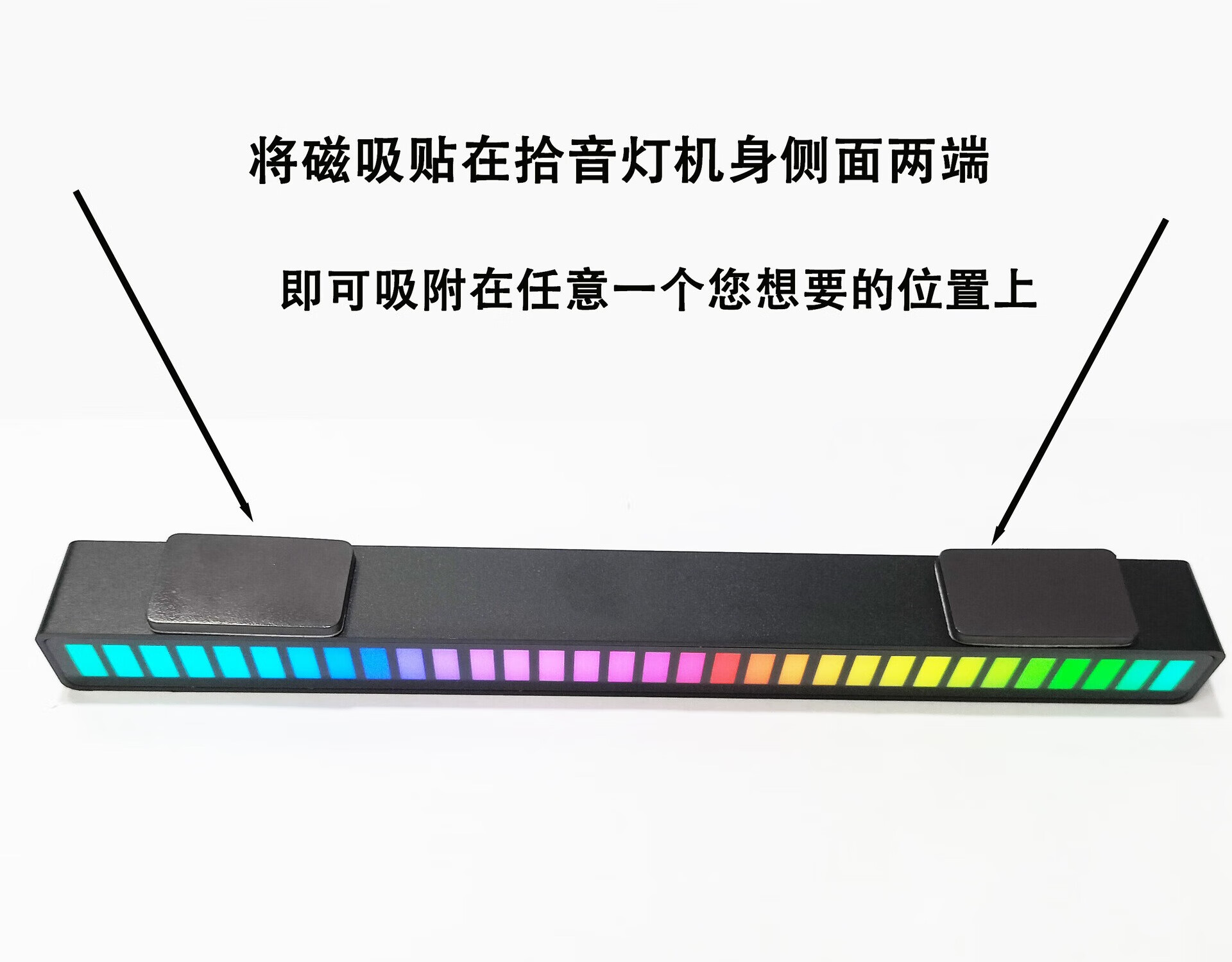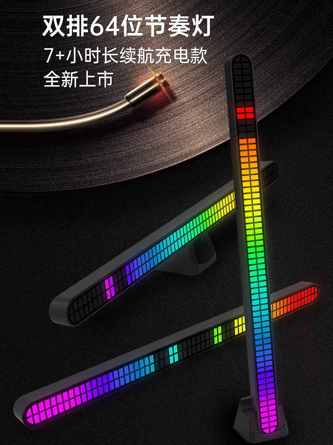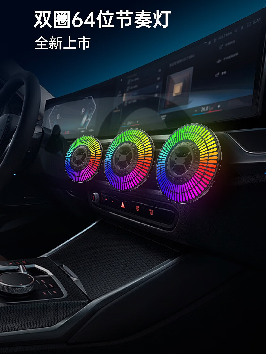 磁吸电竞3D拾音灯节奏灯氛围灯灯条车载音乐声控车内智能律动感应 【双排64灯】长30厘米 Typec插线款(一个)磁吸安装