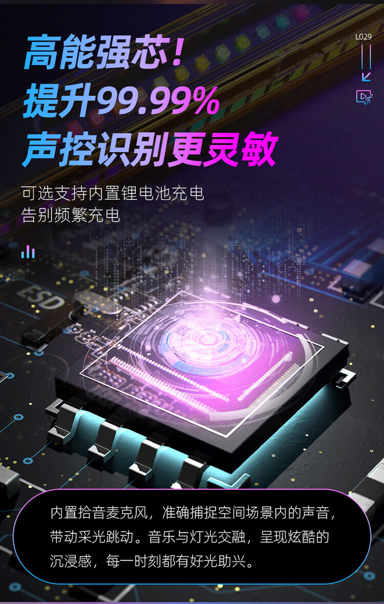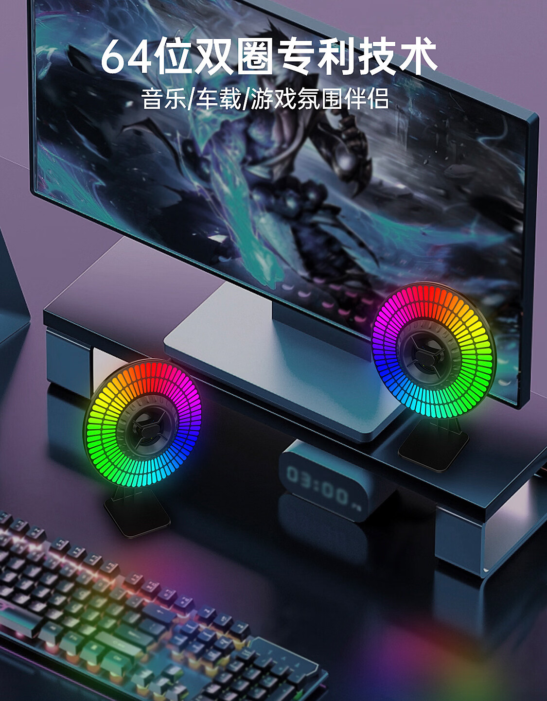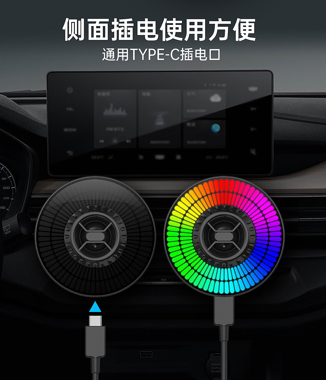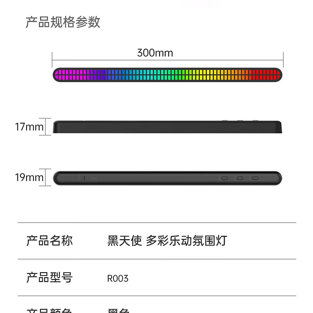磁吸电竞3D拾音灯节奏灯氛围灯灯条车载音乐声控车内智能律动感应 【双排64灯】长30厘米 Typec插线款(一个)磁吸安装