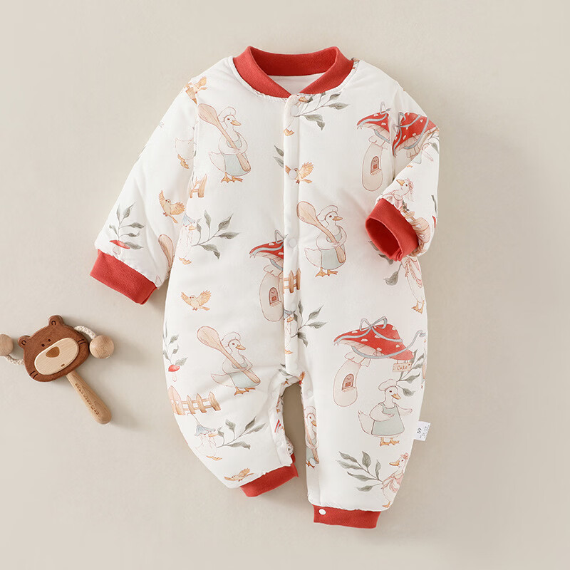 婴幼儿150克夹棉连体衣秋冬季保暖男女宝宝加厚哈衣爬服外出冬装 雨伞小猫【150克夹棉连体衣】 59cm 59码 适合身高52-59cm