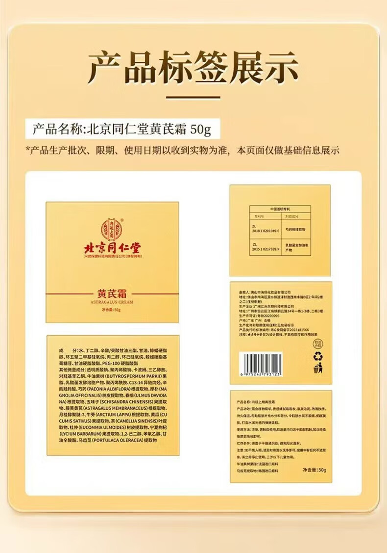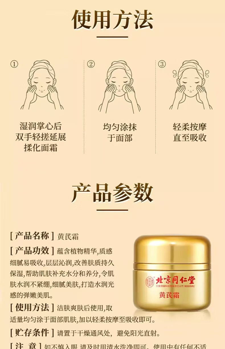 内廷上用北京同仁堂黄芪霜正品保湿滋润面霜搭斑黄皱抗老牌国货面部男女用 五盒装(推荐装)新包装