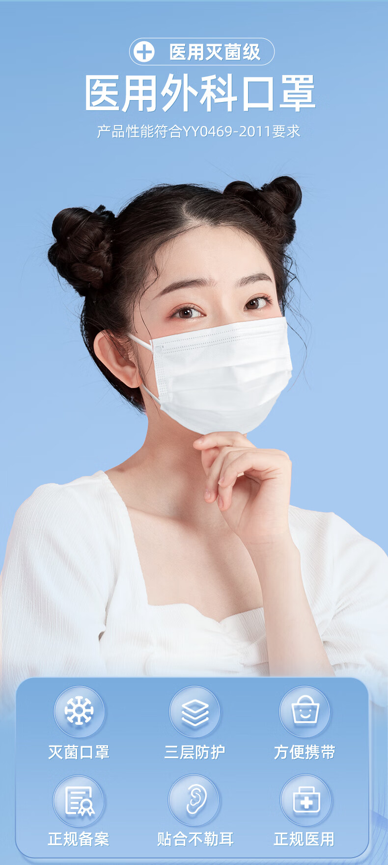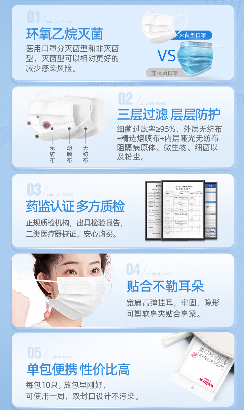 维德(WELLDAY)医用外科口罩灭菌级防尘防柳絮口罩轻薄透气挂耳式保暖透气口罩 【外科灭菌白色】100只