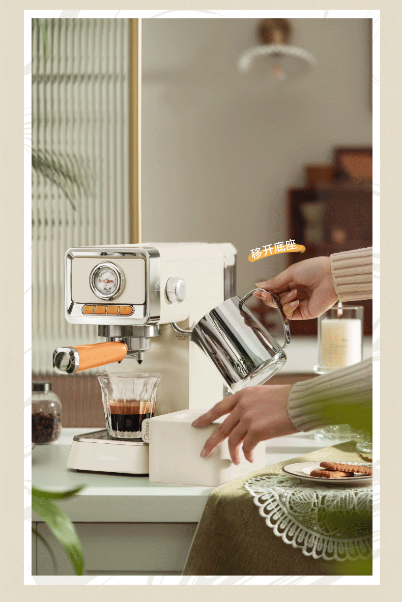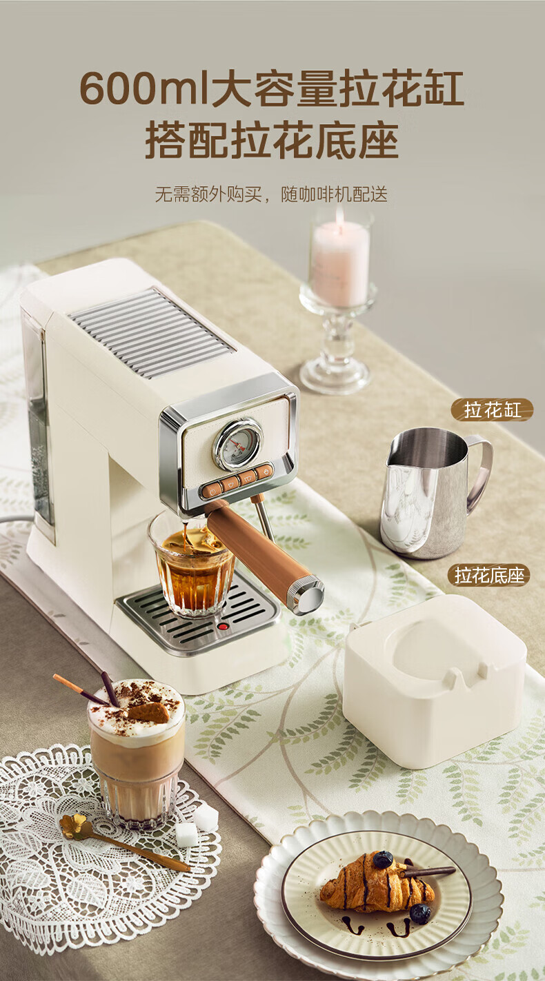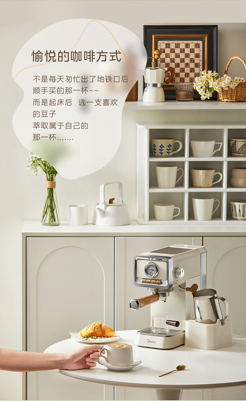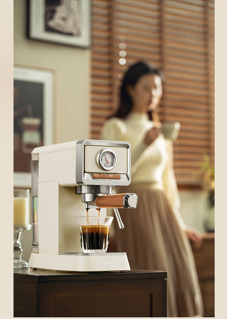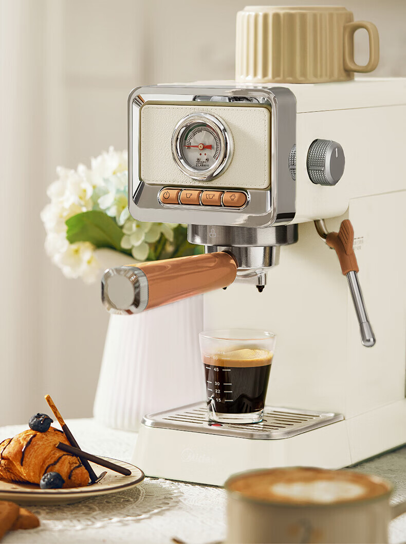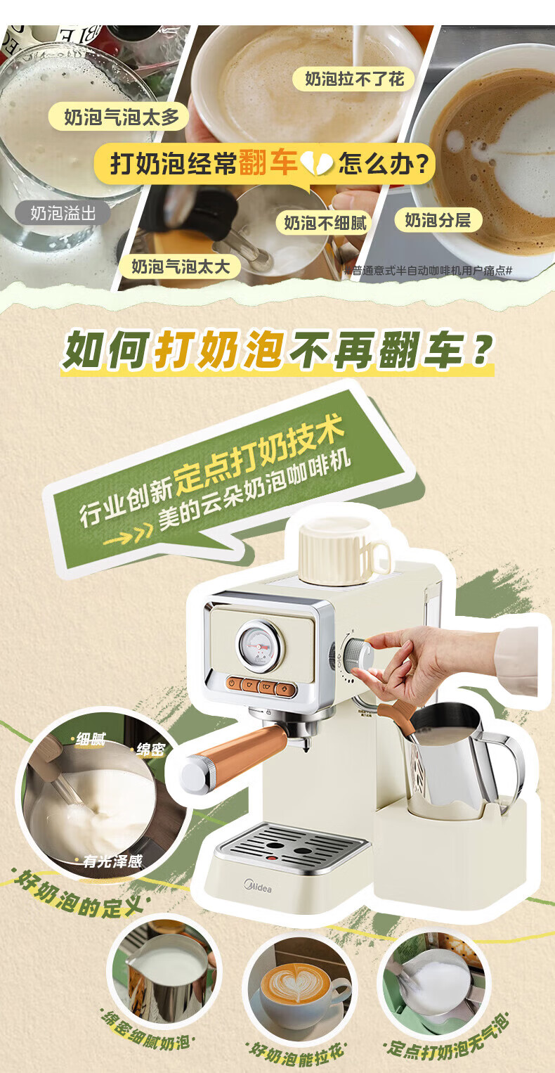 美的(Midea)云朵奶泡半自动意式咖啡机家用泵压式咖啡机打奶泡萃取一体机复古花式奶咖 【进阶半自动】MA-KFE08