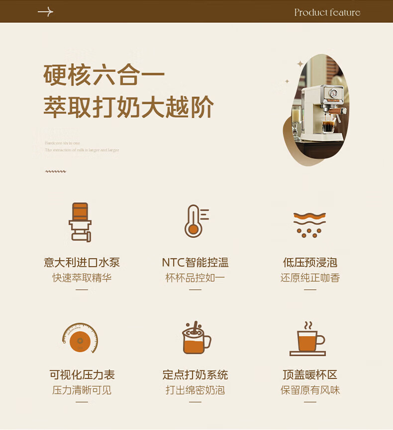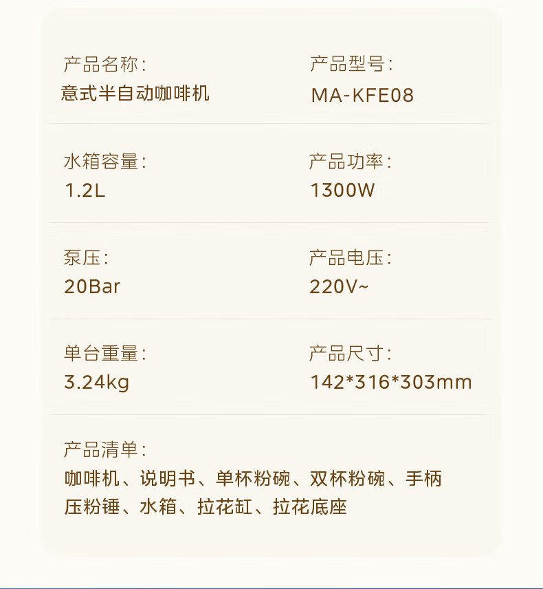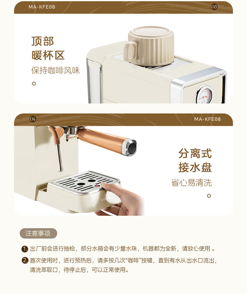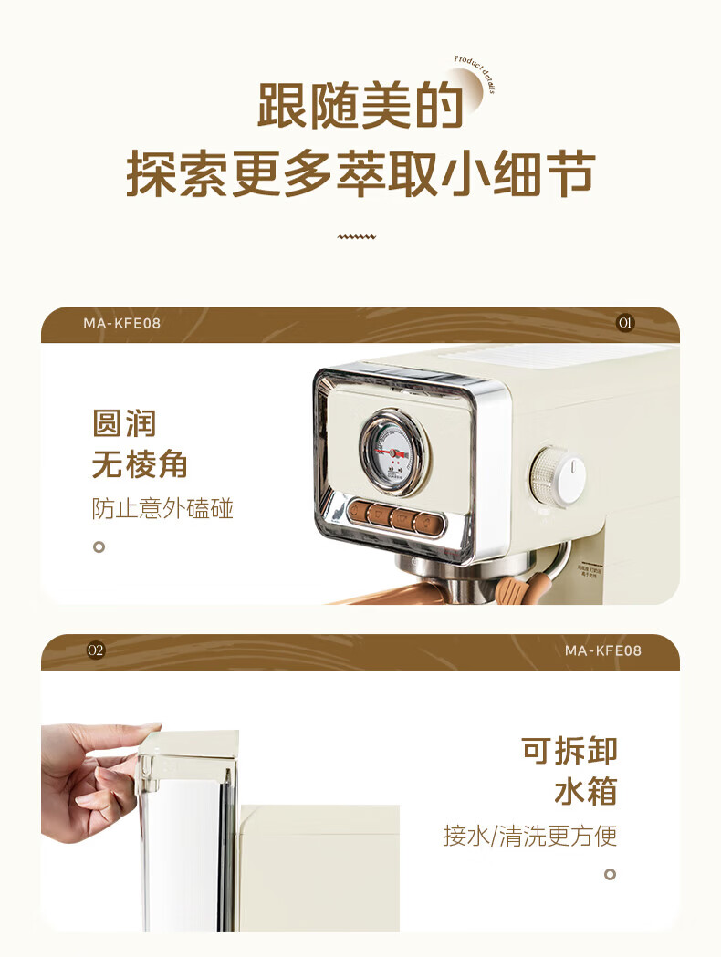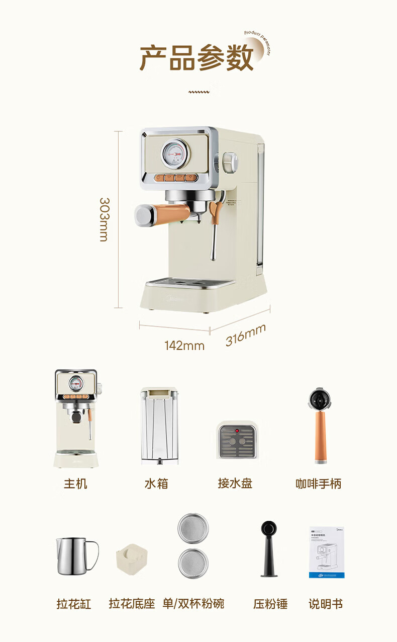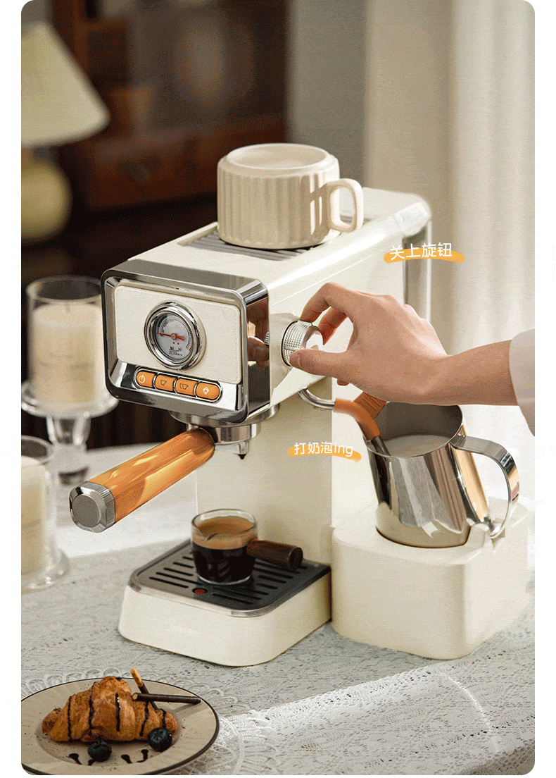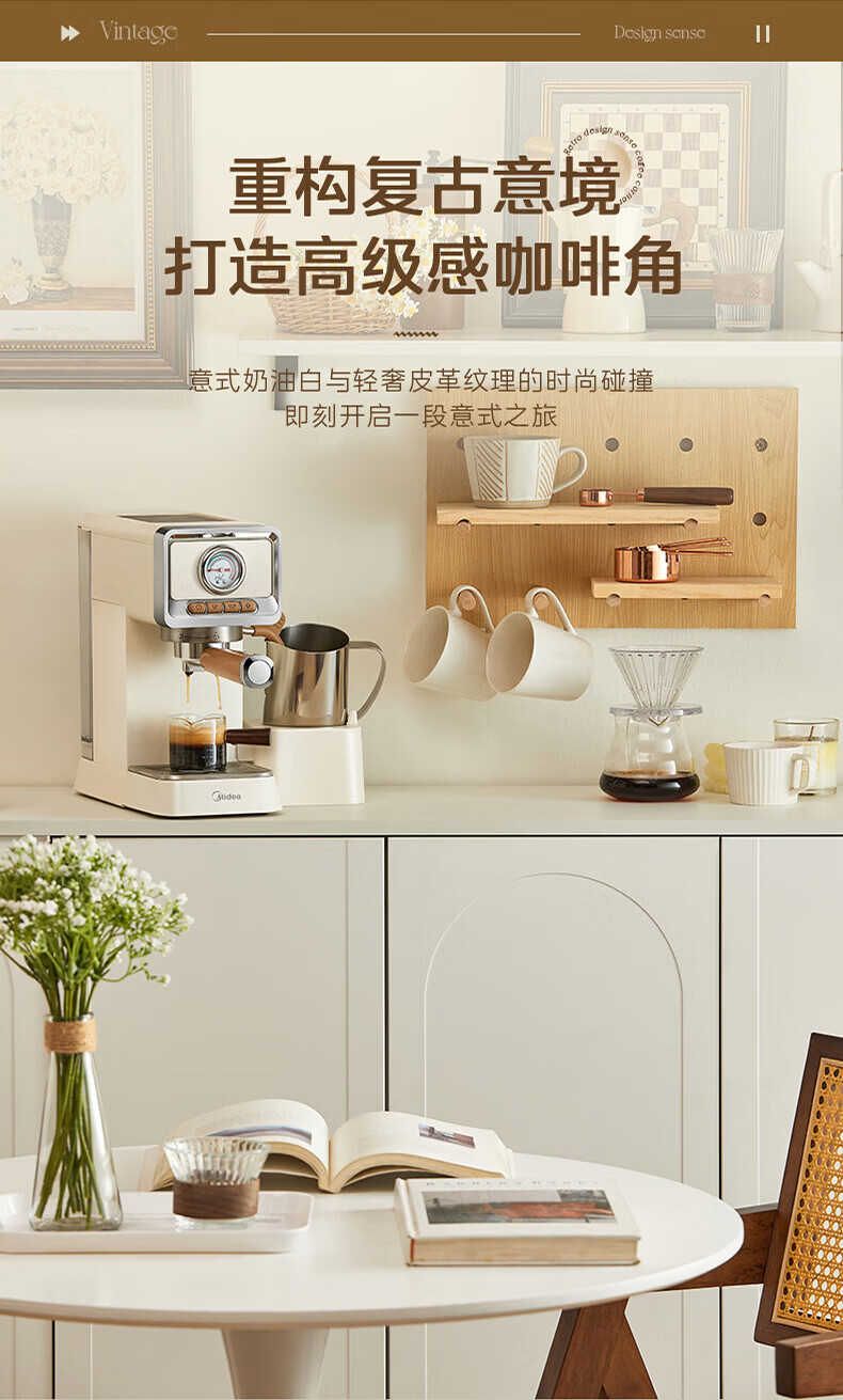 美的(Midea)云朵奶泡半自动意式咖啡机家用泵压式咖啡机打奶泡萃取一体机复古花式奶咖 【进阶半自动】MA-KFE08