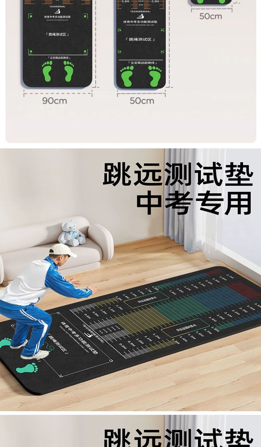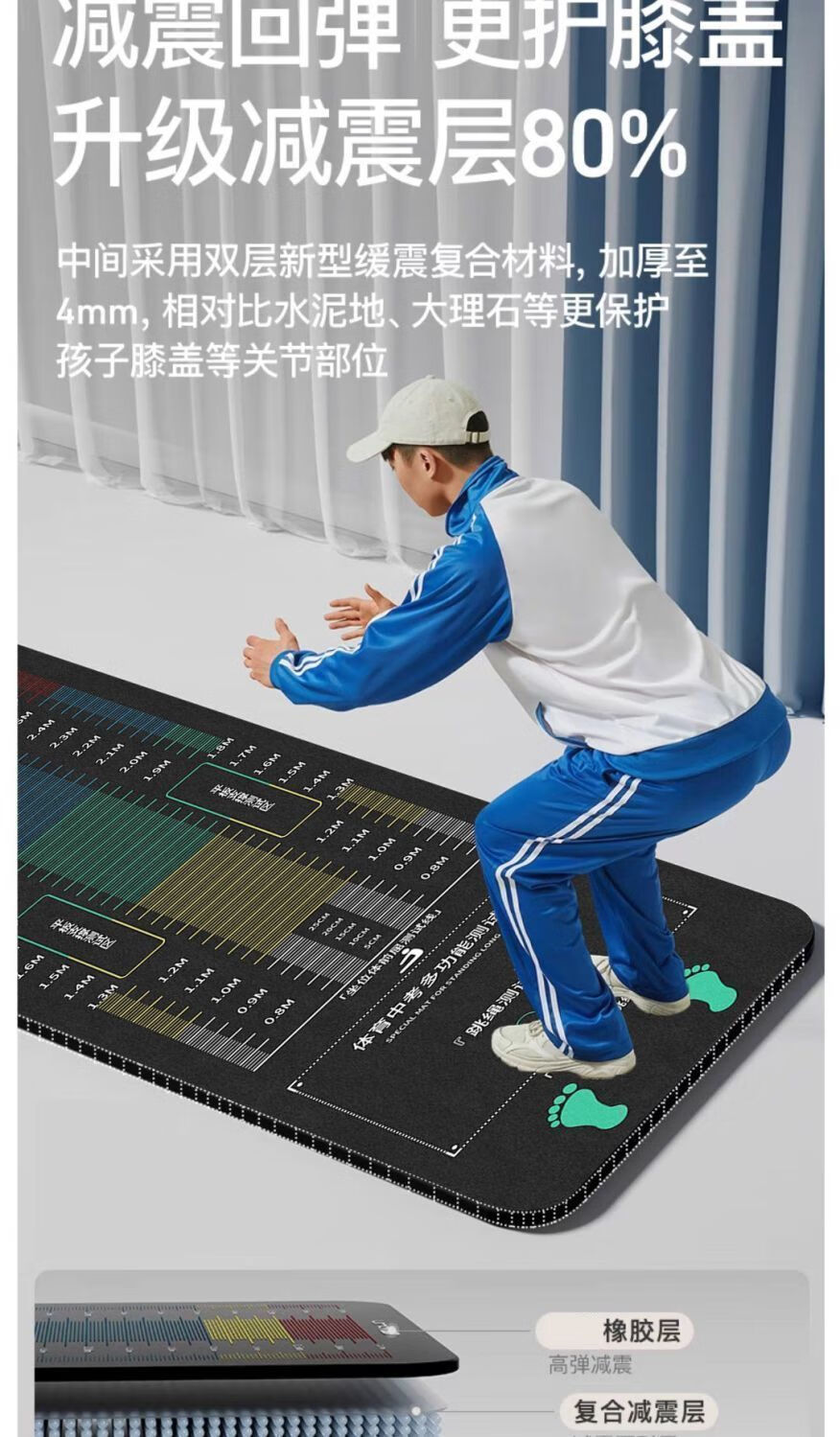 立定跳远专用垫子 立定跳远专用垫子家用地垫体育中考 YS-红色跳远专用-G 儿童训练款20*10cm橡胶防滑
