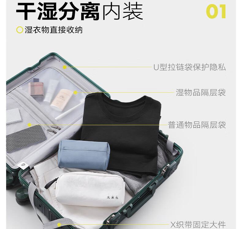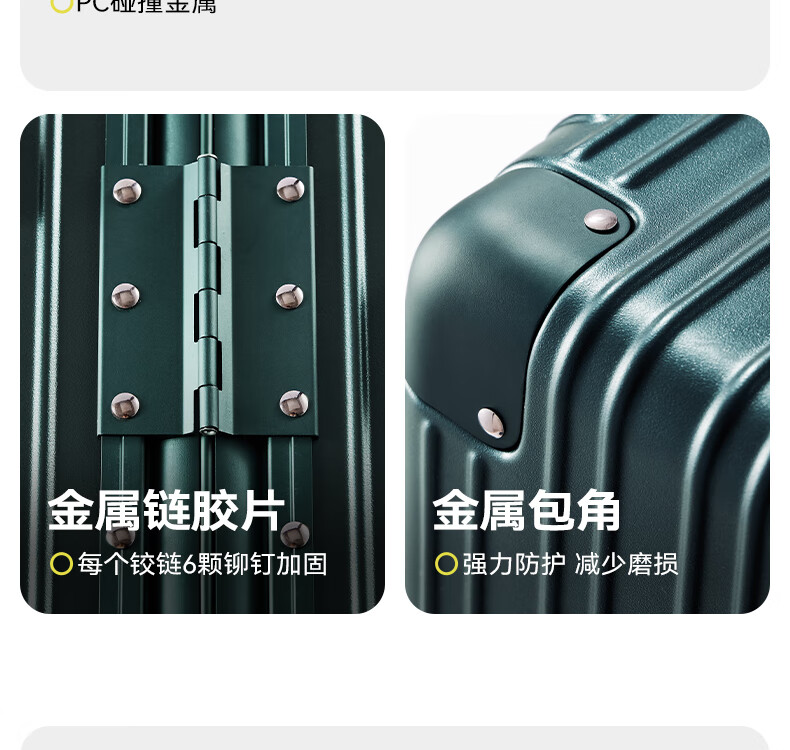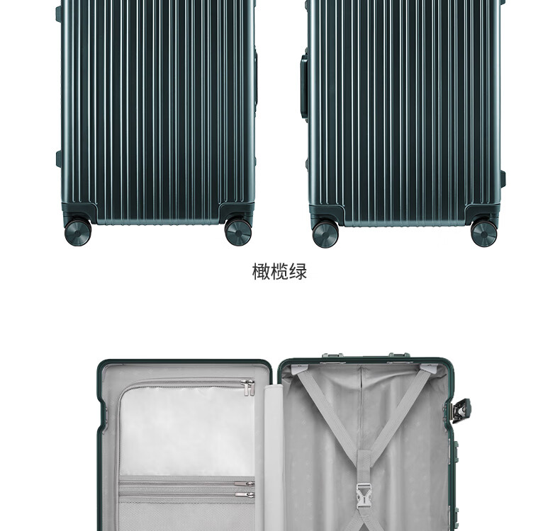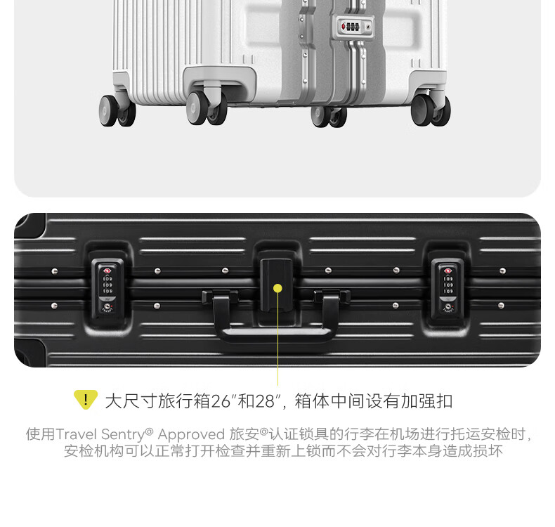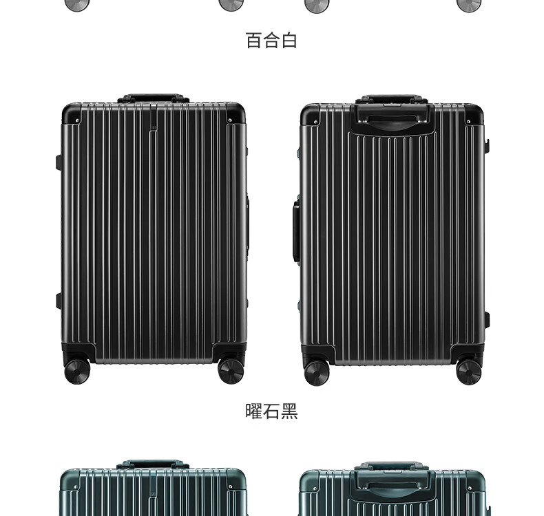 90分PC旅行箱轻质铝框行李箱24英寸防刮商旅两用拉杆箱登机箱曜石黑