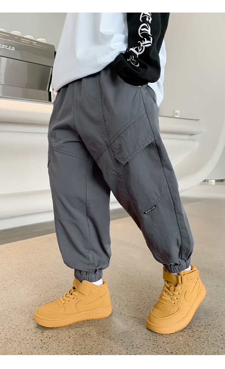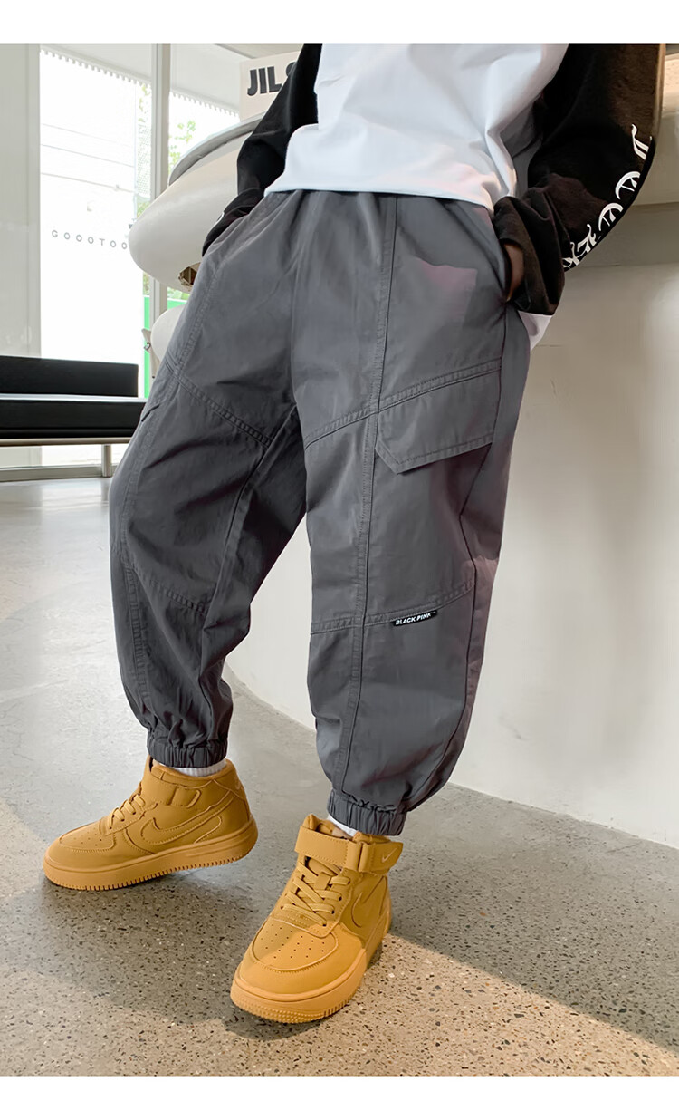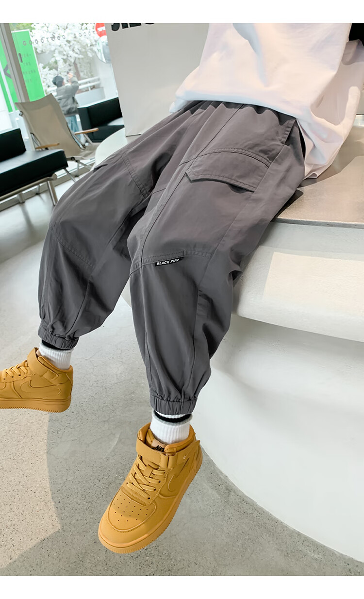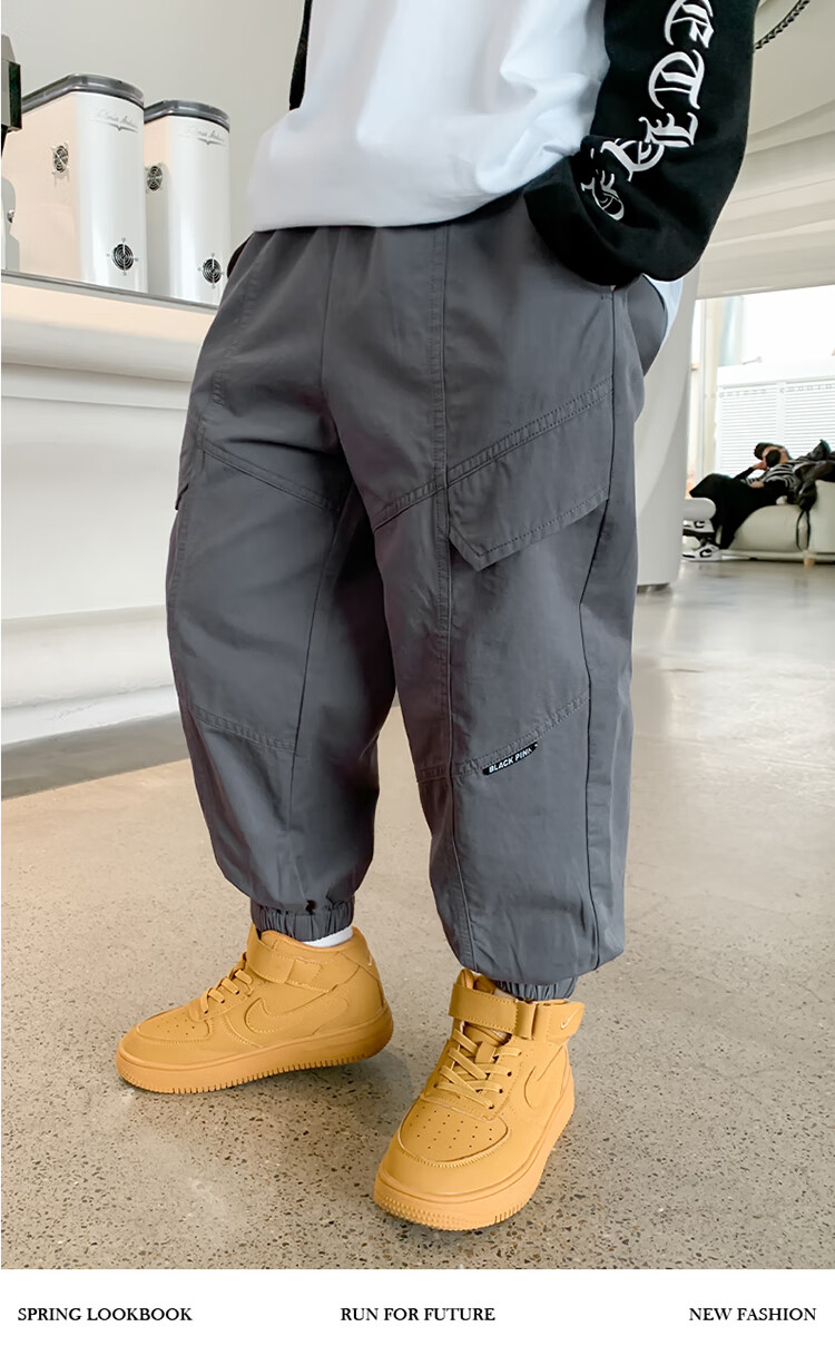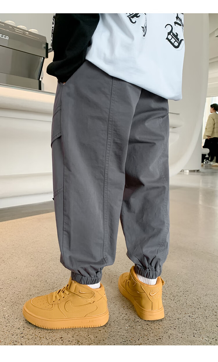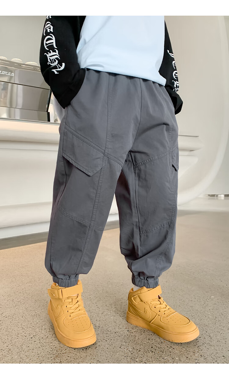 左西儿童裤子工装裤男童秋装2025新款男孩运动裤宽松裤子童装 灰色140