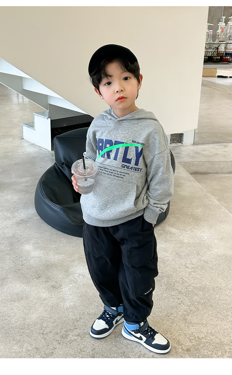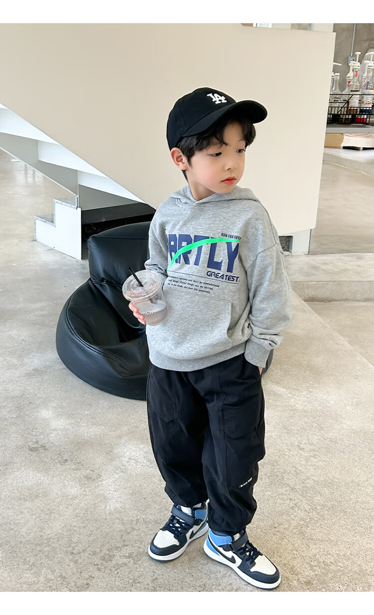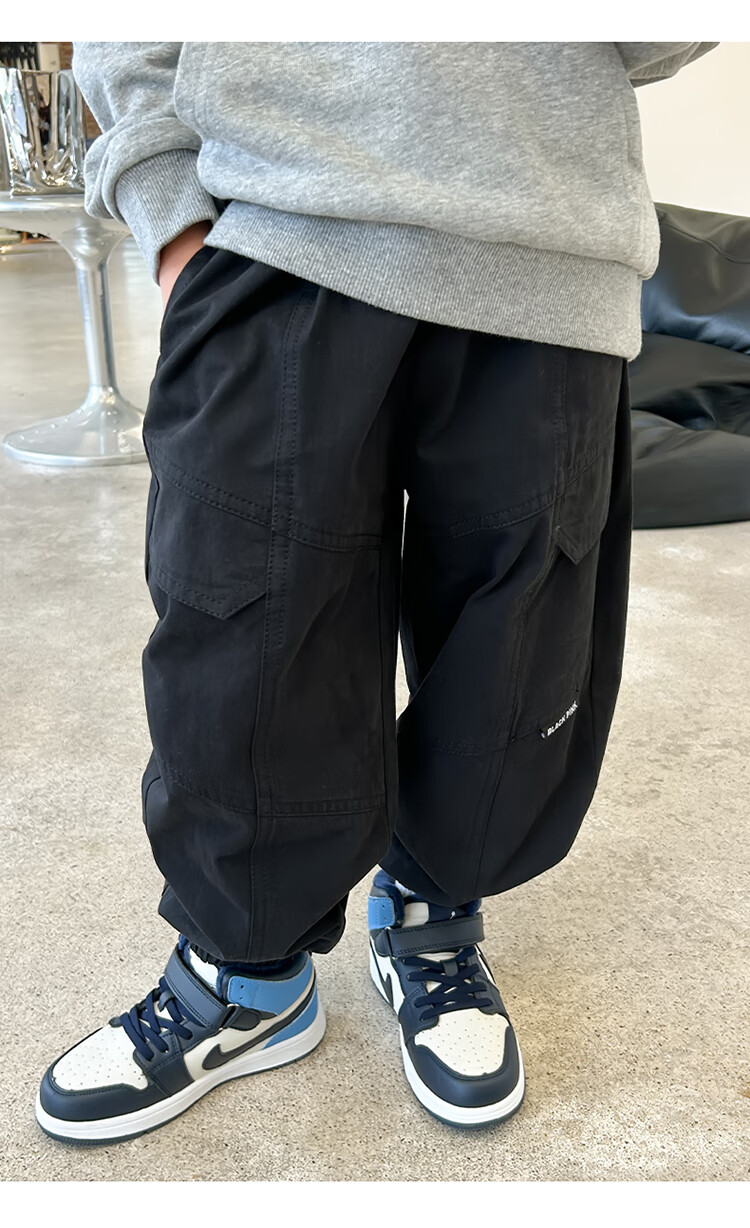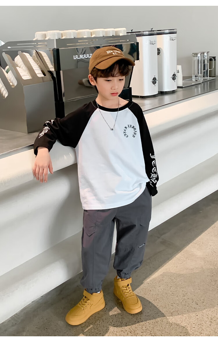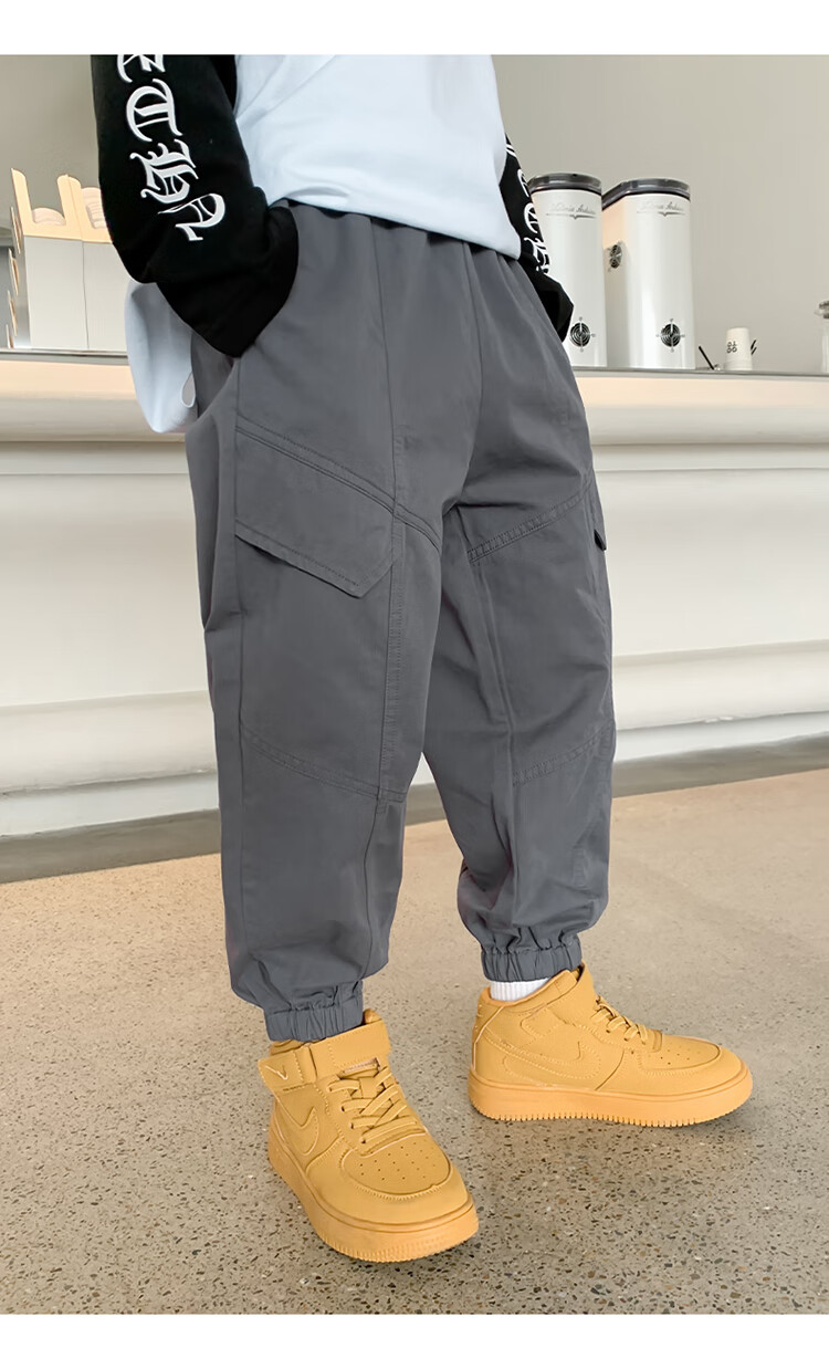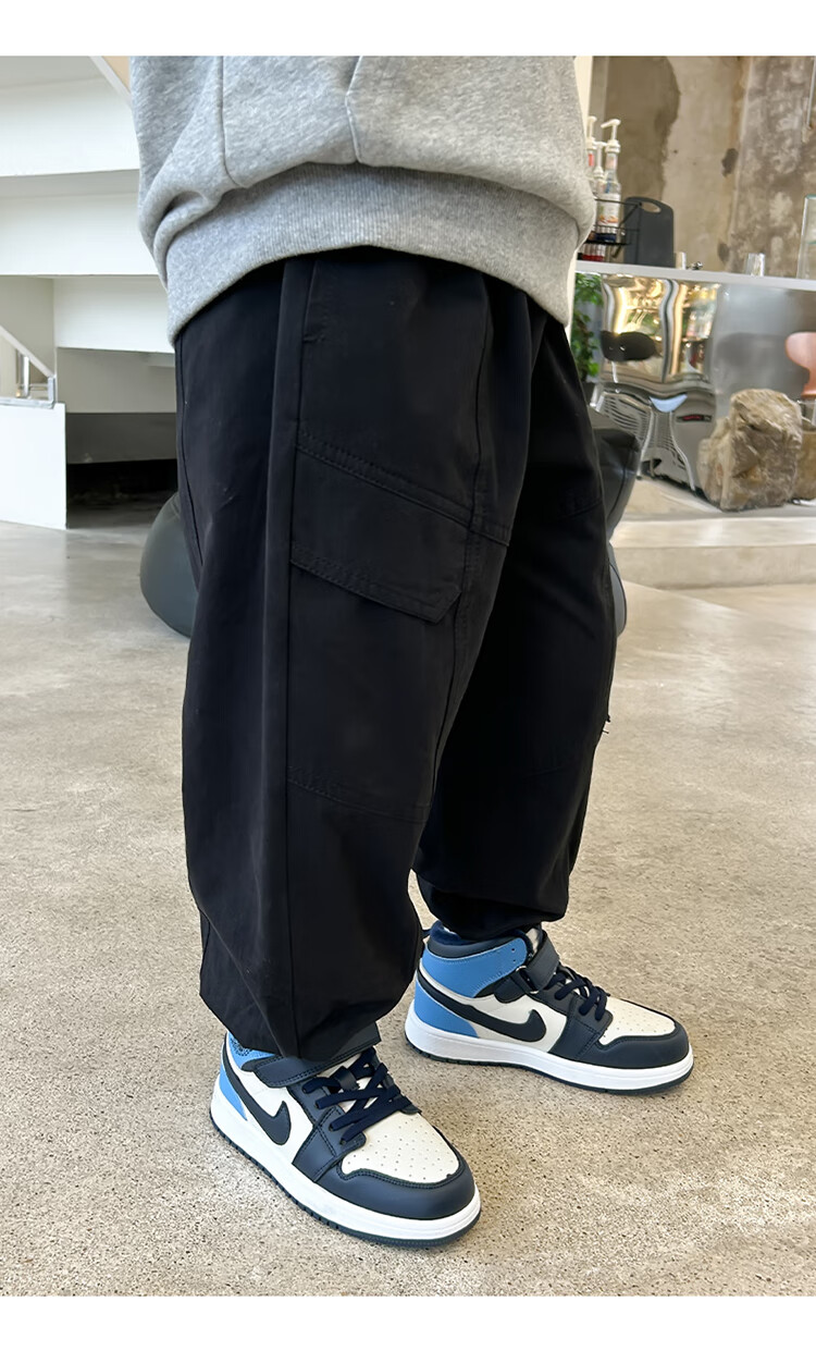 左西儿童裤子工装裤男童秋装2025新款男孩运动裤宽松裤子童装 灰色140