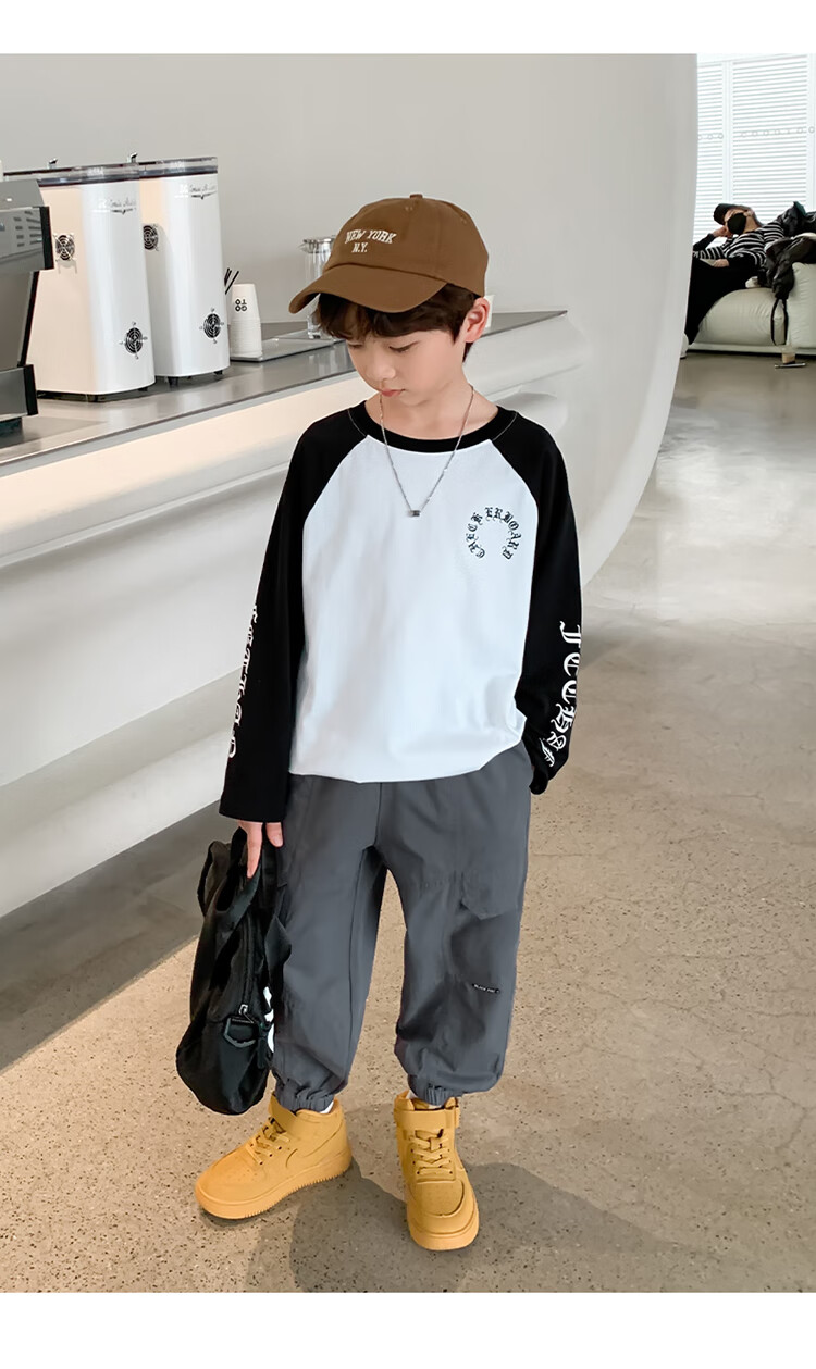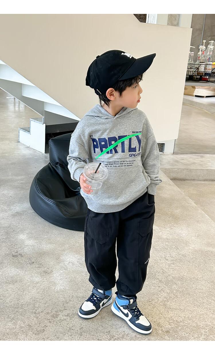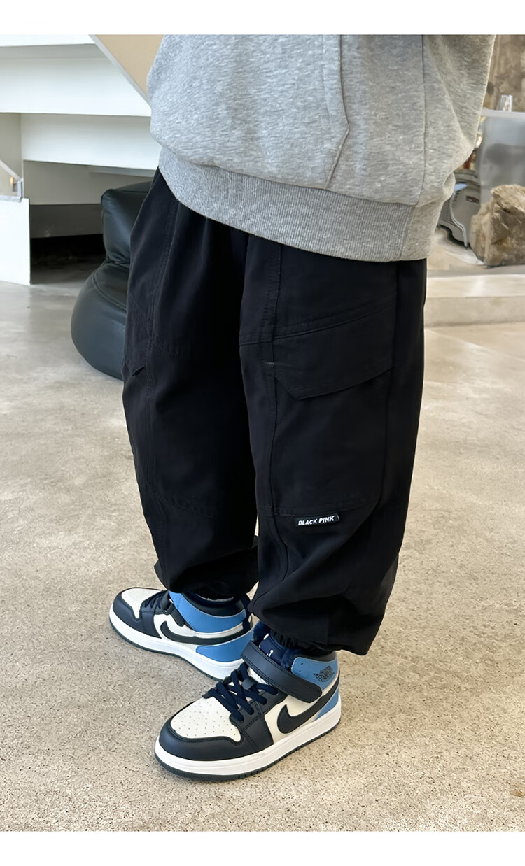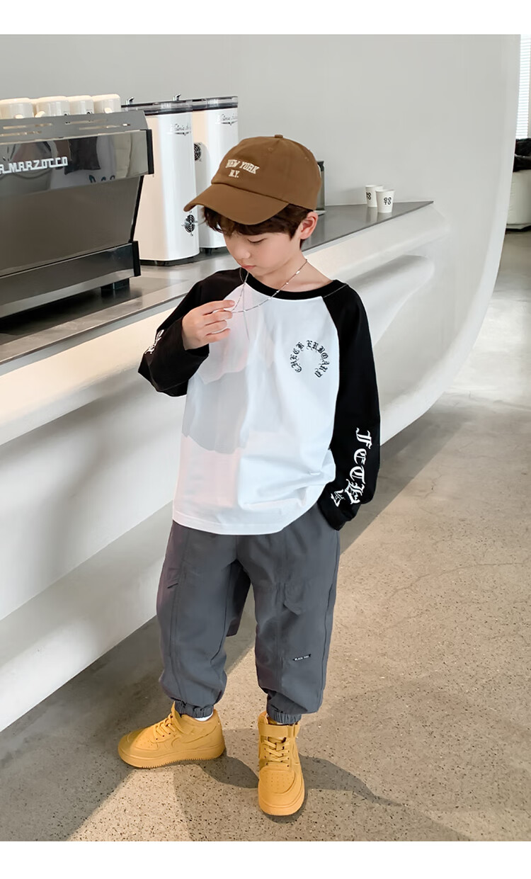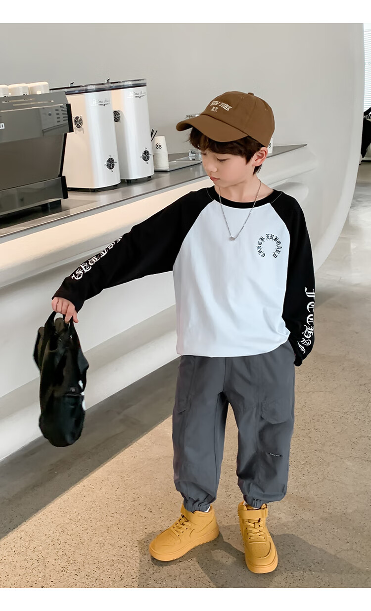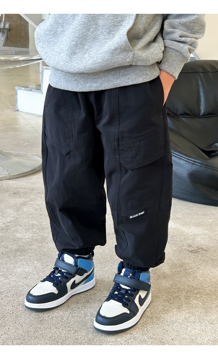 左西儿童裤子工装裤男童秋装2025新款男孩运动裤宽松裤子童装 灰色140