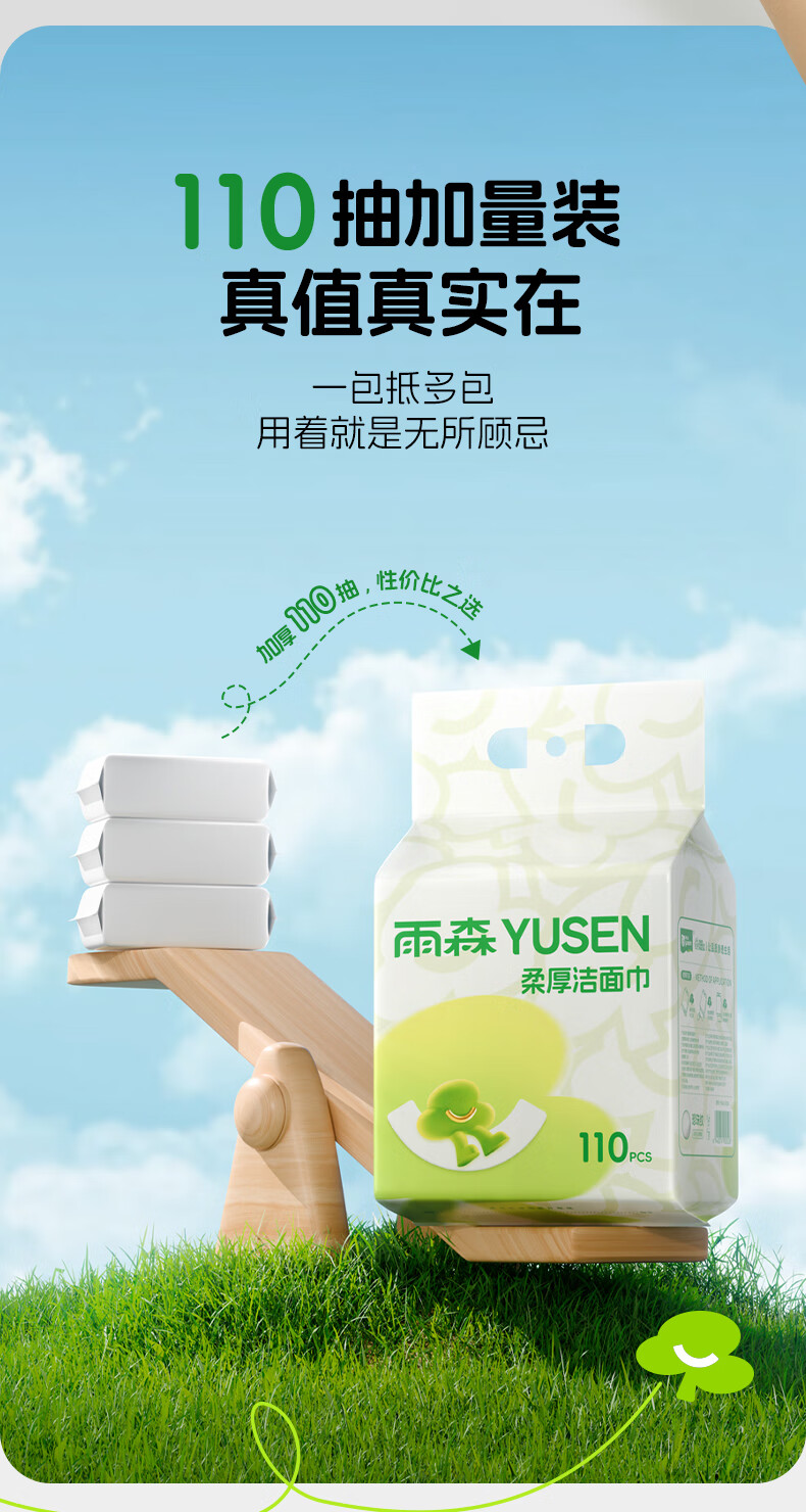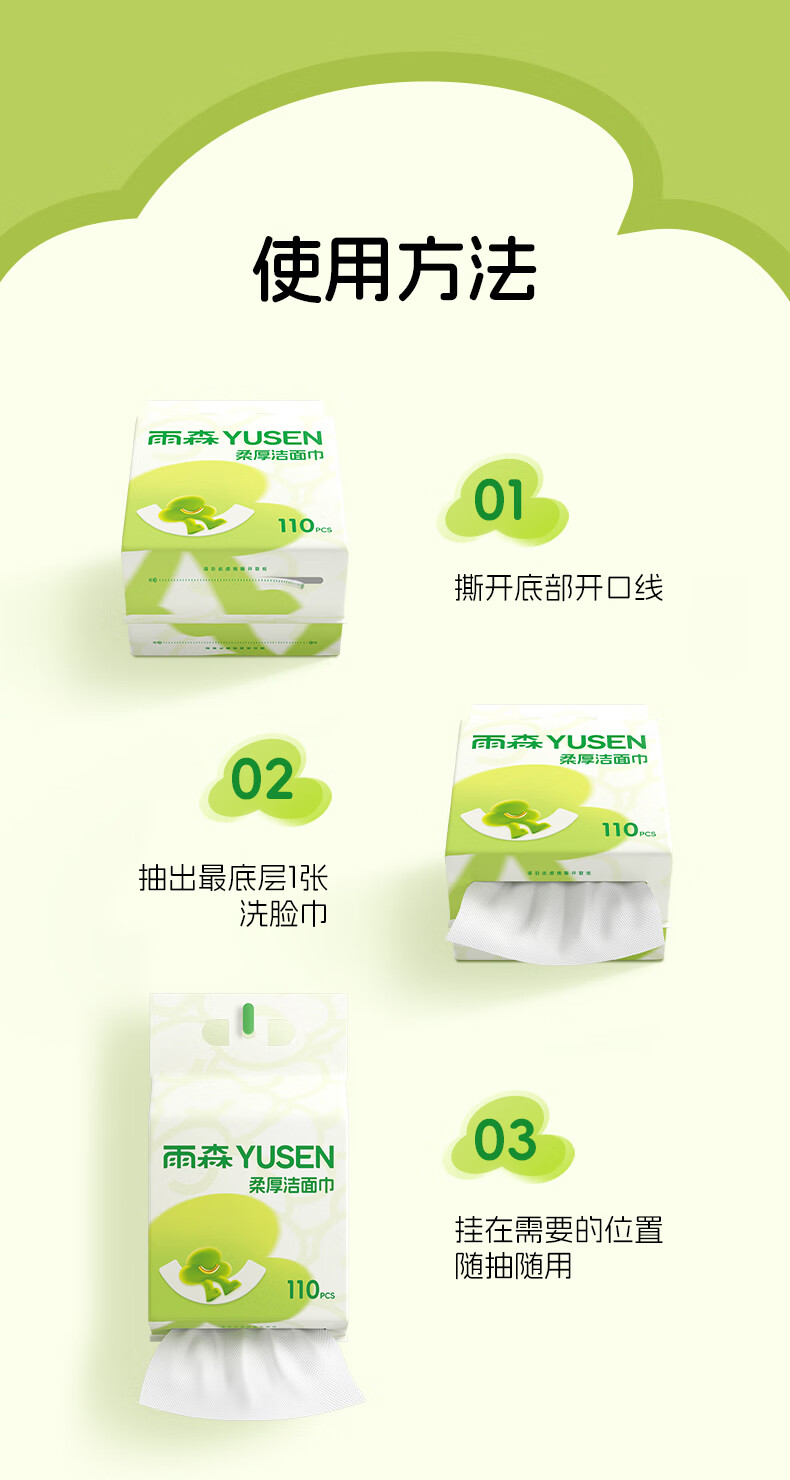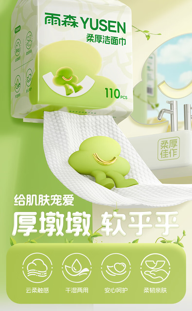雨森洗脸巾一次性洁面巾加厚擦脸巾美容院专用110抽超大绵柔巾 110抽(2包)