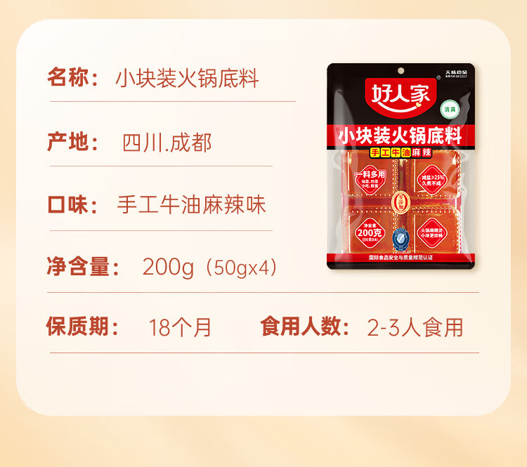 好人家 火锅底料手工牛油火锅冒菜麻辣烫串串家庭聚会晚调料200g