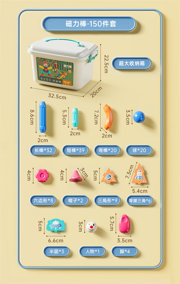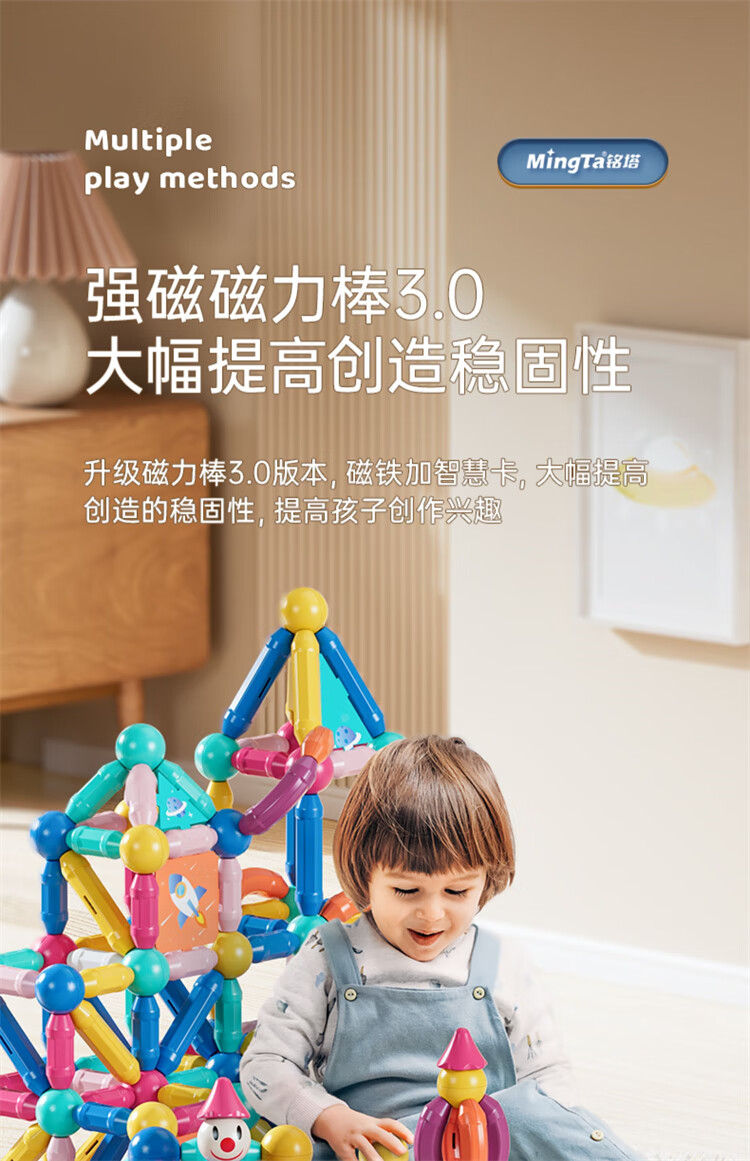 铭塔150件套磁力棒儿童玩具百变磁力片积木拼插拼装男孩女孩新年礼物