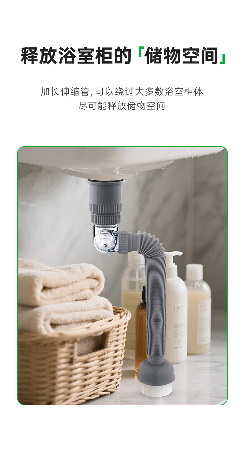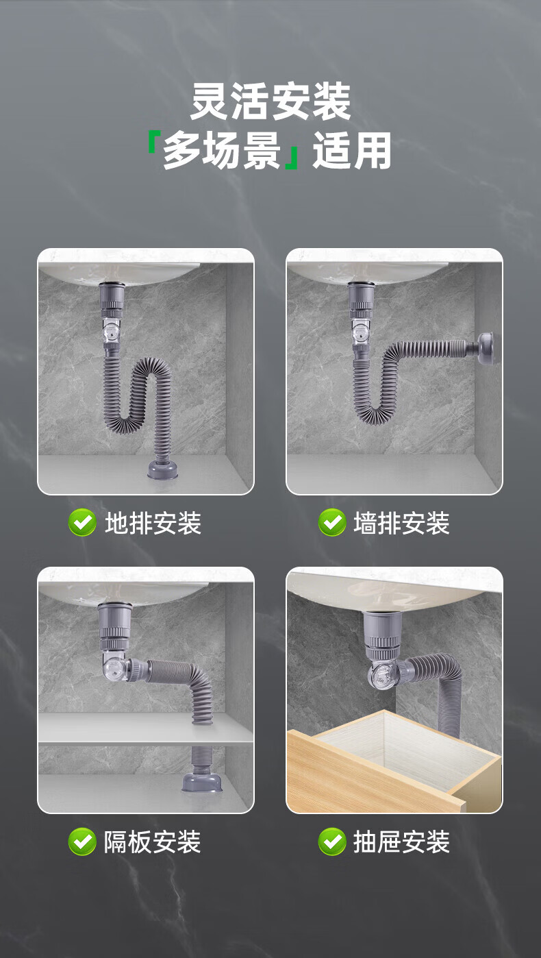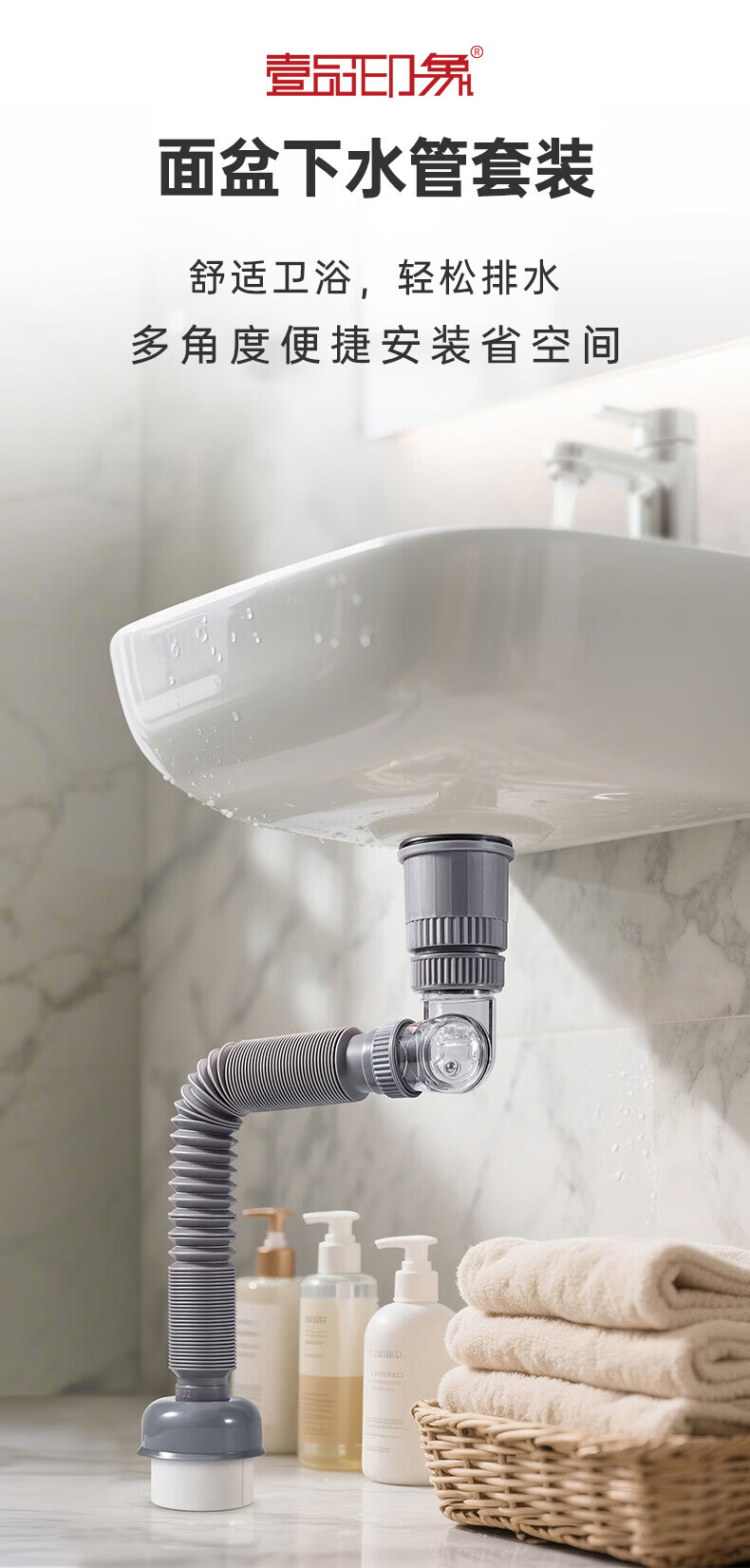 壹品印象洗手盆下水管卫生间面盆脸盆台上盆池防臭下水管套装 靠墙省空间 【专利款】枪灰 翻盖下水管套装