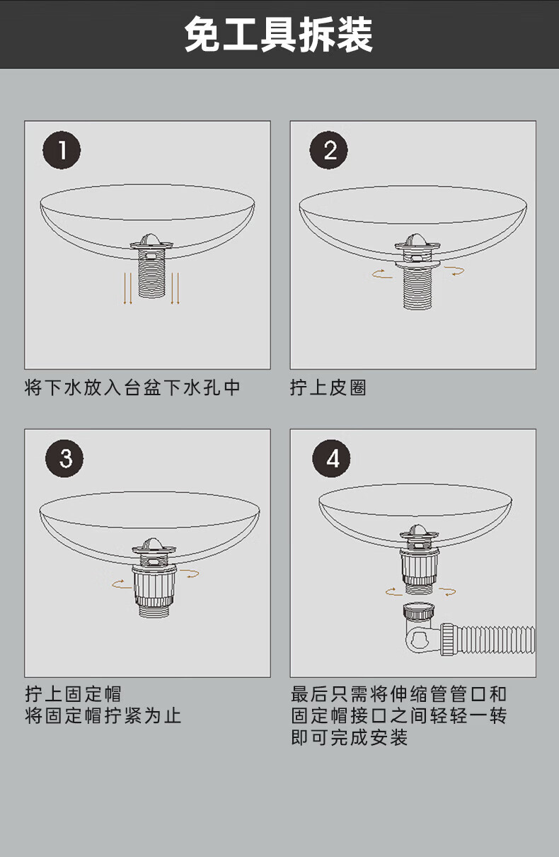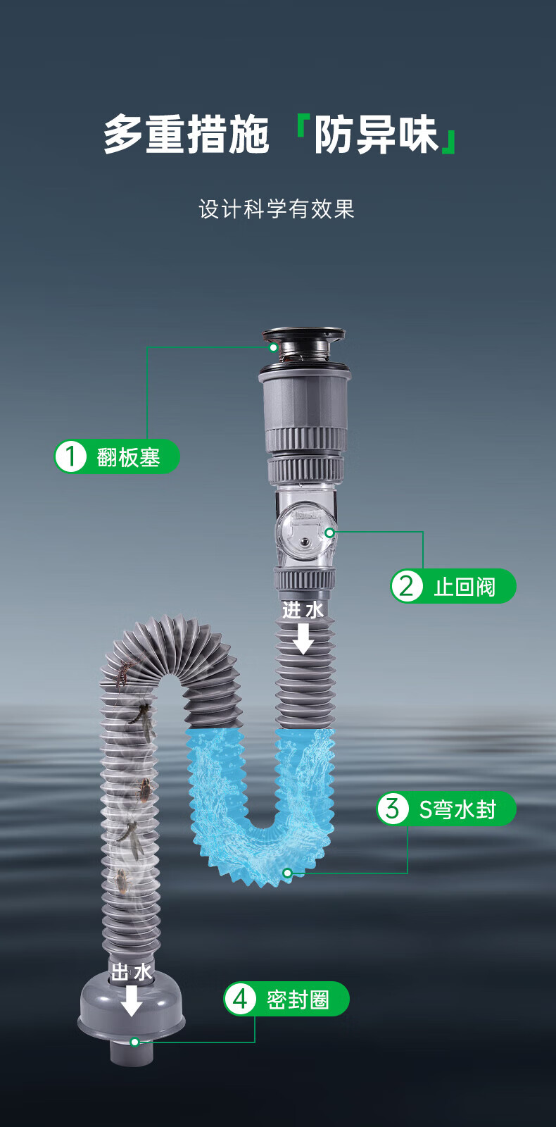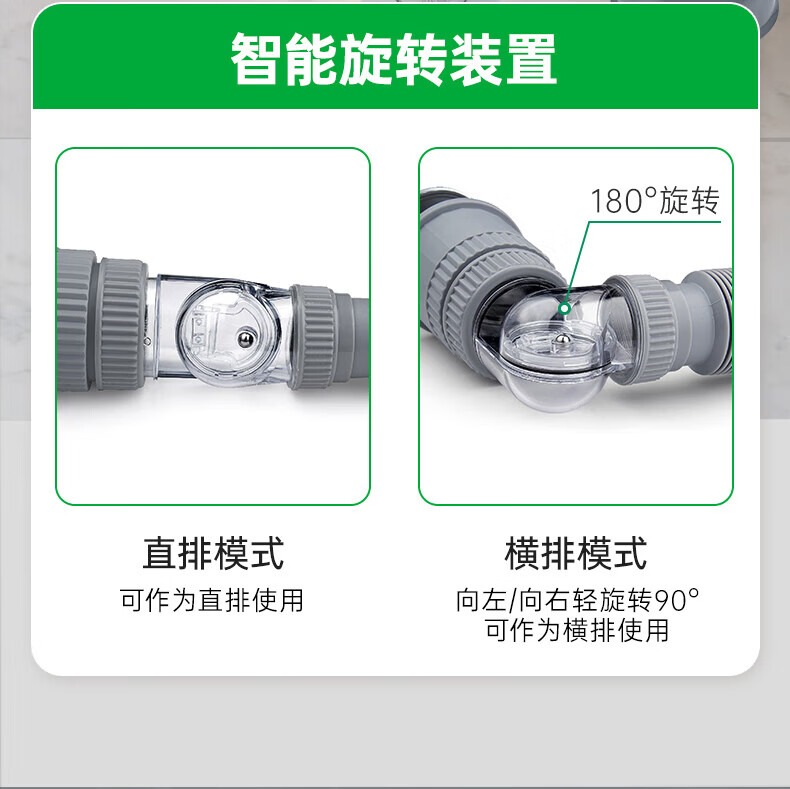 壹品印象洗手盆下水管卫生间面盆脸盆台上盆池防臭下水管套装 靠墙省空间 【专利款】枪灰 翻盖下水管套装