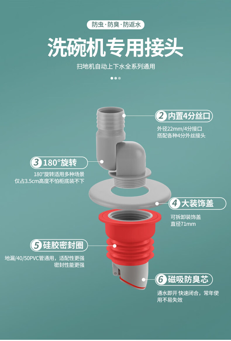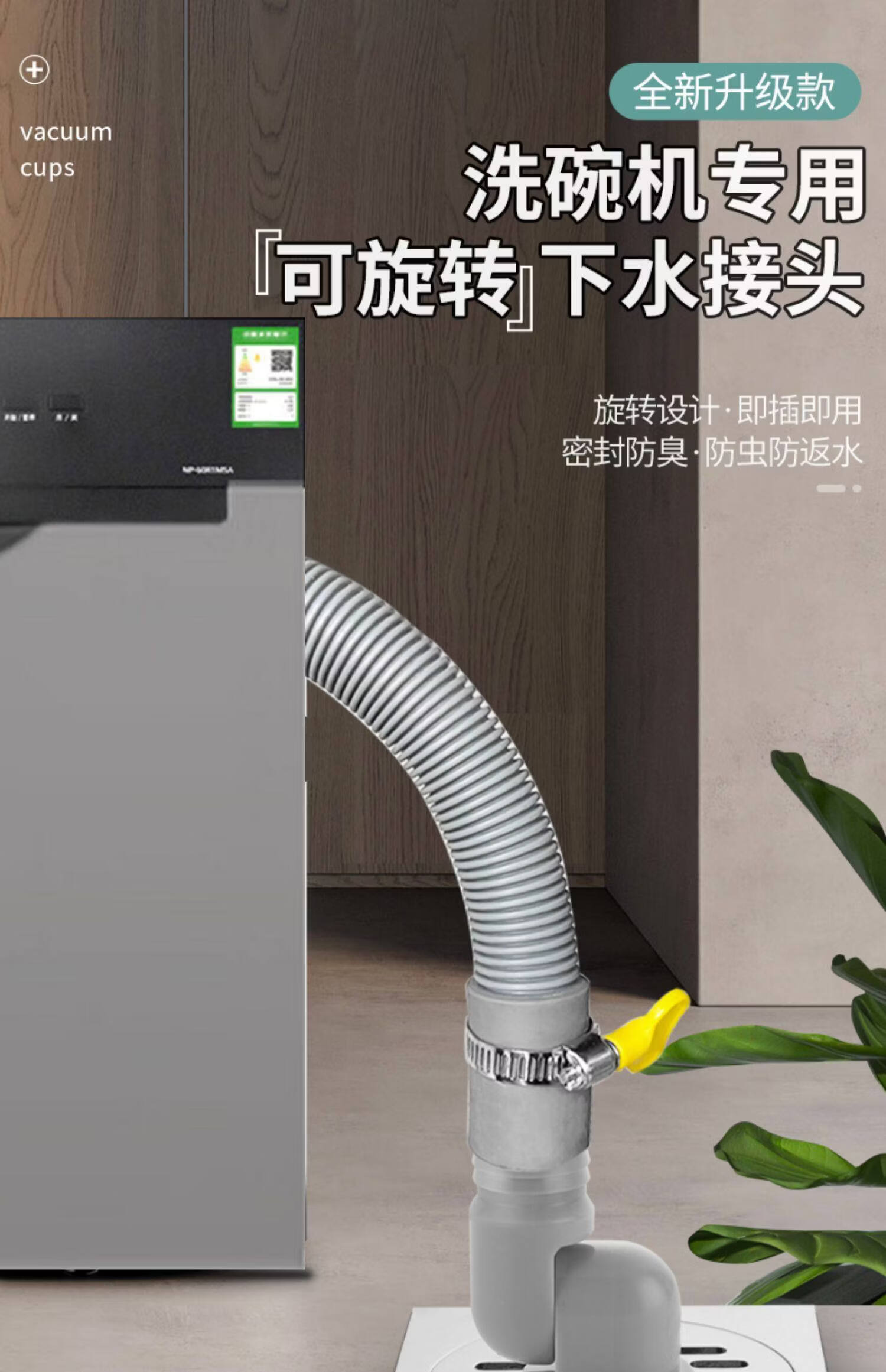 一靓适用于西门子洗碗机下水接头排水管道专用配件防臭防返水三通神器 接32MM地漏盖专用:洗碗机下水接头