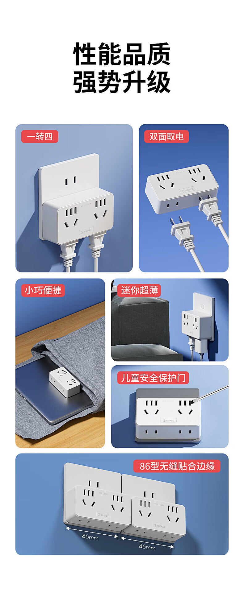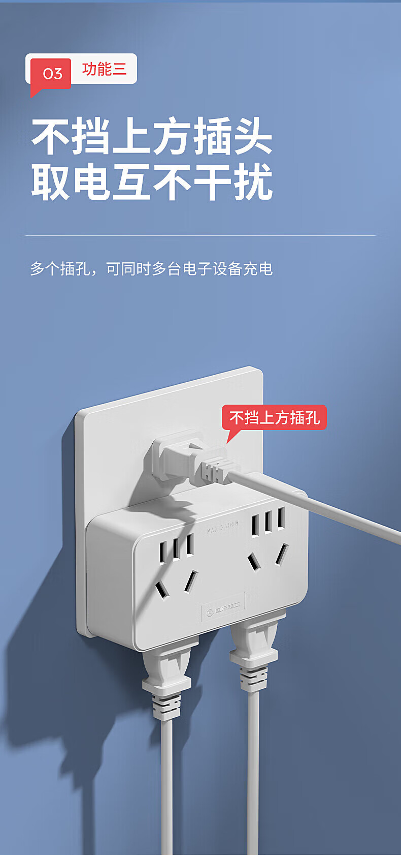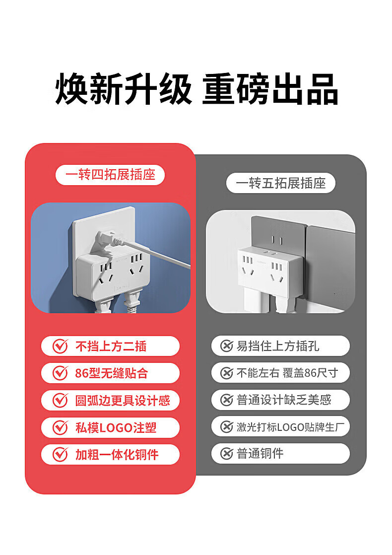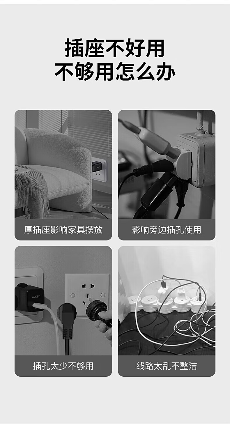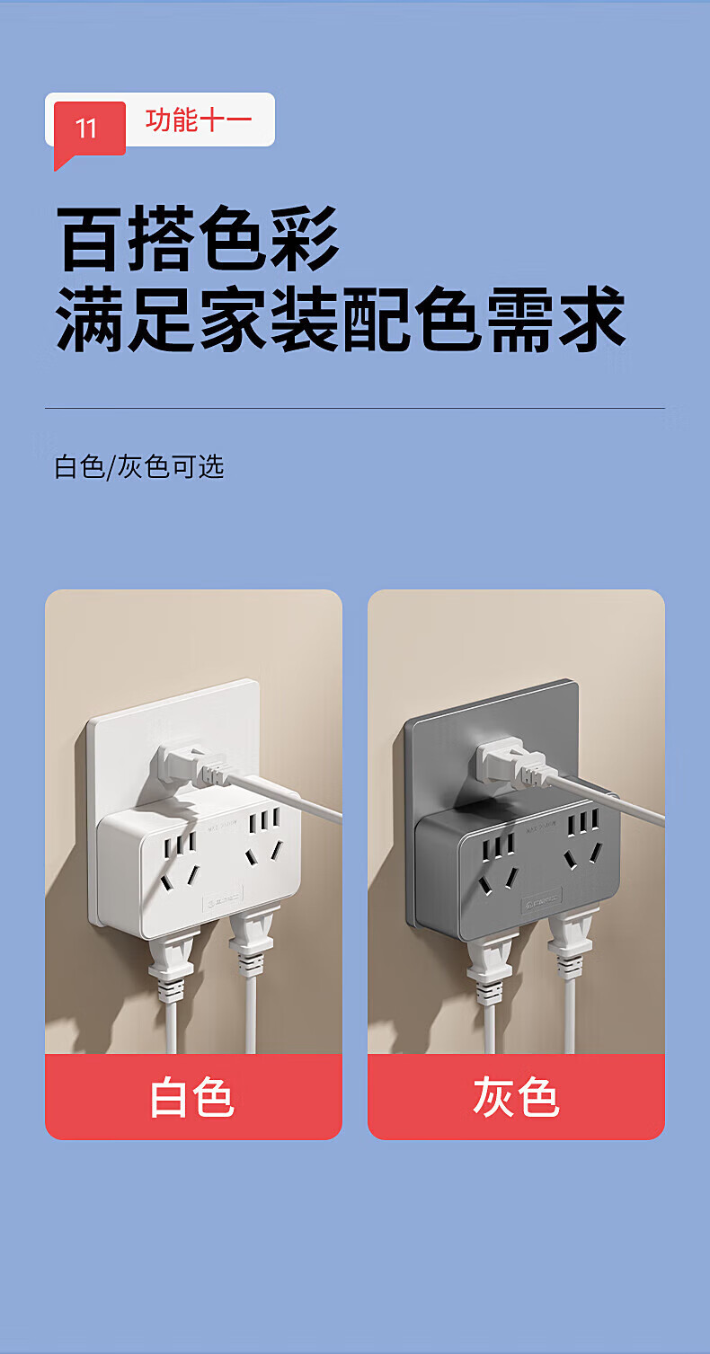 捷波朗插座一转多扩展原位替换免打孔转换器插排厨房延长多功能插座拓展 【向右扩展】灰色三位二十一孔