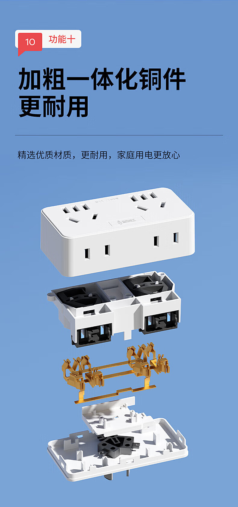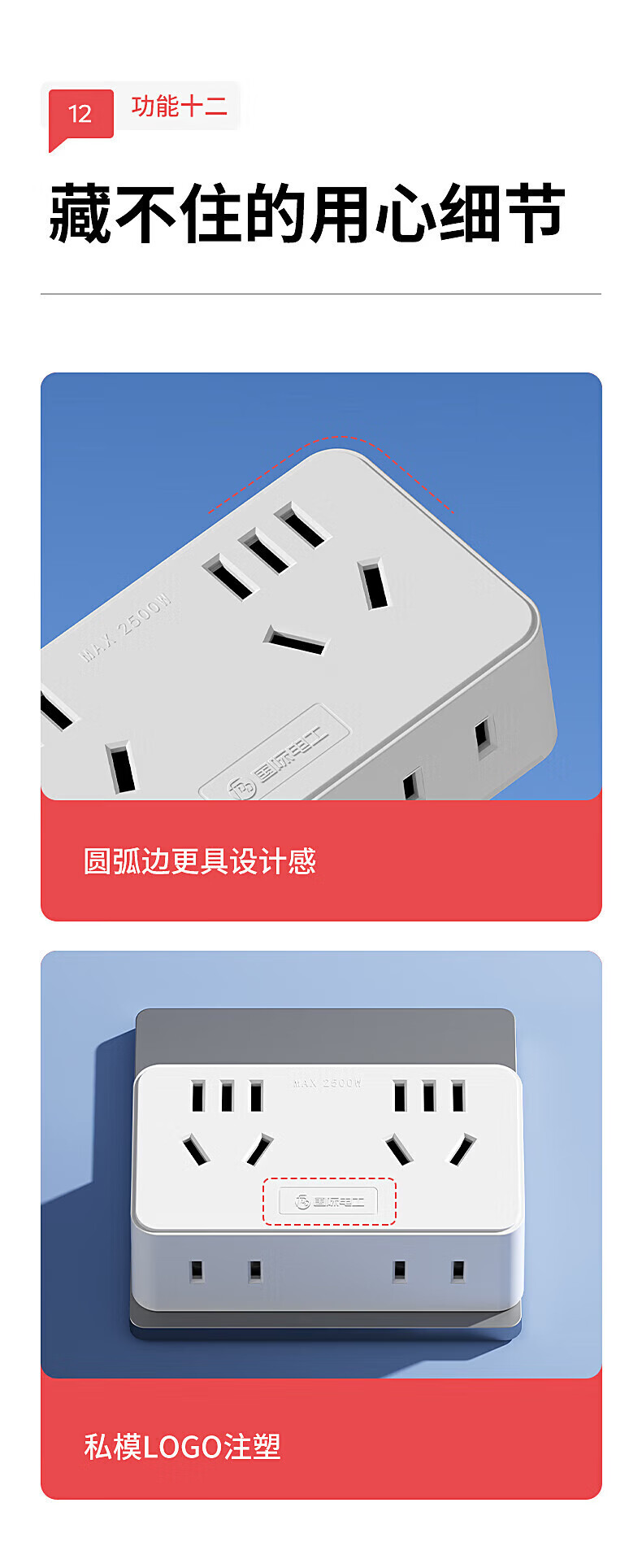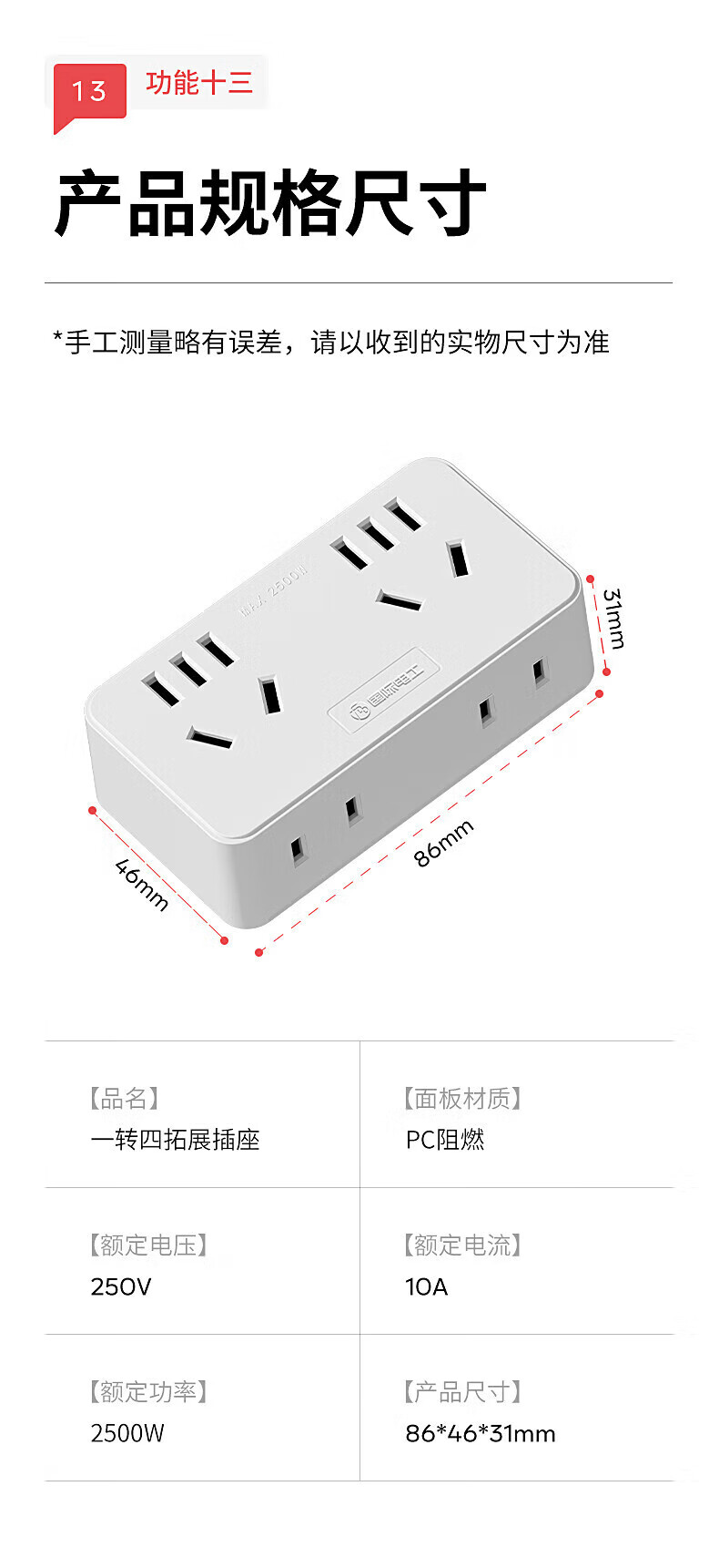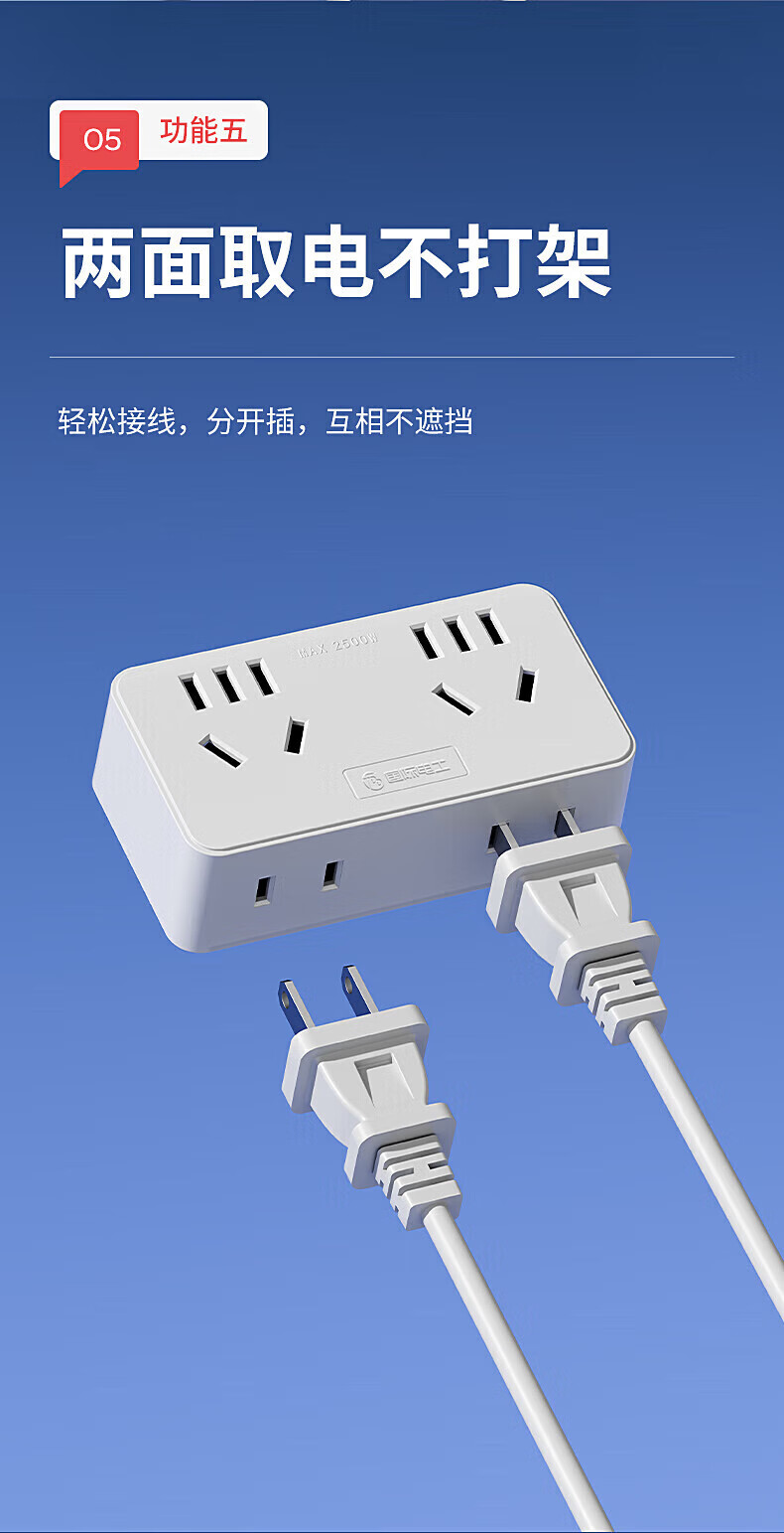 国际电工大功率带线转换插座10A转16A空调热水器一转多扩展电源插口 一转二16A转10A五孔+16A五孔白