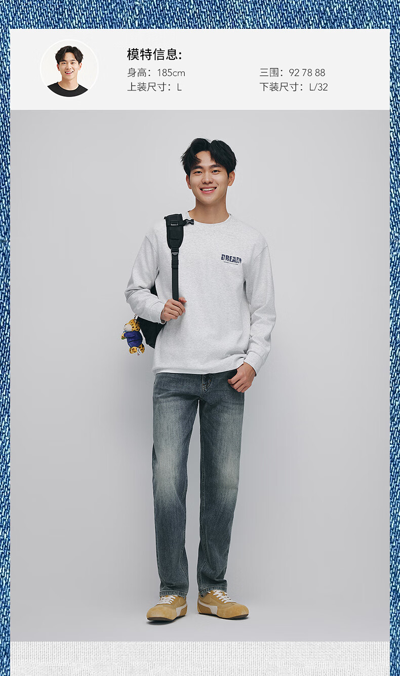 热风男士牛仔裤2025年秋季新款经典直筒牛仔裤复古做旧潮流长裤 09灰色 34