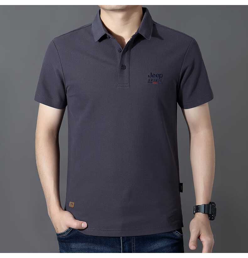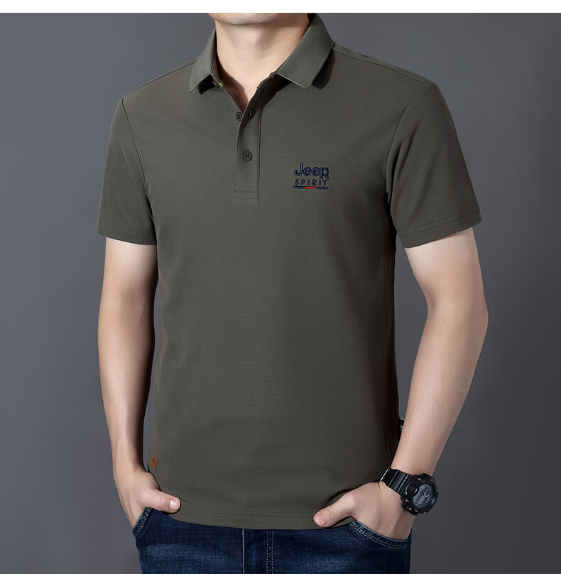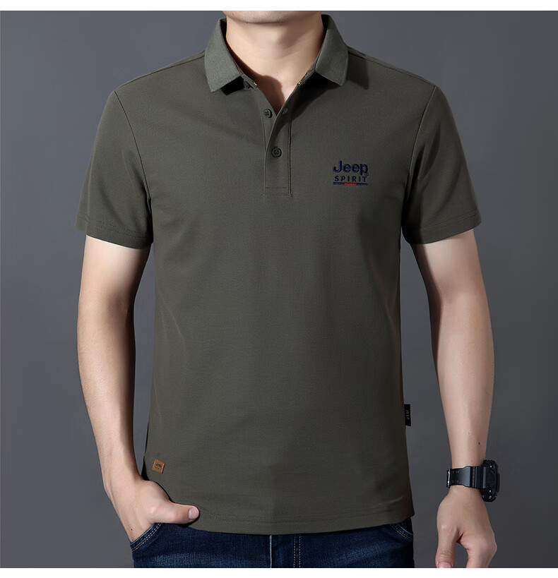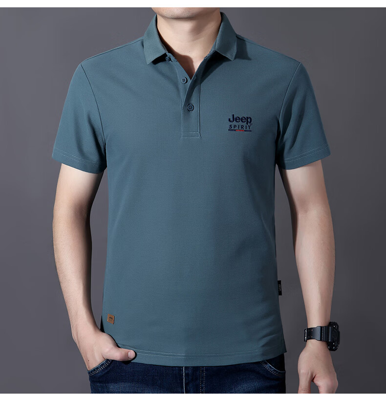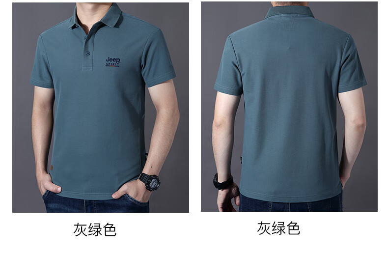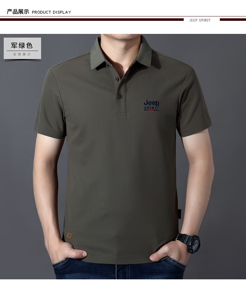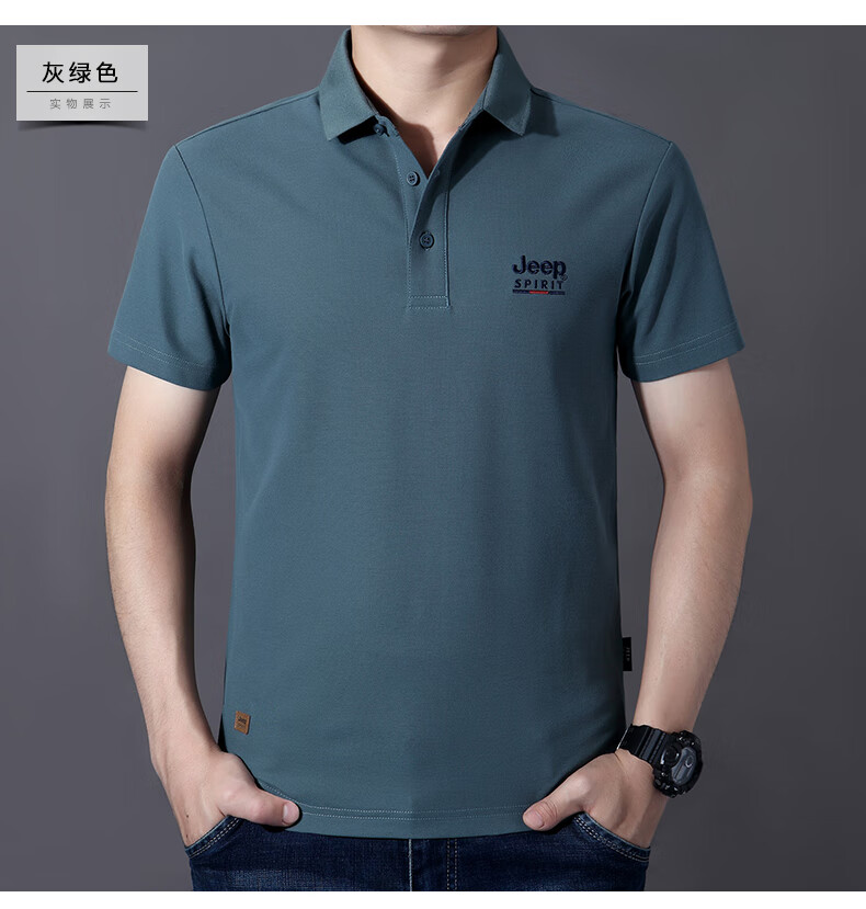 JEEP SPIRIT吉普精神男士t恤2025夏季翻领短袖Polo男士商务休闲半袖棉T恤 灰绿 M