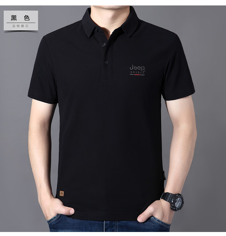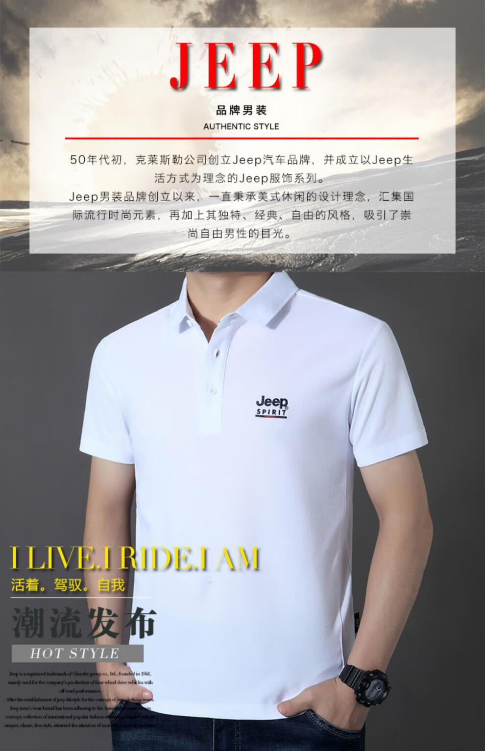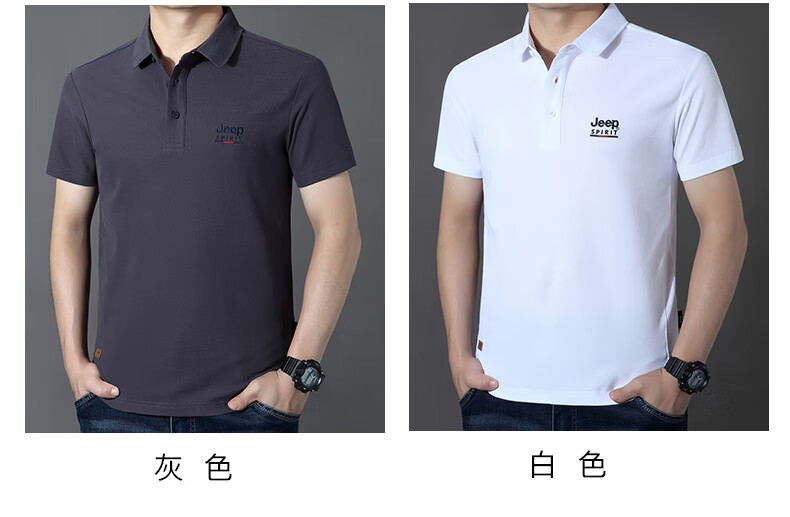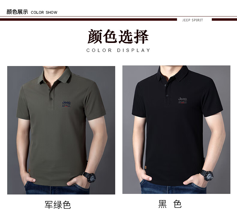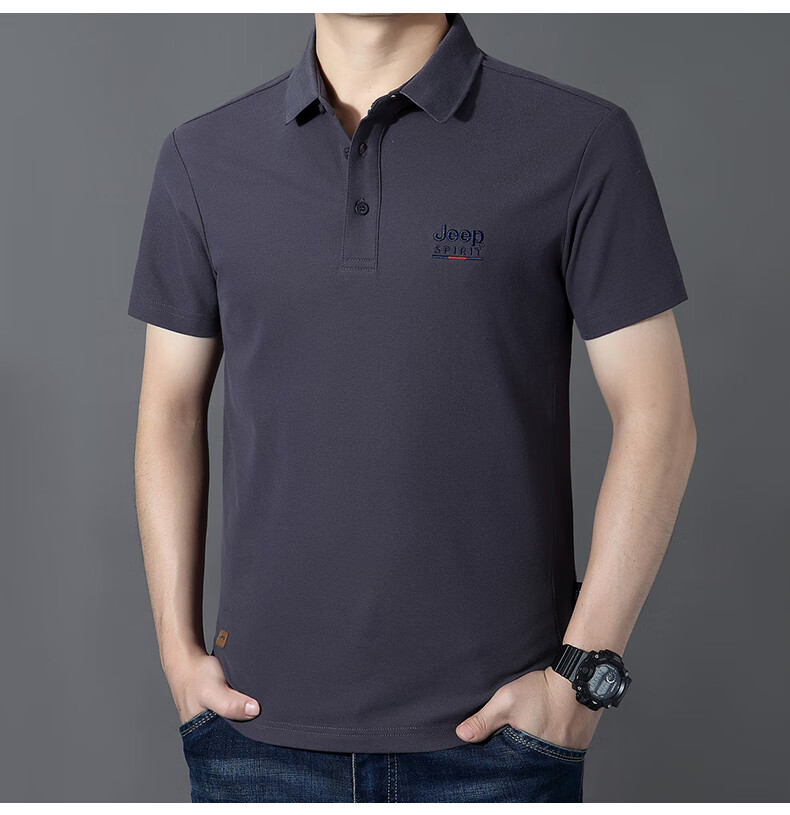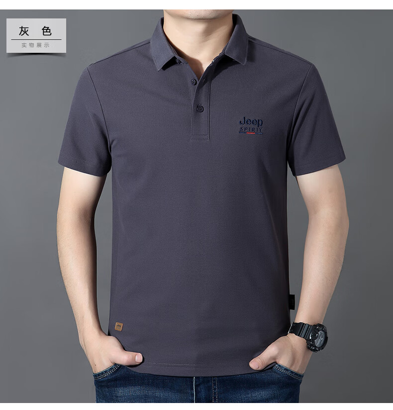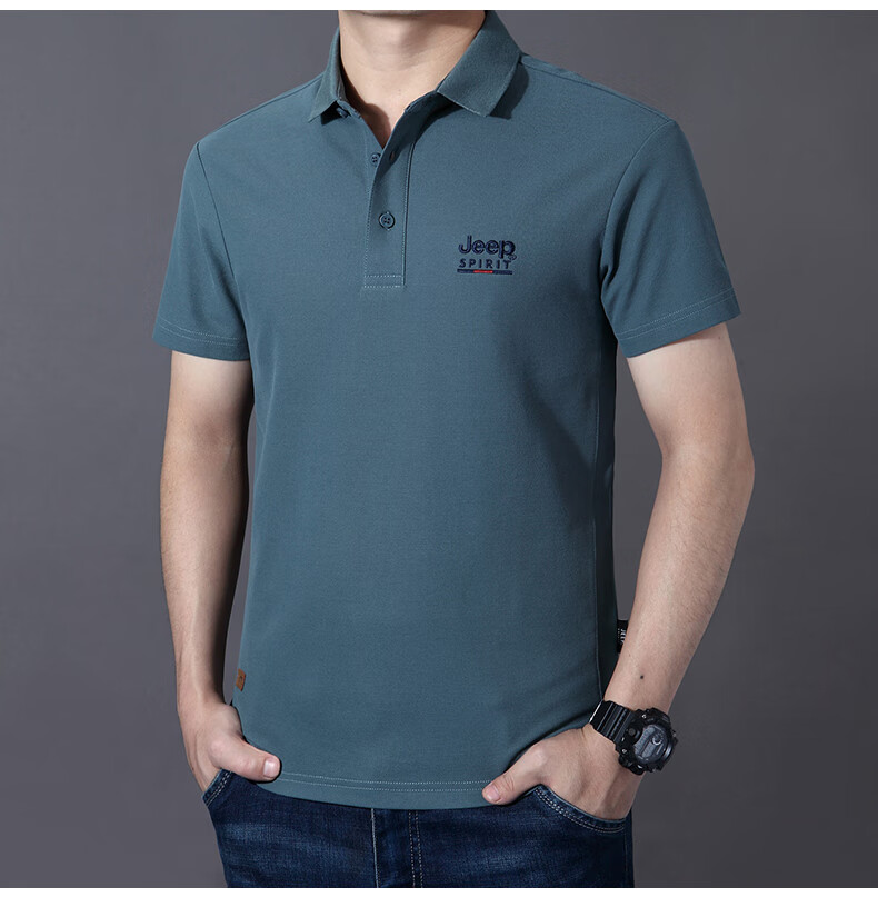 JEEP SPIRIT吉普精神男士t恤2025夏季翻领短袖Polo男士商务休闲半袖棉T恤 灰绿 M
