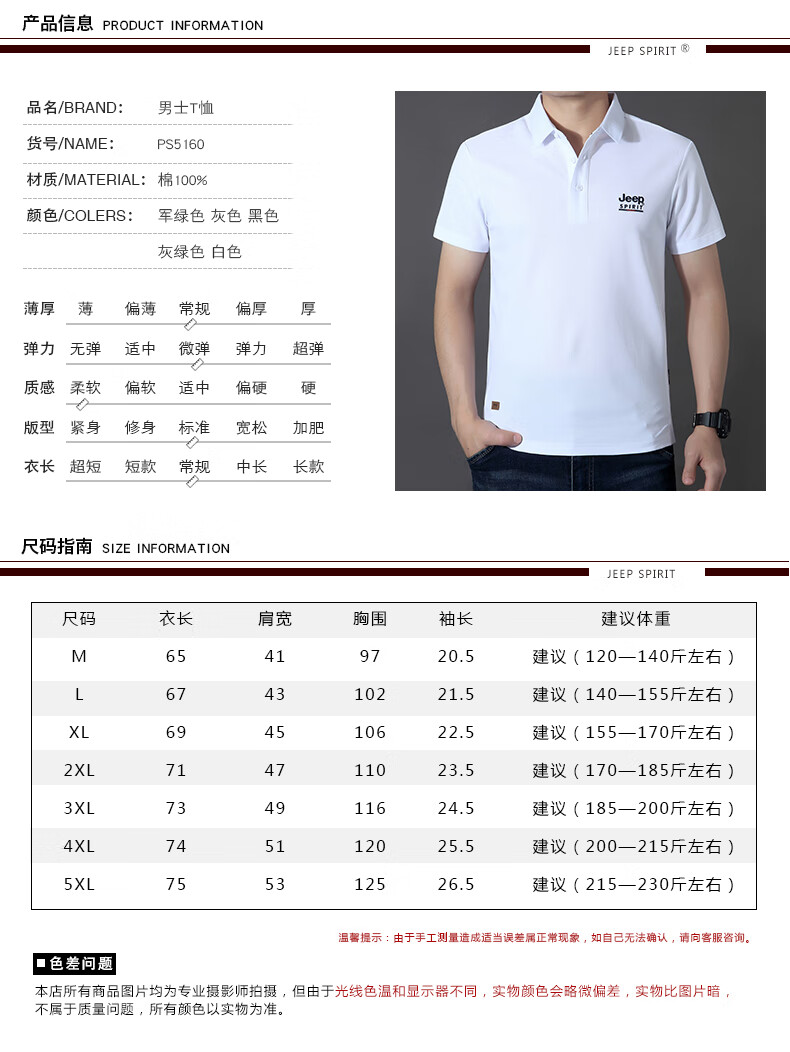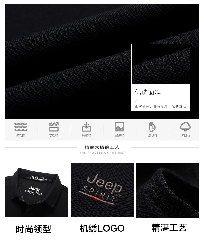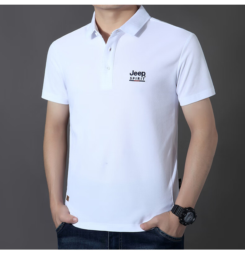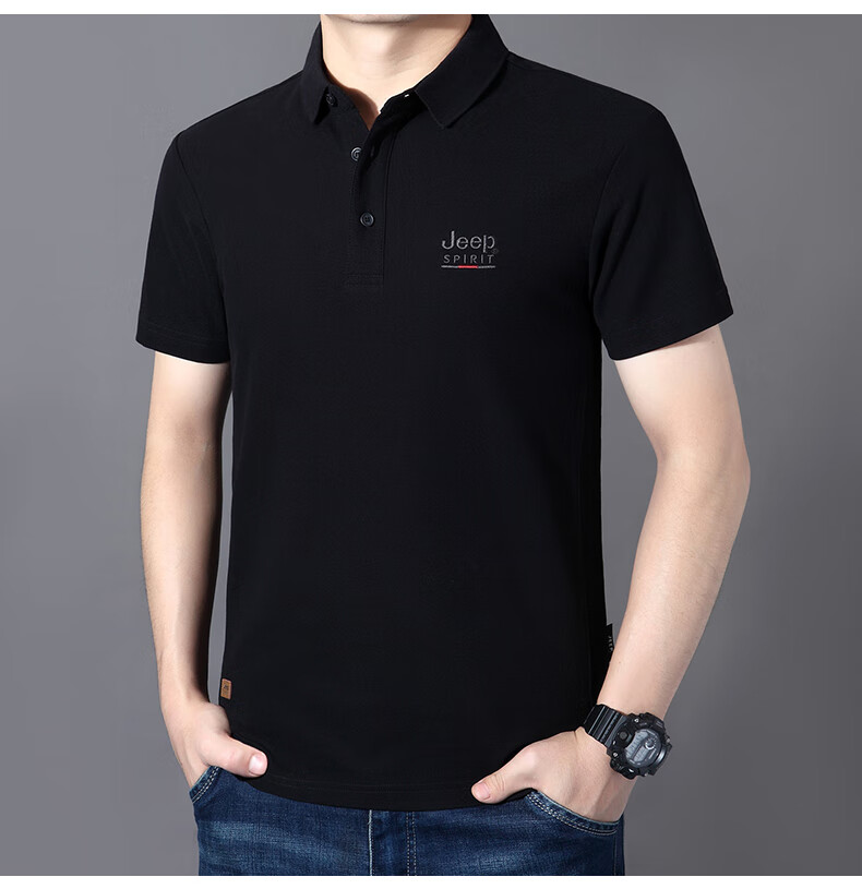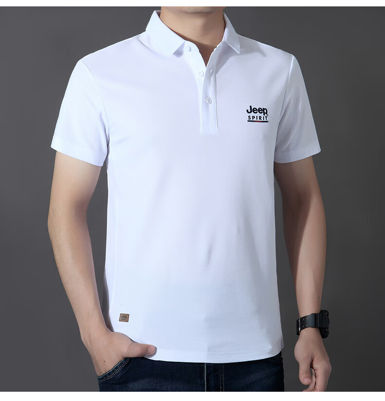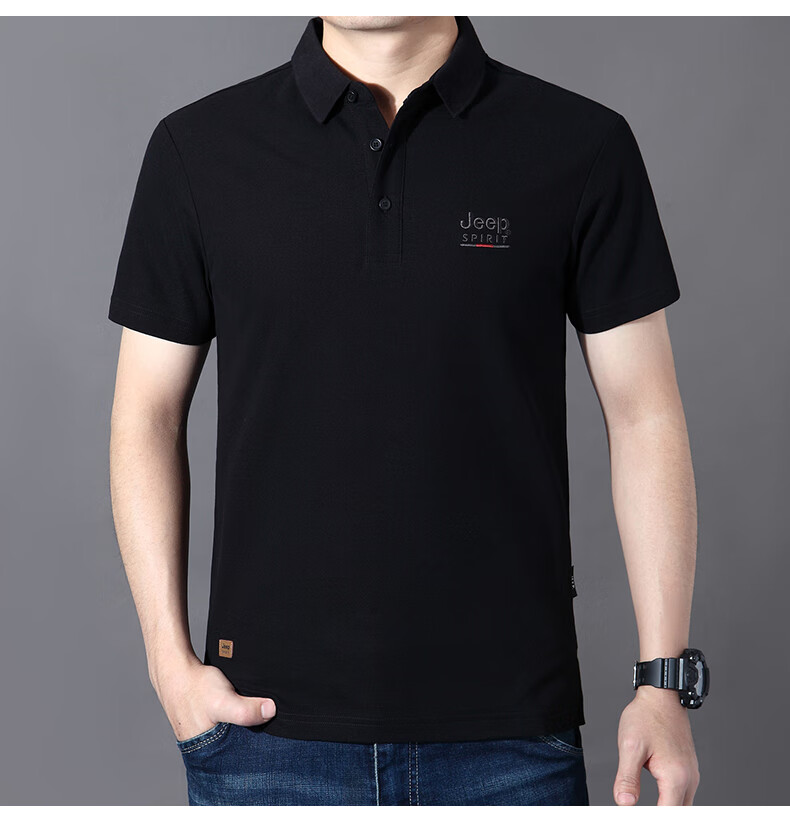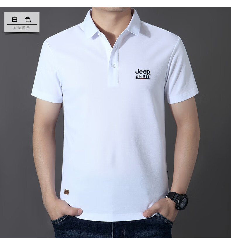 JEEP SPIRIT吉普精神男士t恤2025夏季翻领短袖Polo男士商务休闲半袖棉T恤 灰绿 M