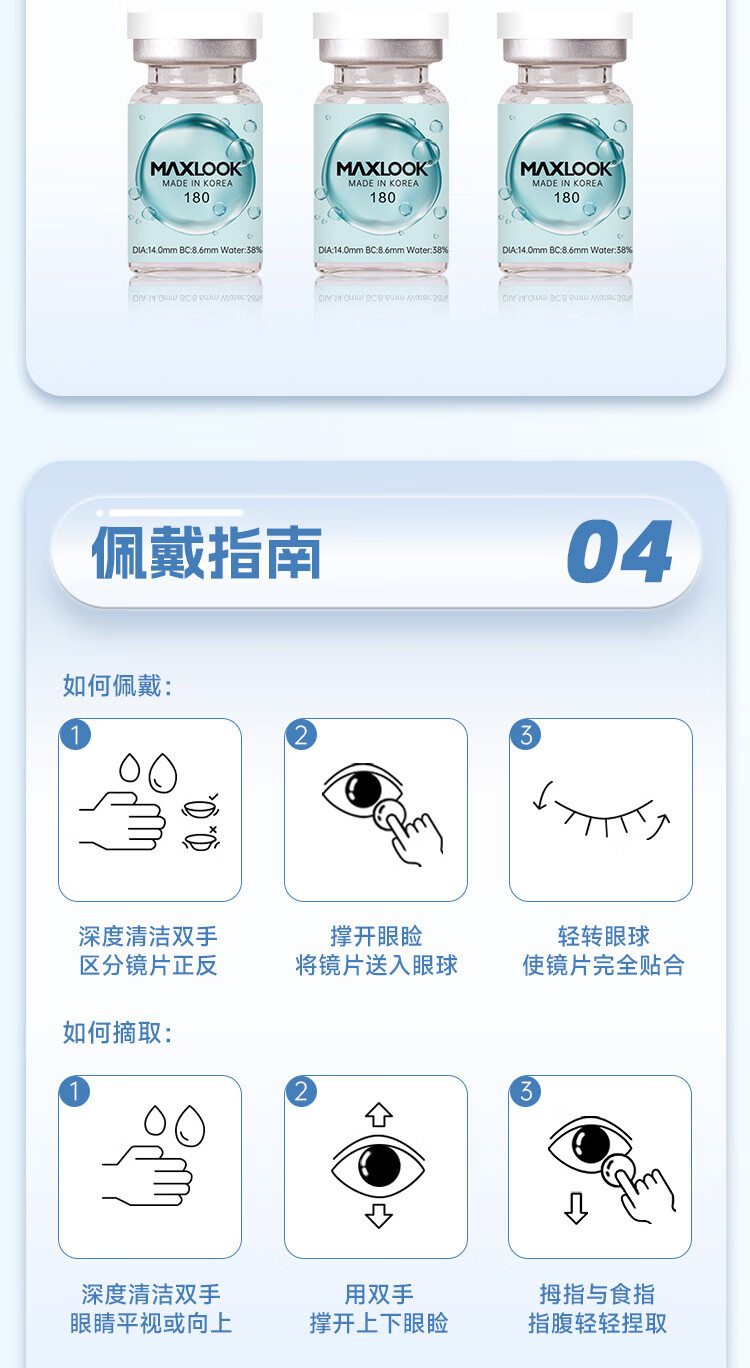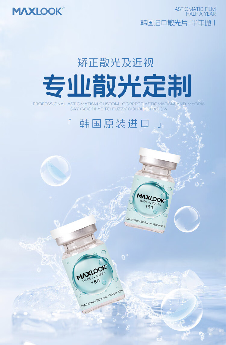 MAXLOOK散光隐形眼镜定制 韩国进口 半年抛1片装透明片