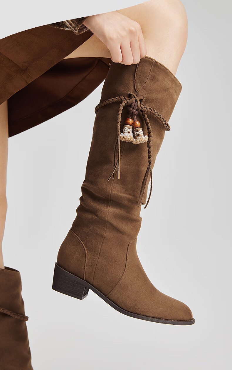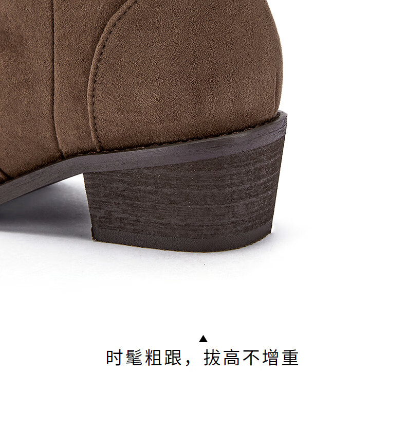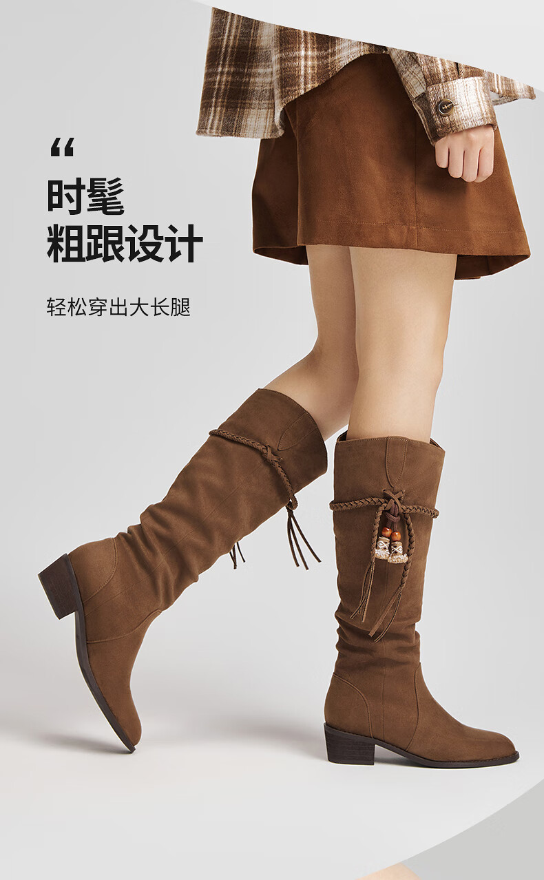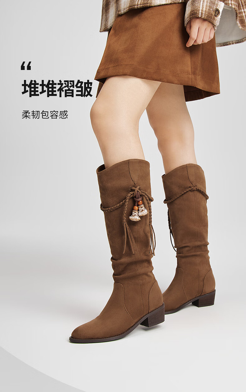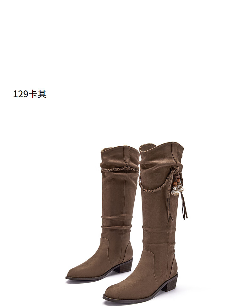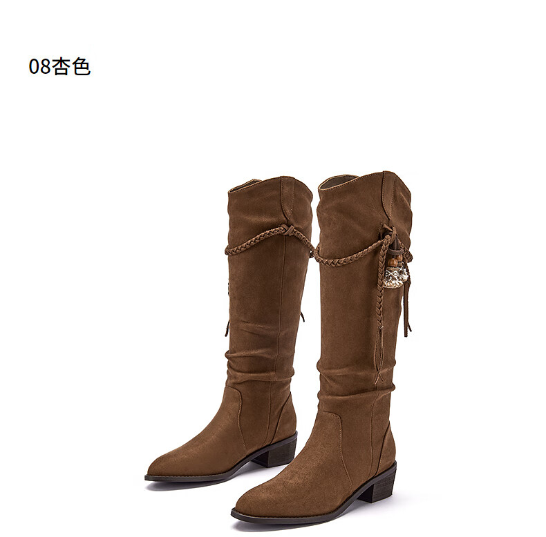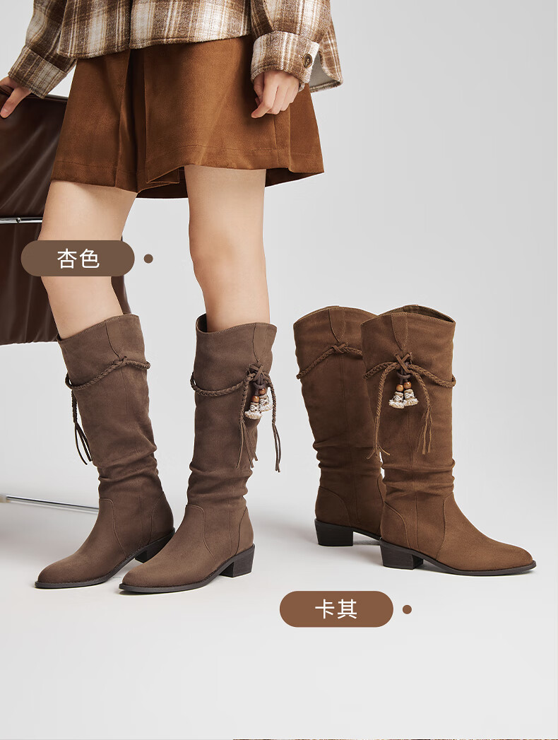 热风牛仔西部靴子2025年冬季新款复古棕色长筒靴美拉德堆堆靴女鞋 08杏色 38