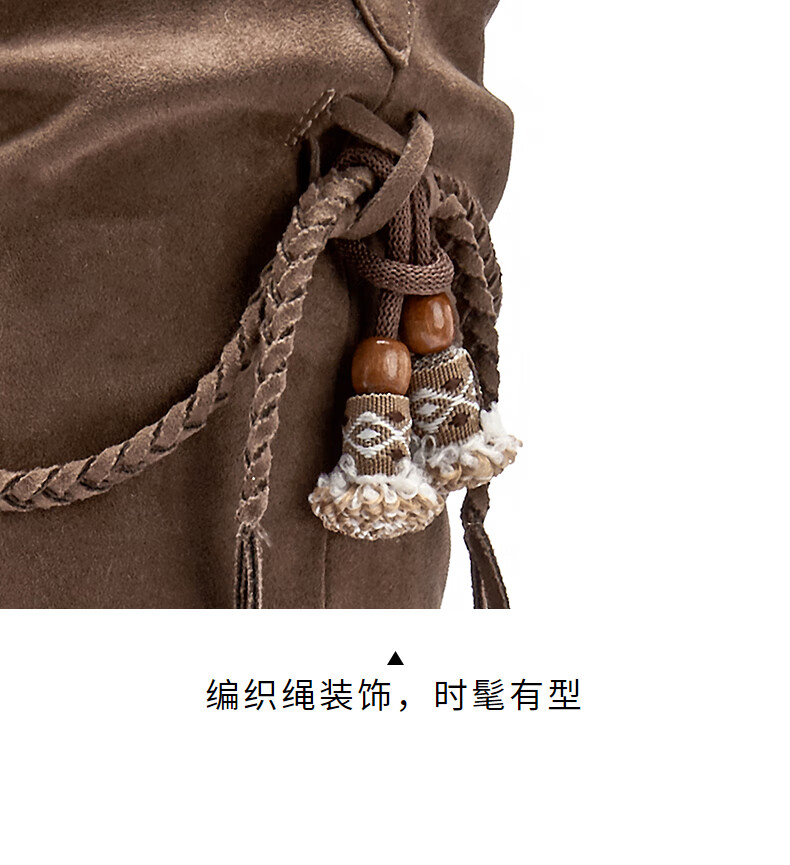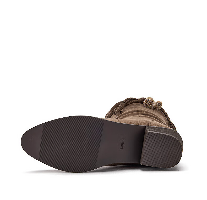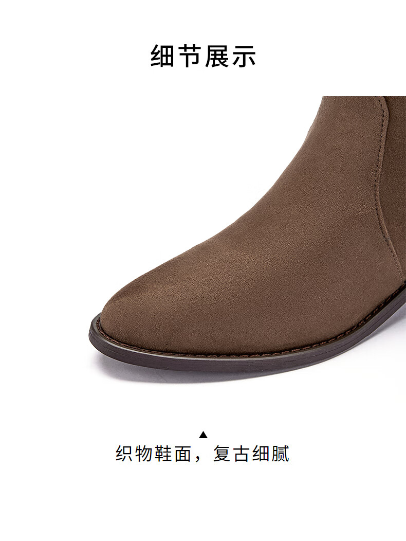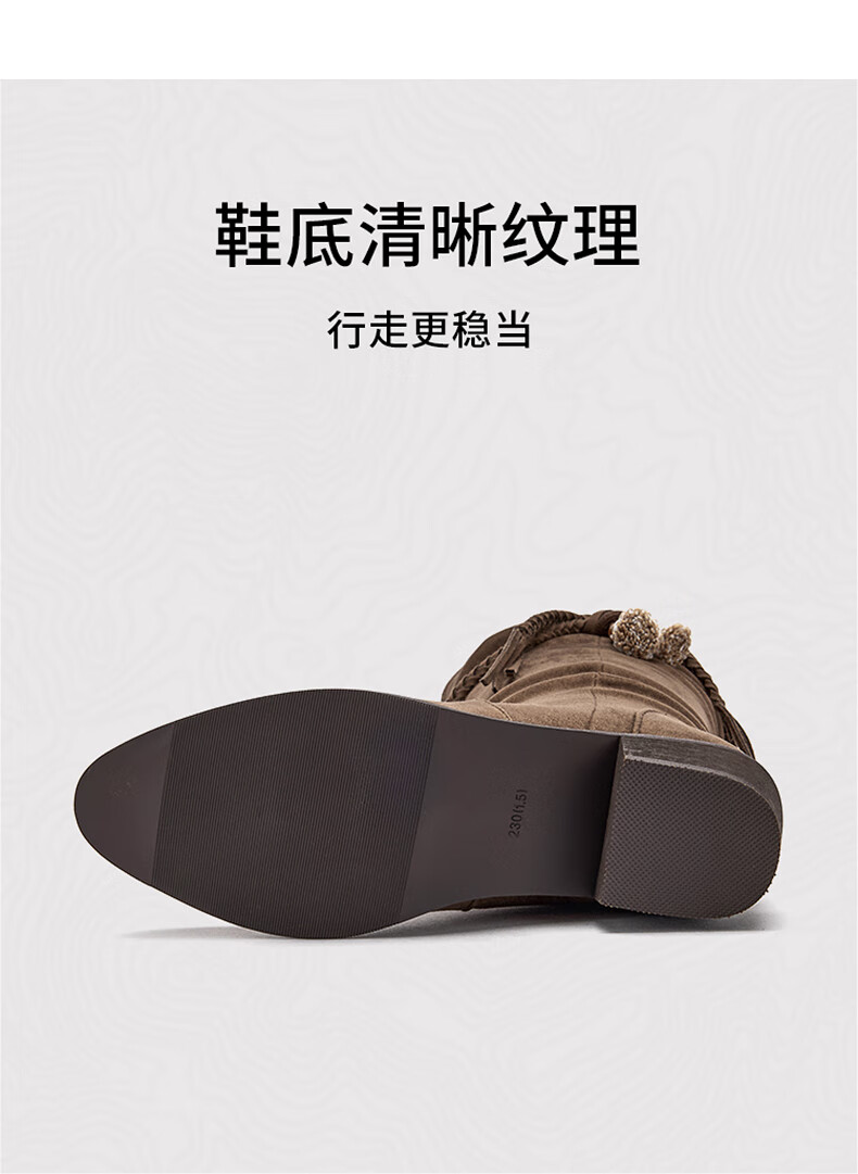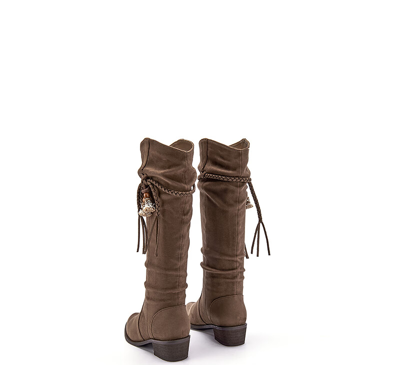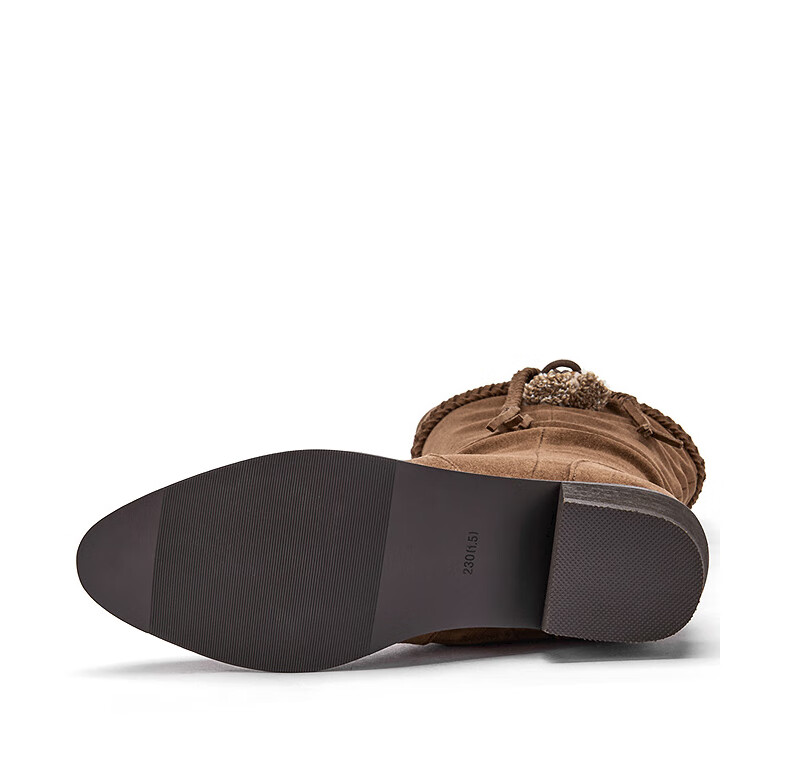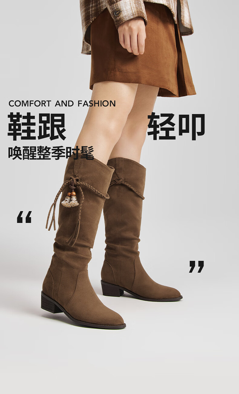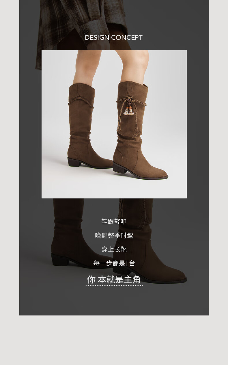 热风牛仔西部靴子2025年冬季新款复古棕色长筒靴美拉德堆堆靴女鞋 08杏色 38