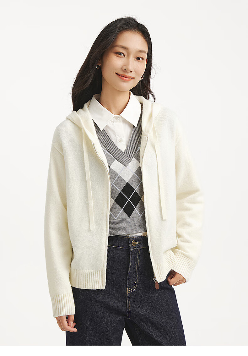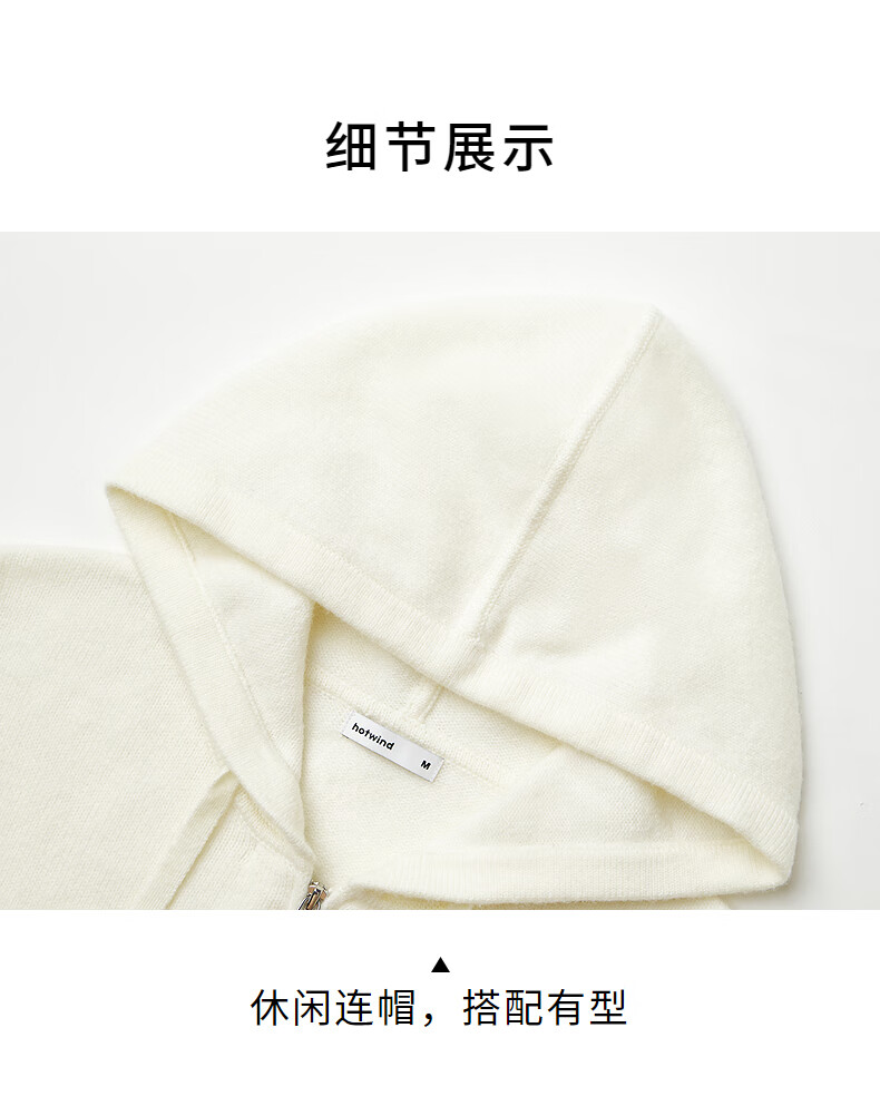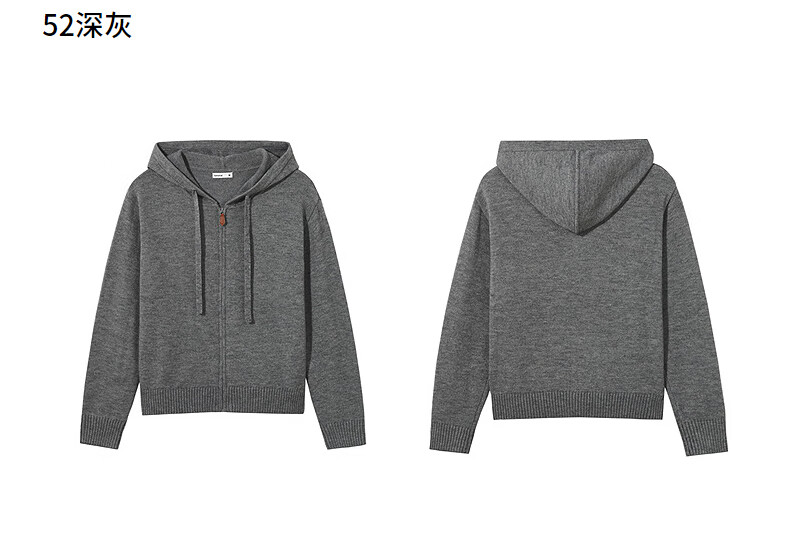 热风【商场同款】女士针织衫毛衣2025年秋新款带帽拉链针织宽松打底衫 52深灰 M
