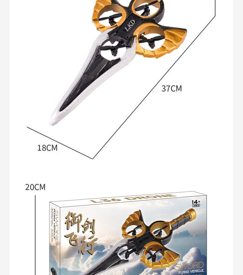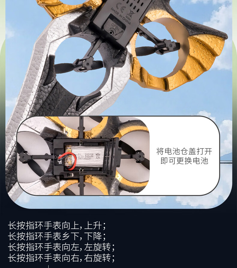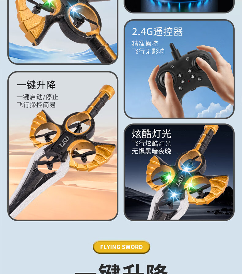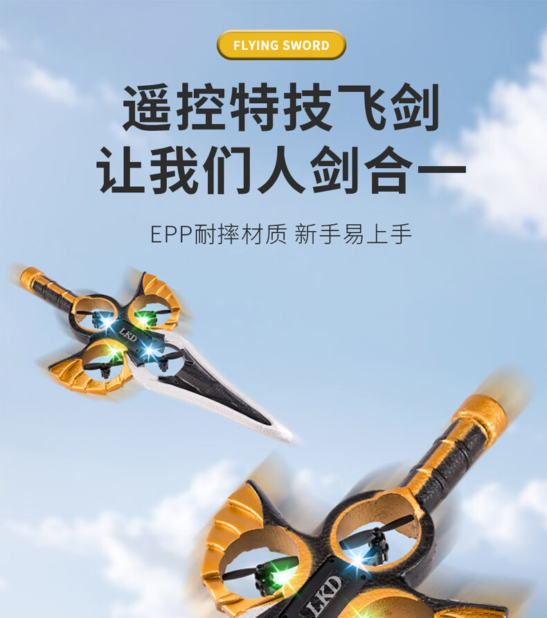 TaTanice遥控飞剑飞机战斗机御剑飞行器手势男孩儿童6-8-12岁玩具生日礼物 御剑飞行器遥控款-单电池