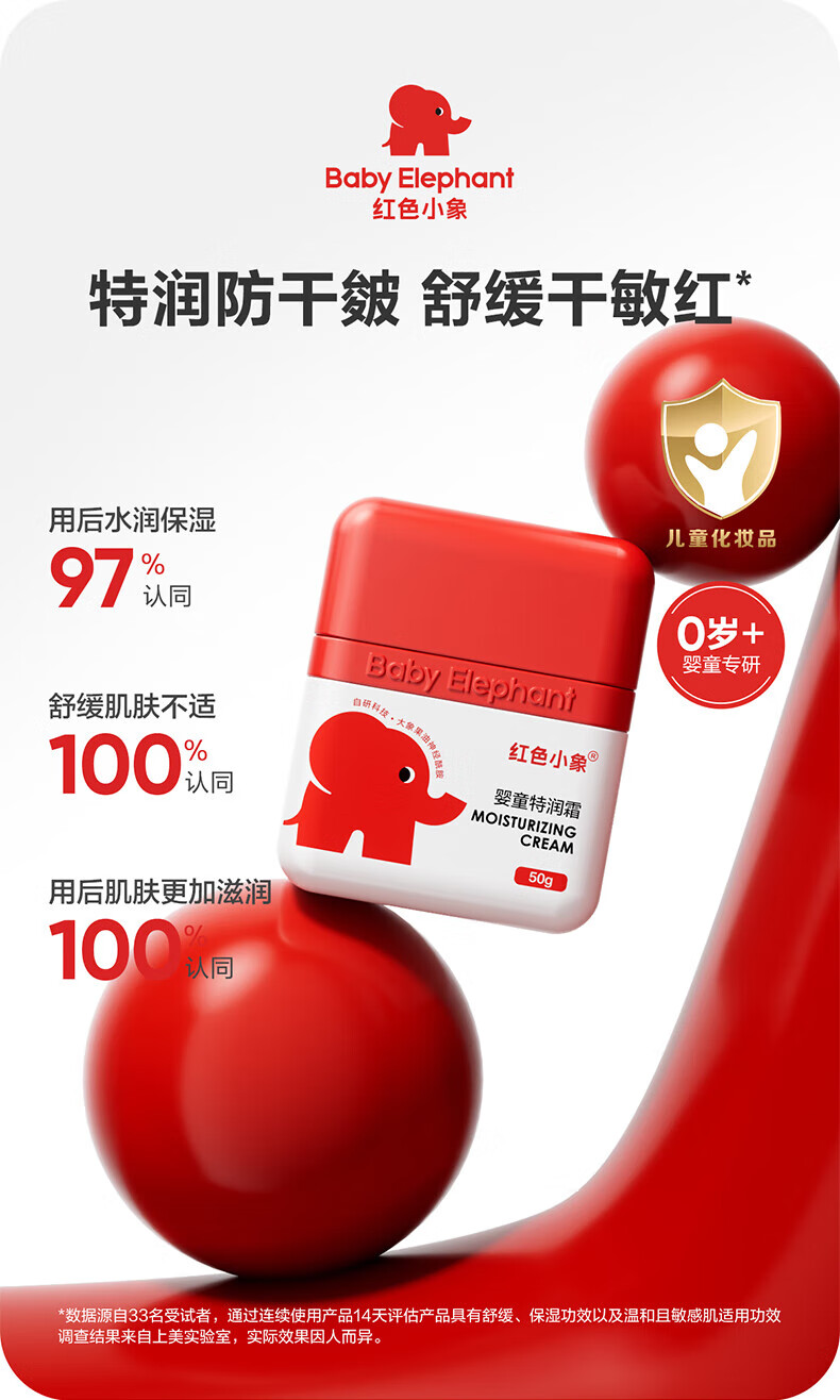 红色小象面霜宝宝儿童保湿霜四季防皴防干裂滋润婴幼儿专用护肤品化妆品 【益生元面霜25g*2】